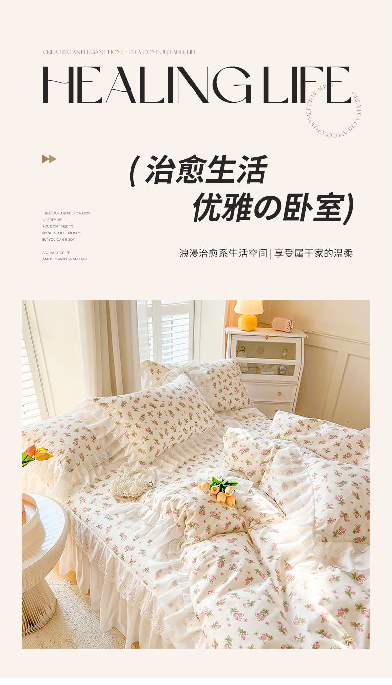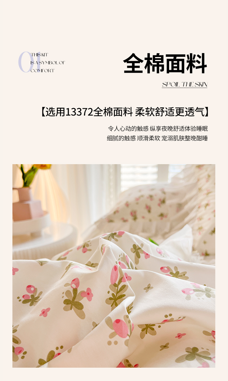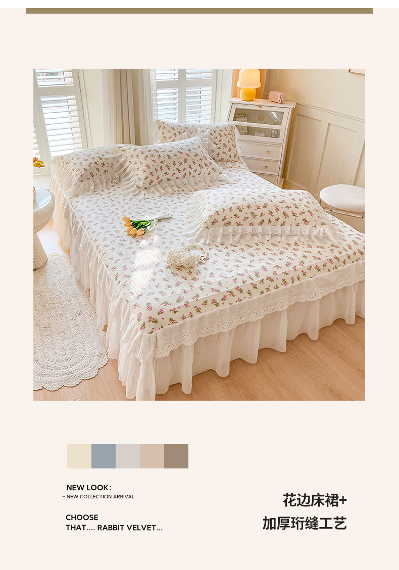 当前位置: 91家纺网 > 商品网购 > 床品套件 > 四件套 > 全棉普通四件套 > 瑞宝 2025新款镂空全棉印花床裙款四件套 南笙