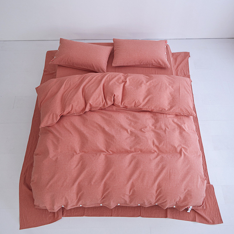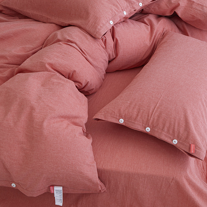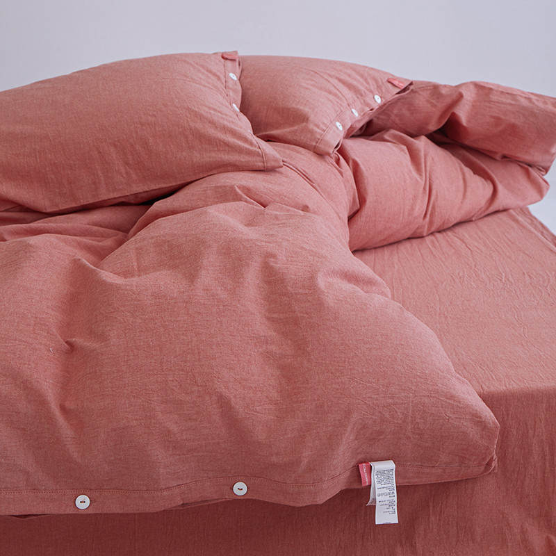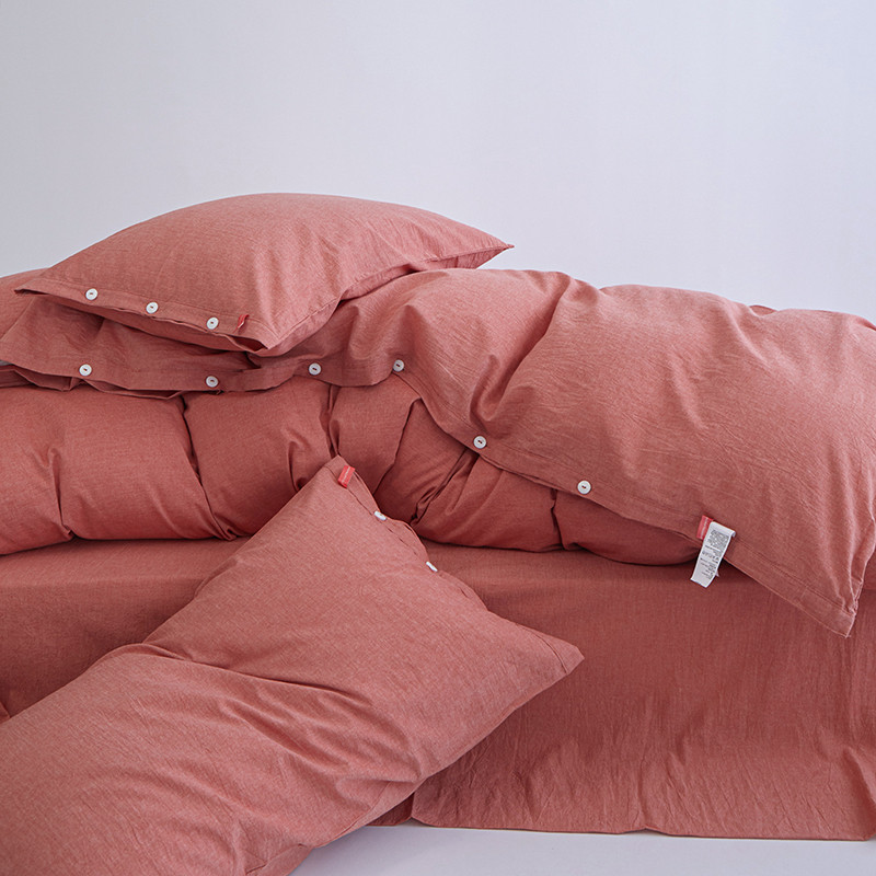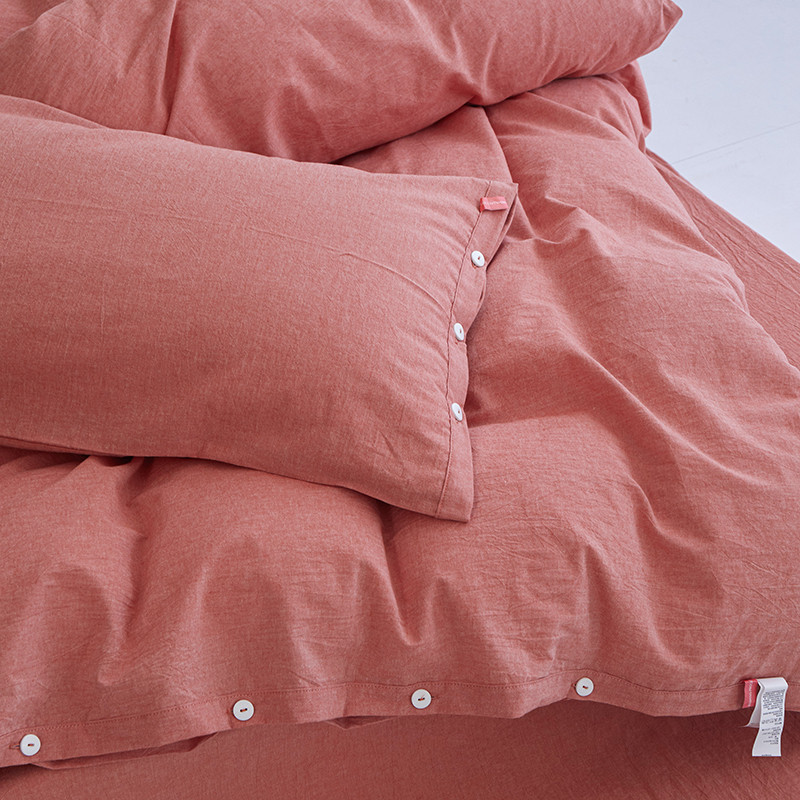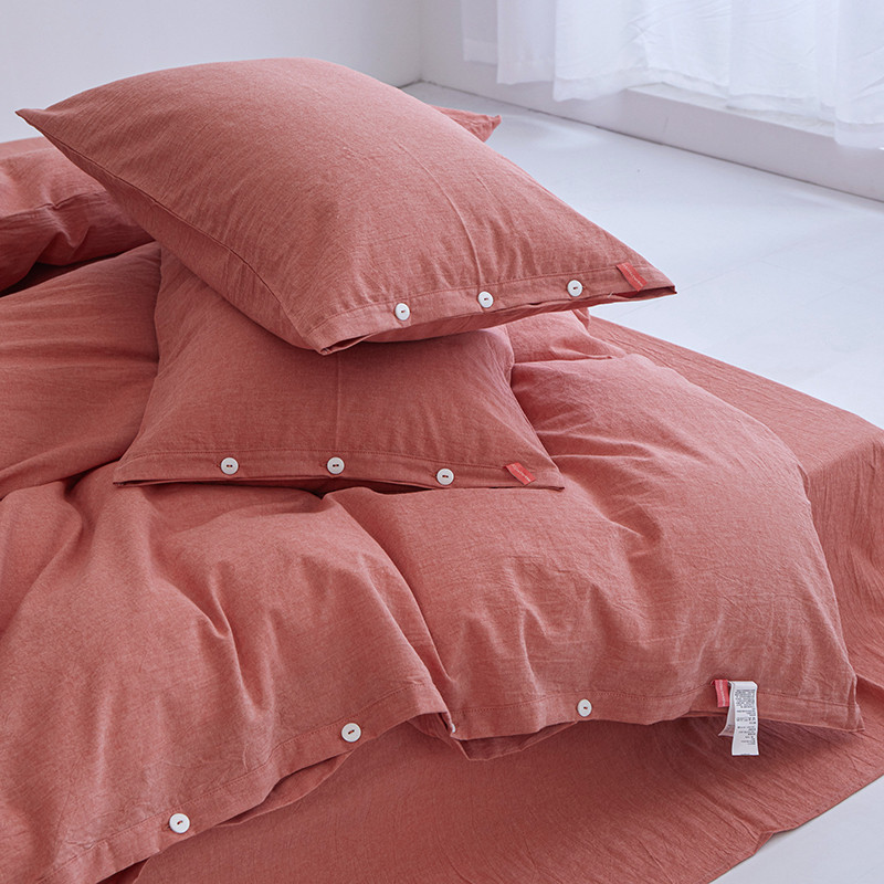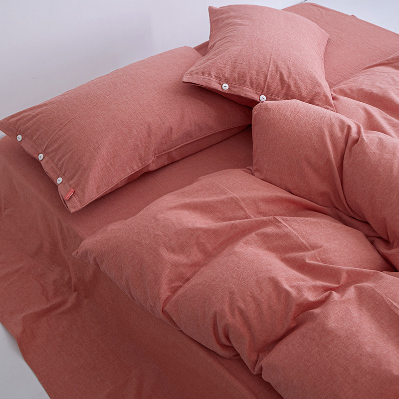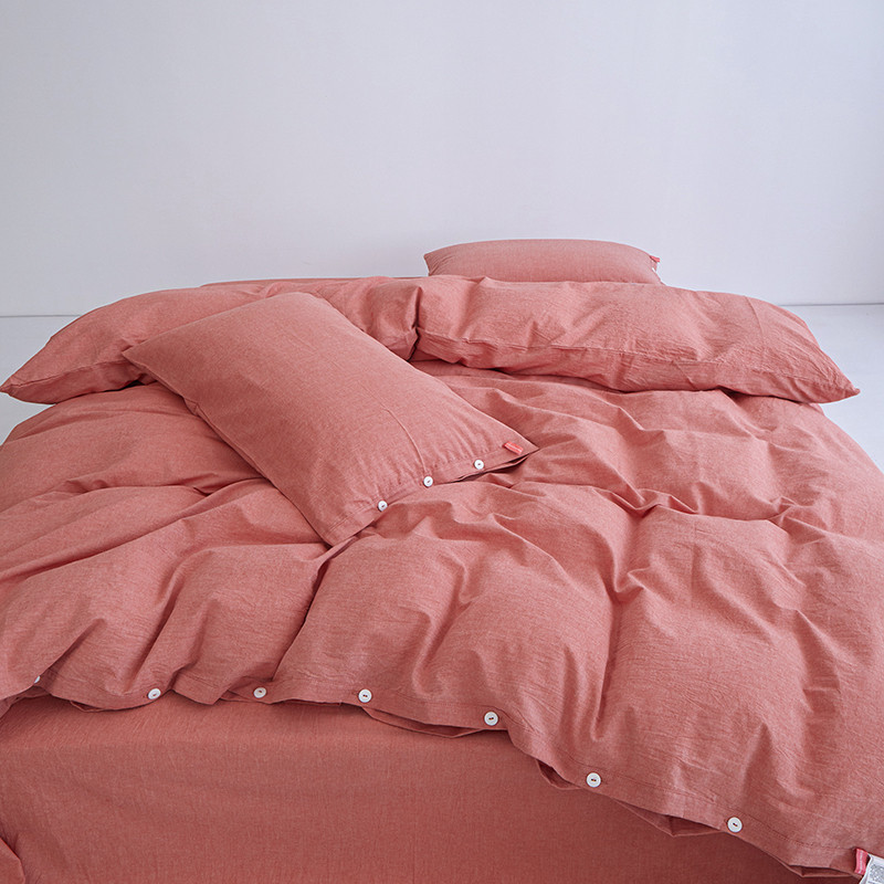 当前位置: 91家纺网 > 商品网购 > 床品套件 > 四件套 > 全棉普通四件套 > 安莱生活 2023年水洗棉全棉色经色纬高支高密纽扣款工艺四件套 橘红