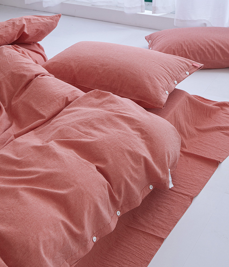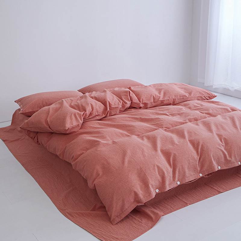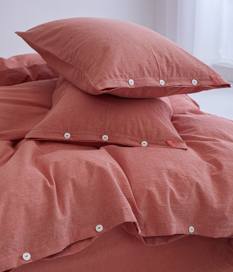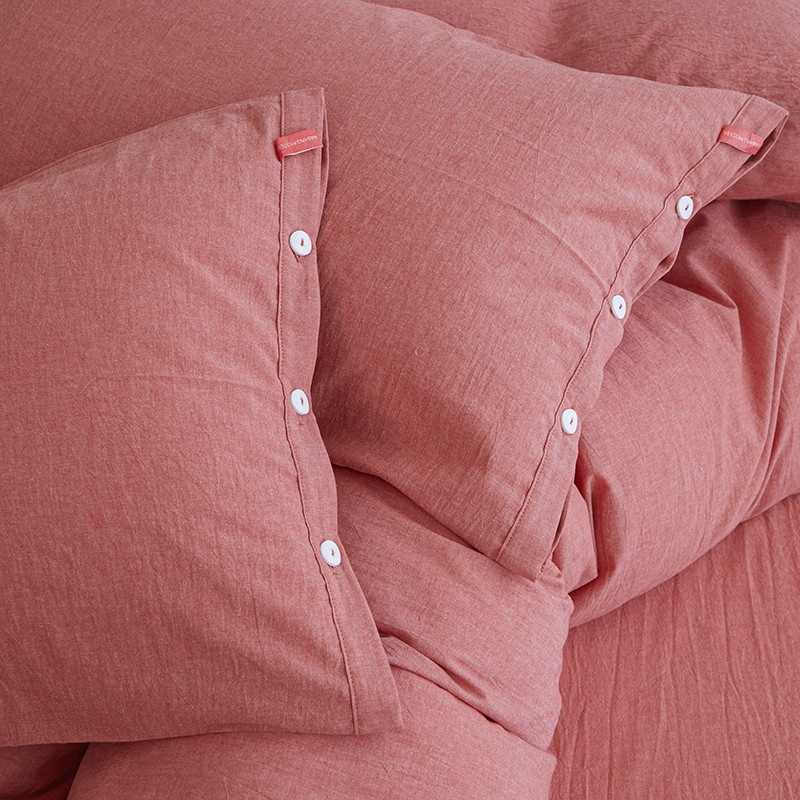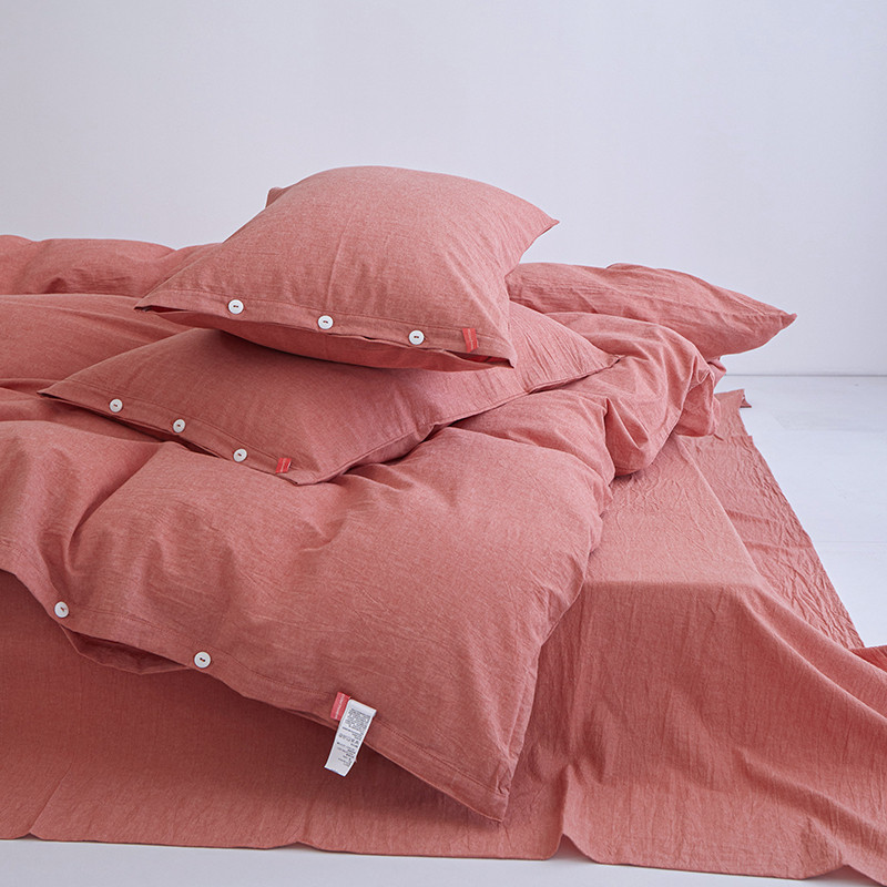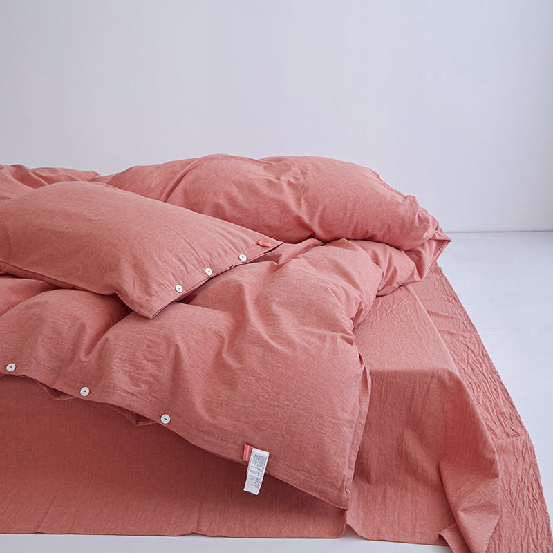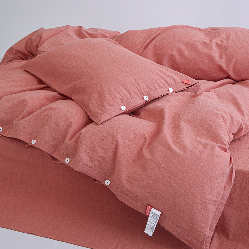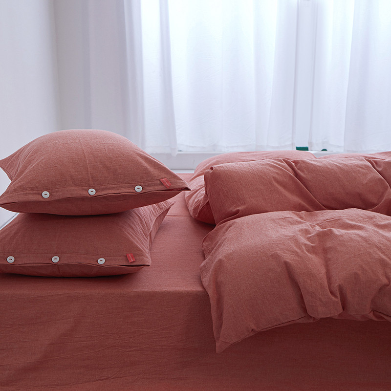 当前位置: 91家纺网 > 商品网购 > 床品套件 > 四件套 > 全棉普通四件套 > 安莱生活 2023年水洗棉全棉色经色纬高支高密纽扣款工艺四件套 橘红
