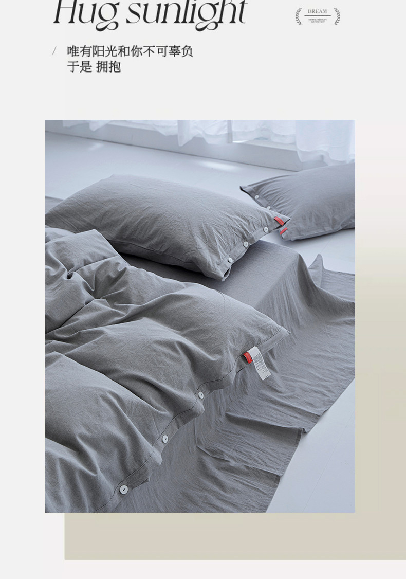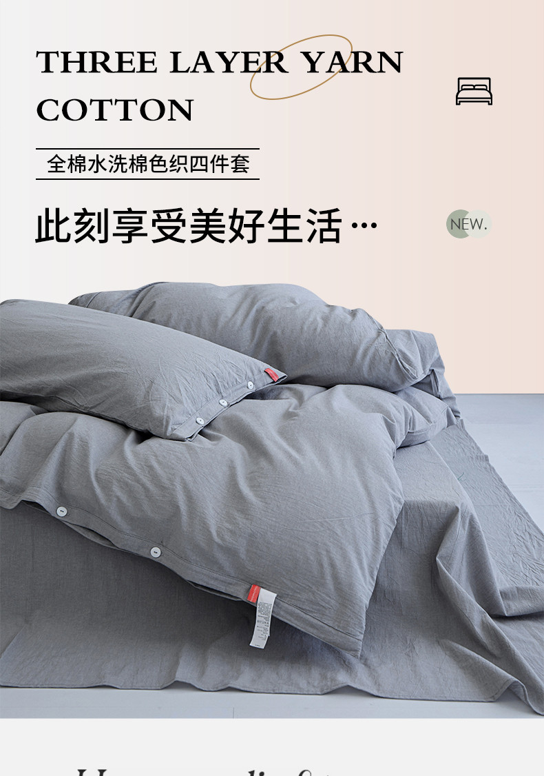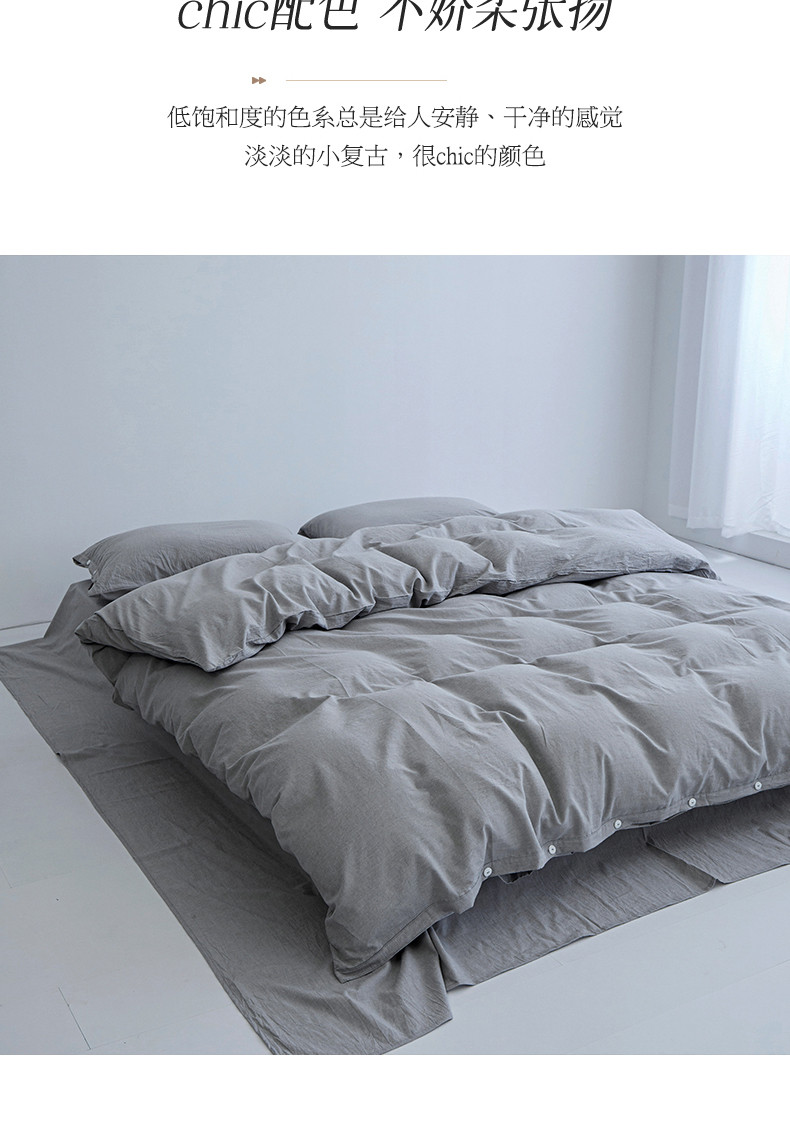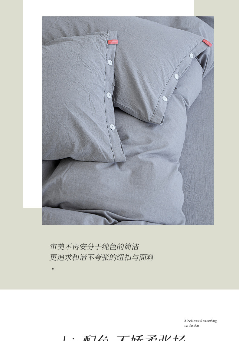 当前位置: 91家纺网 > 商品网购 > 床品套件 > 四件套 > 全棉普通四件套 > 安莱生活 2023年水洗棉全棉色经色纬高支高密纽扣款工艺四件套 银灰