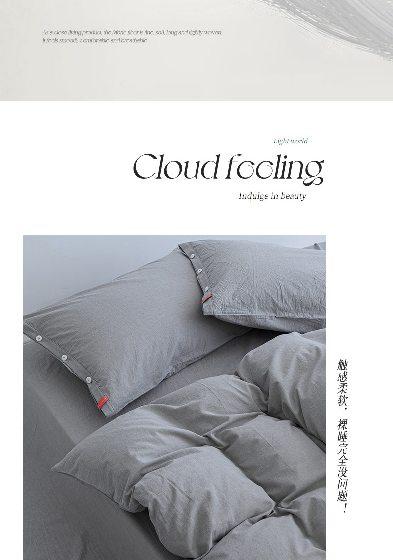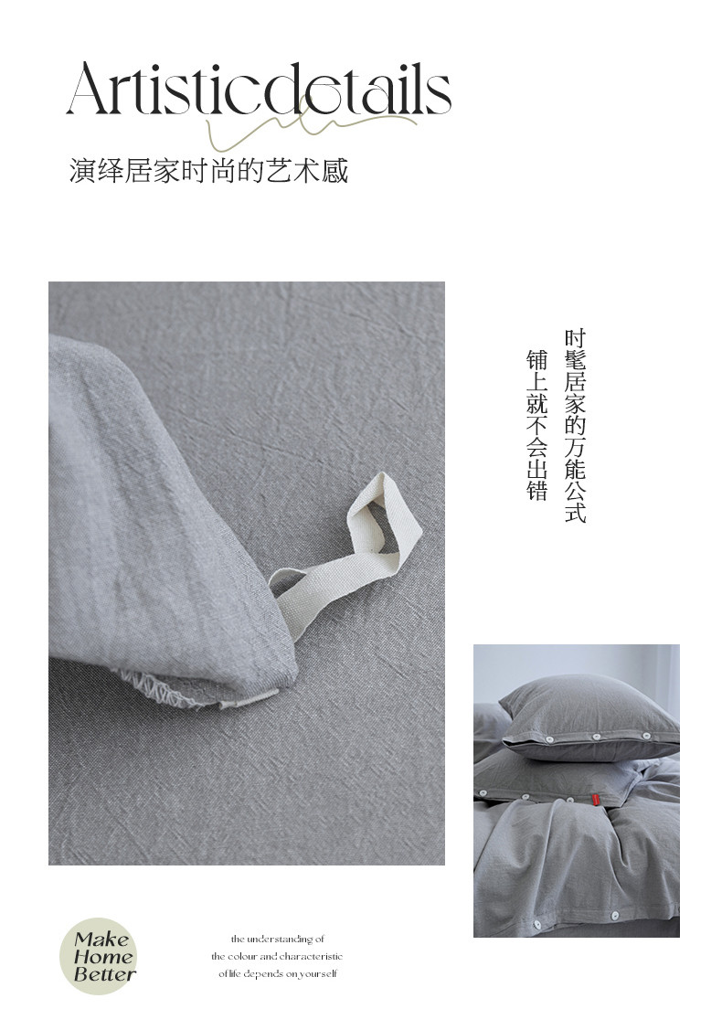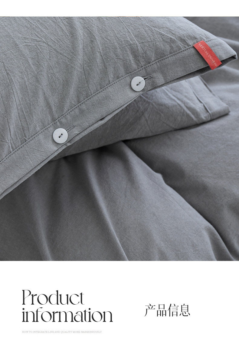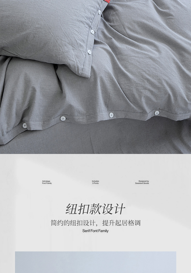 当前位置: 91家纺网 > 商品网购 > 床品套件 > 四件套 > 全棉普通四件套 > 安莱生活 2023年水洗棉全棉色经色纬高支高密纽扣款工艺四件套 银灰
