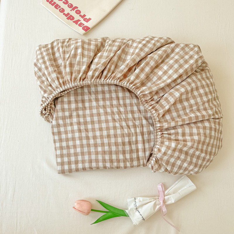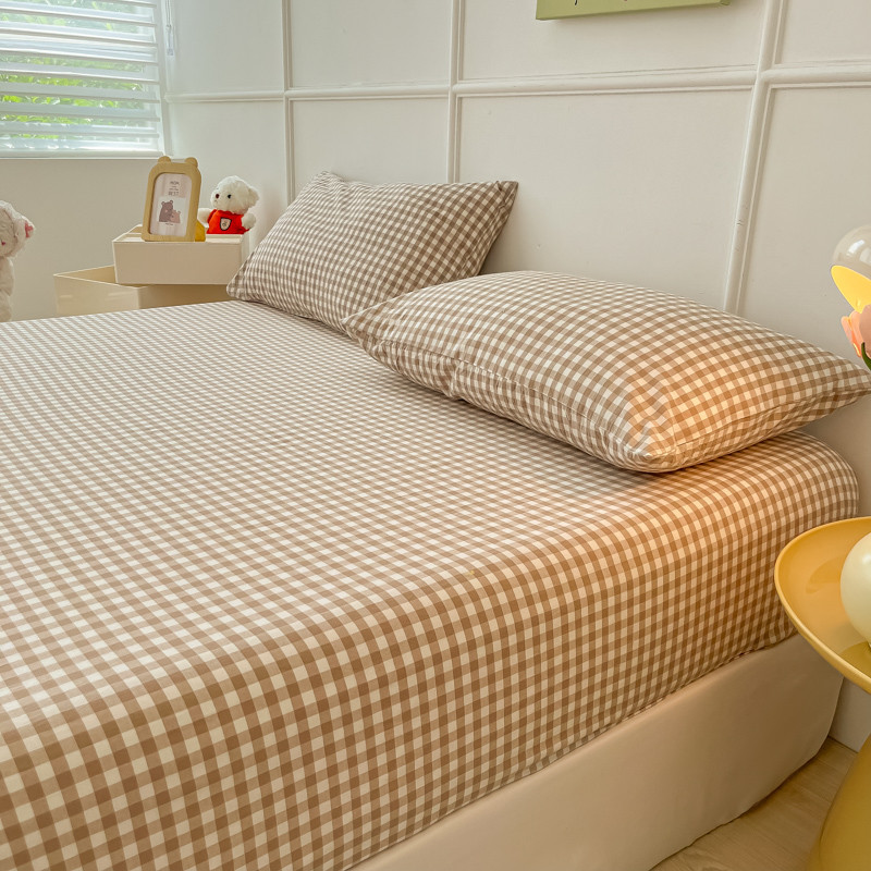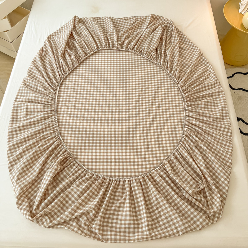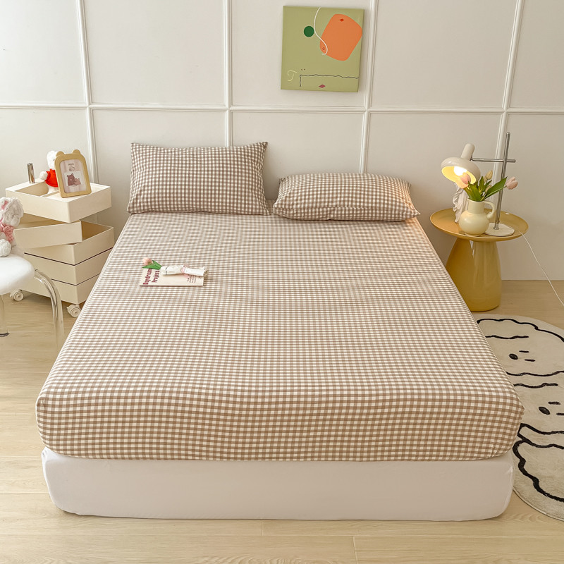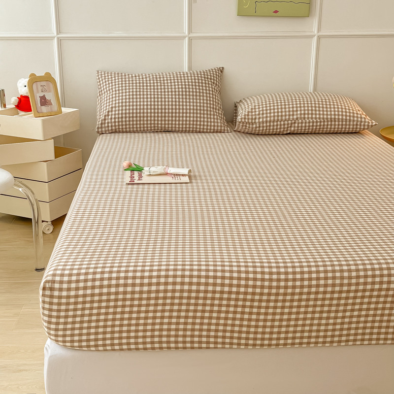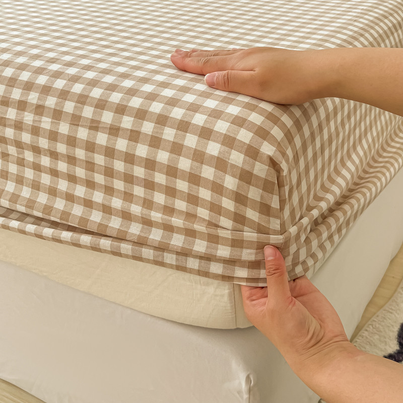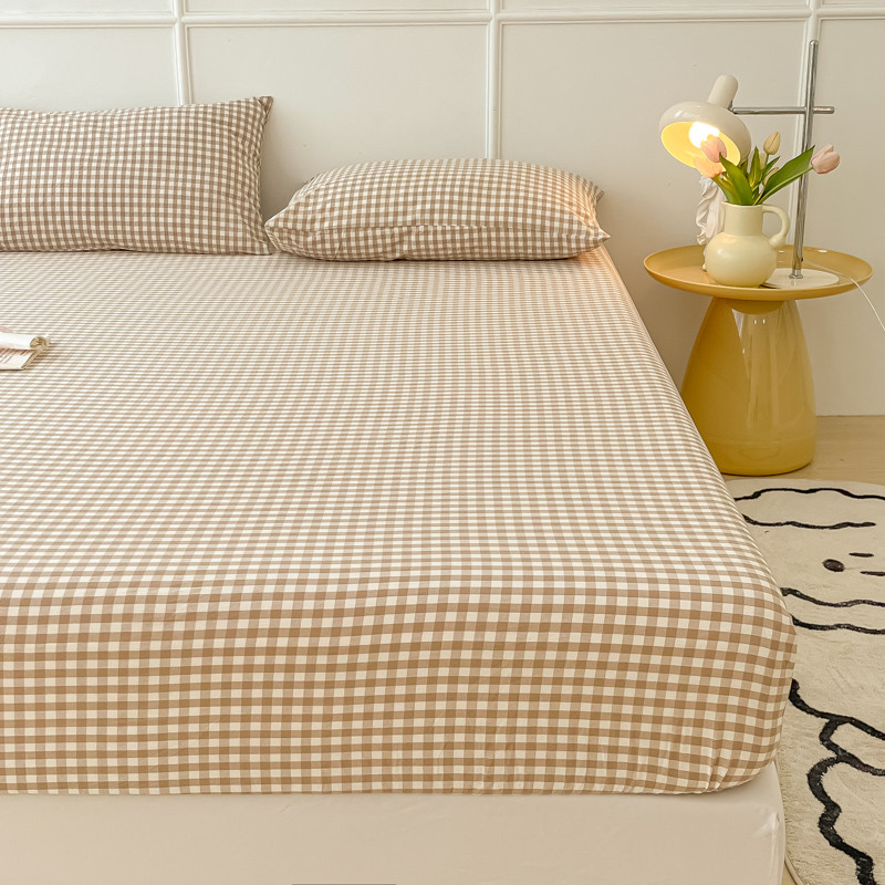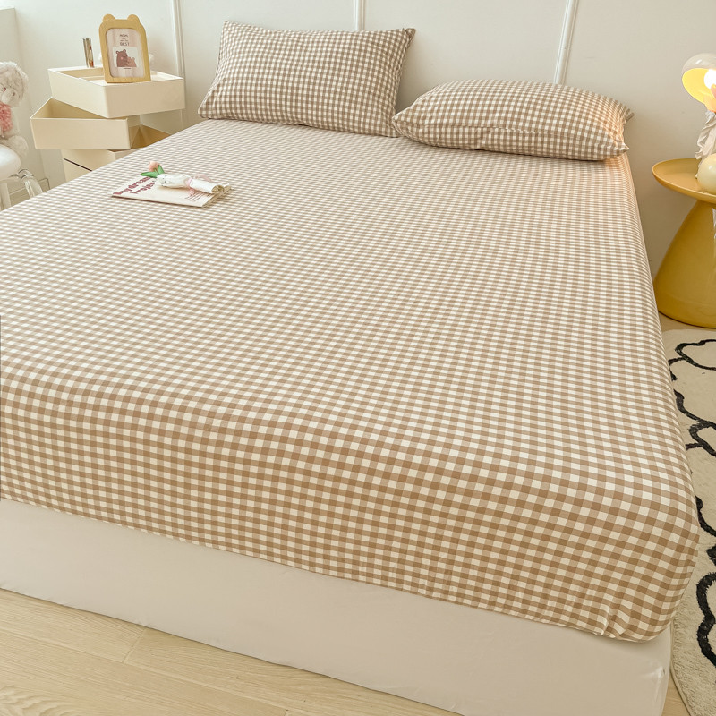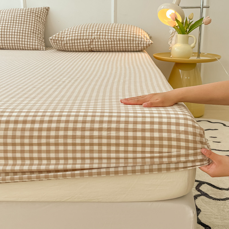 盼季 2023新款水洗棉床笠三件套防滑床罩席梦思全包围保护套 杏格