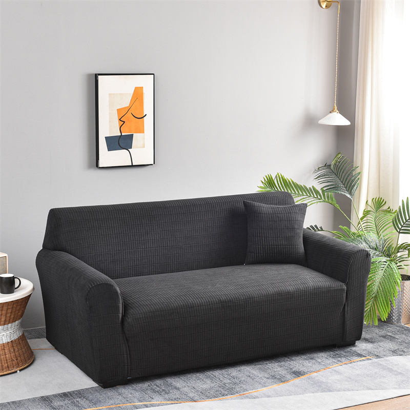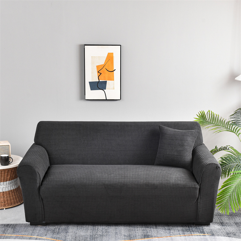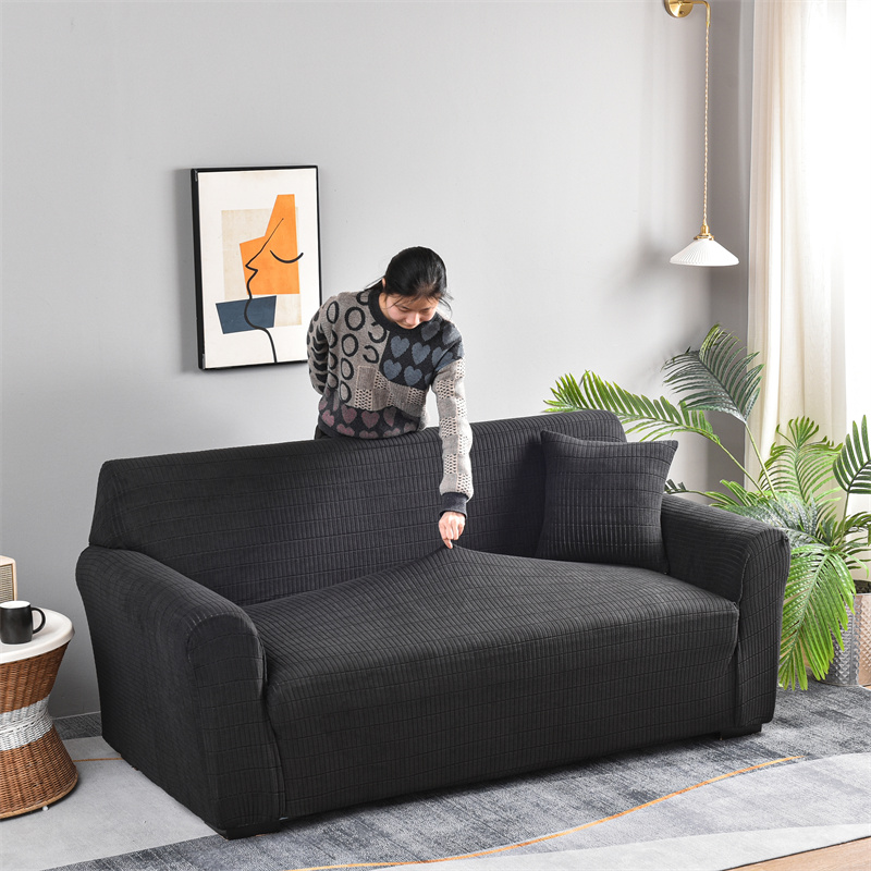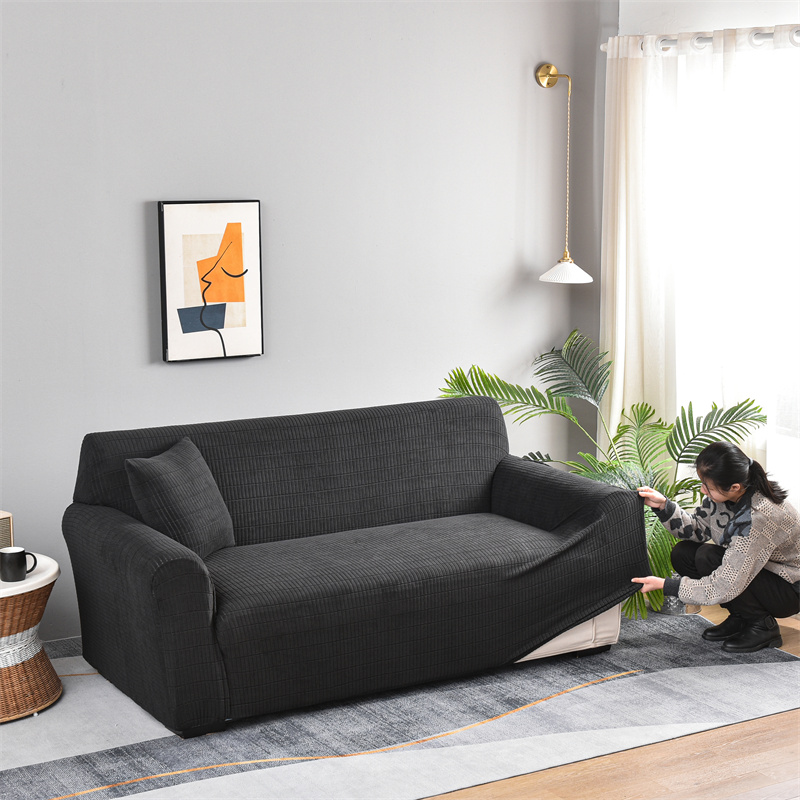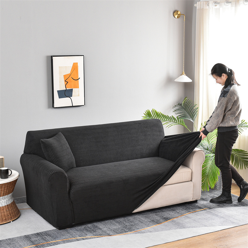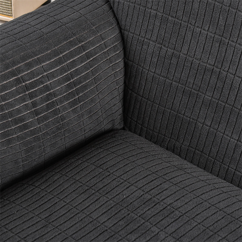 四季鹿 2023新款格格绒沙发套三人沙发 黑色