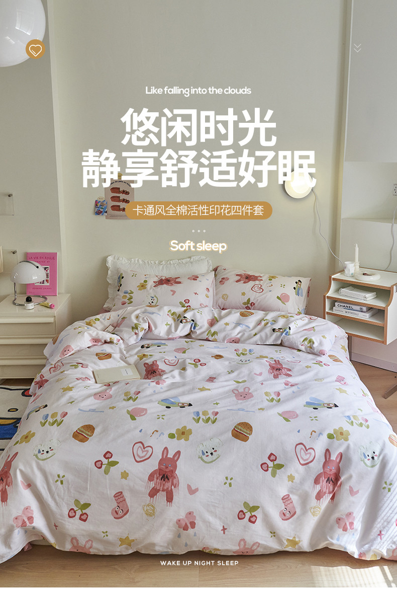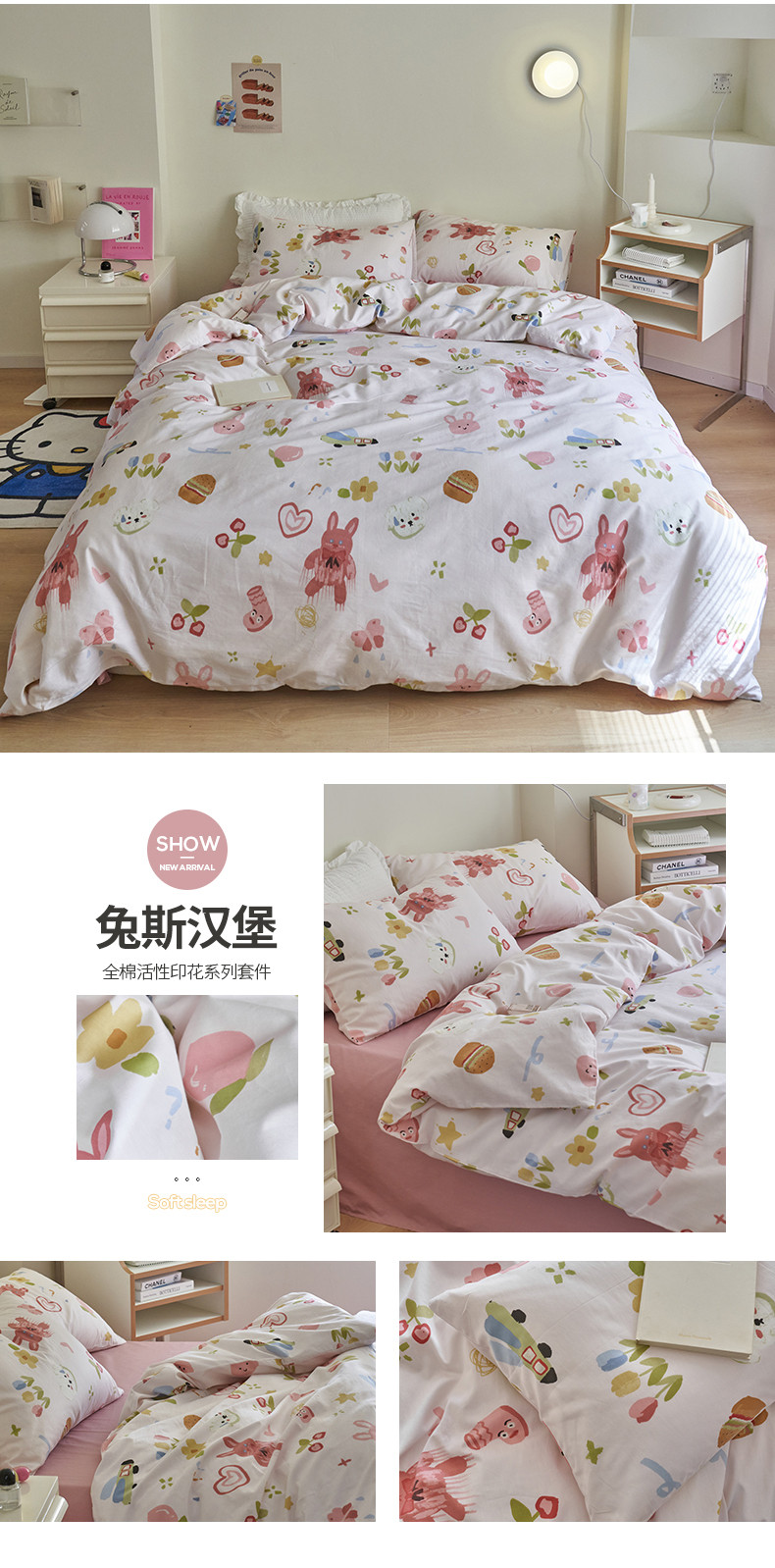 当前位置: 91家纺网 > 商品网购 > 床品套件 > 四件套 > 全棉普通四件套 > 窝米 2023新款13370全棉卡通风系列四件套 兔斯汉堡