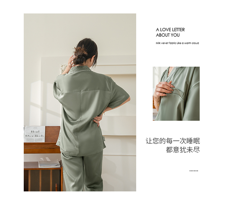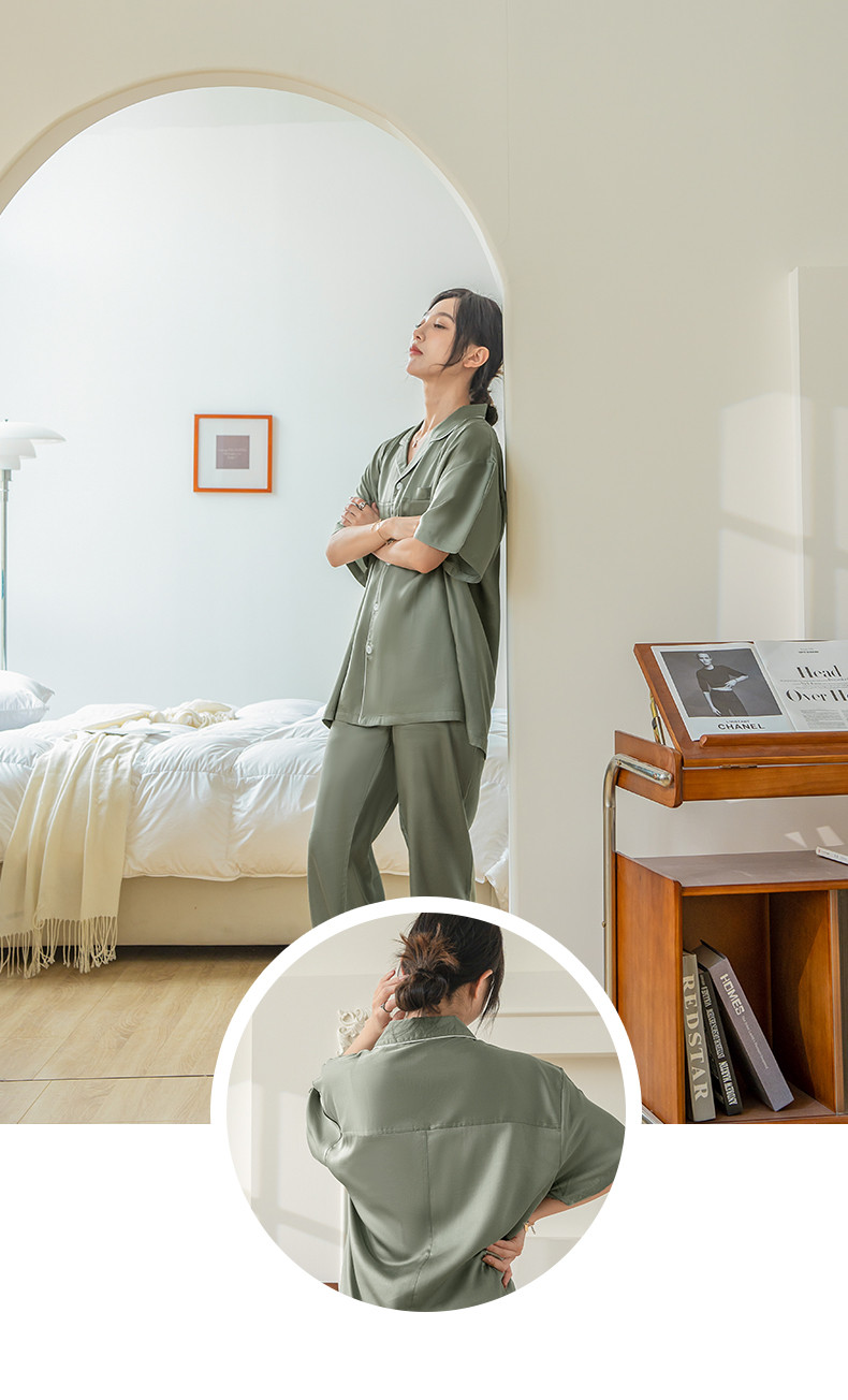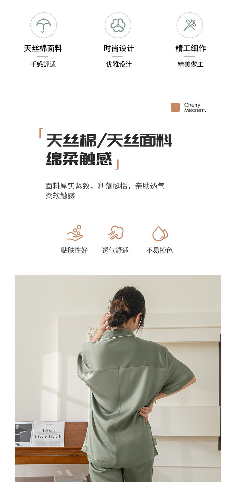 商品名称:都市轻奢天丝棉/天丝家居服套装可外穿韩版宽松情侣睡衣 宝石绿-天丝