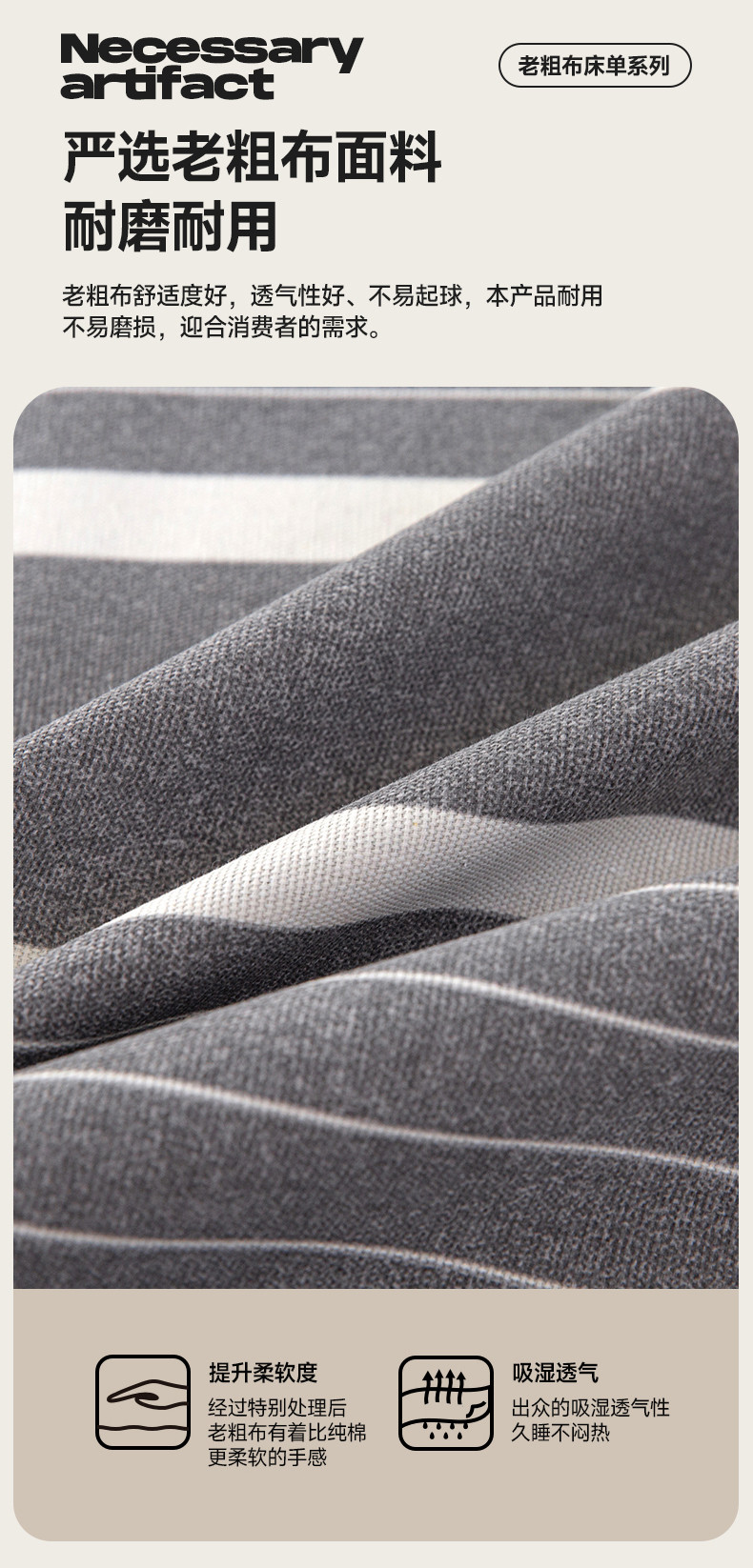 首爱家纺 2025新款原棉纯棉粗布床单纯棉单床单 冷灰