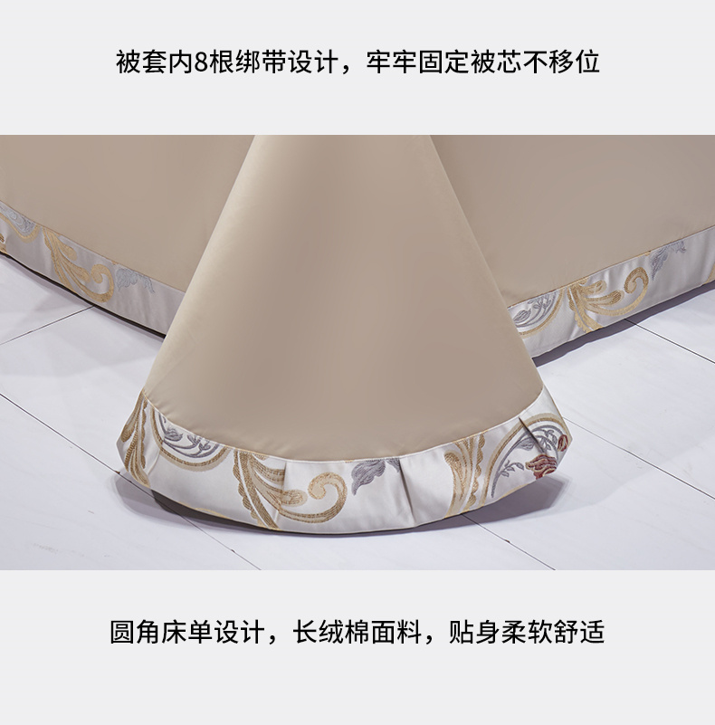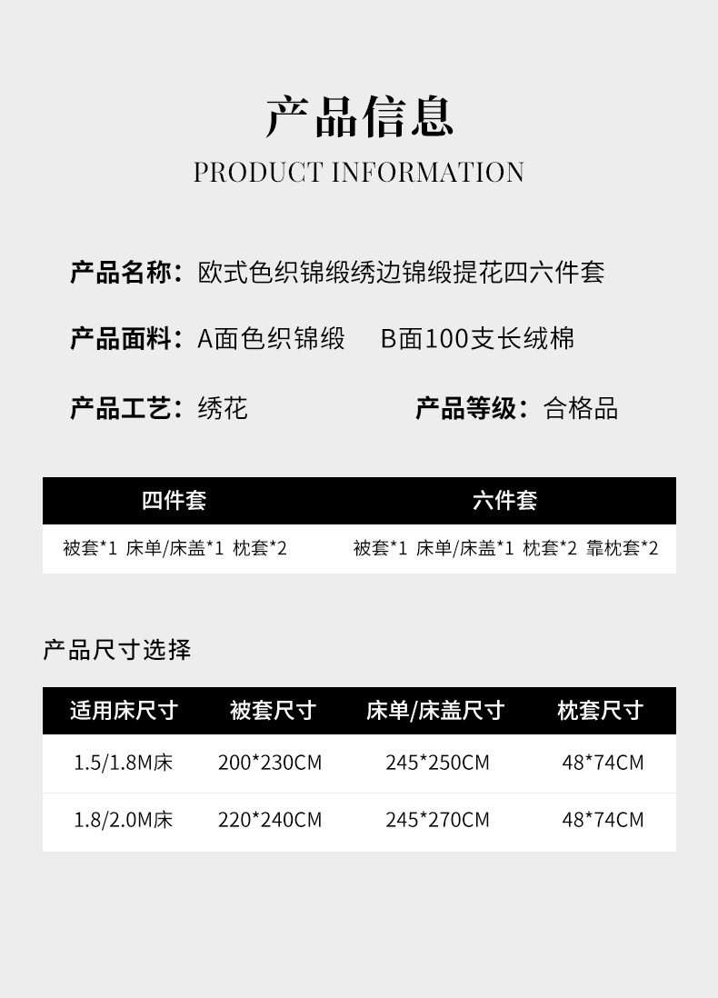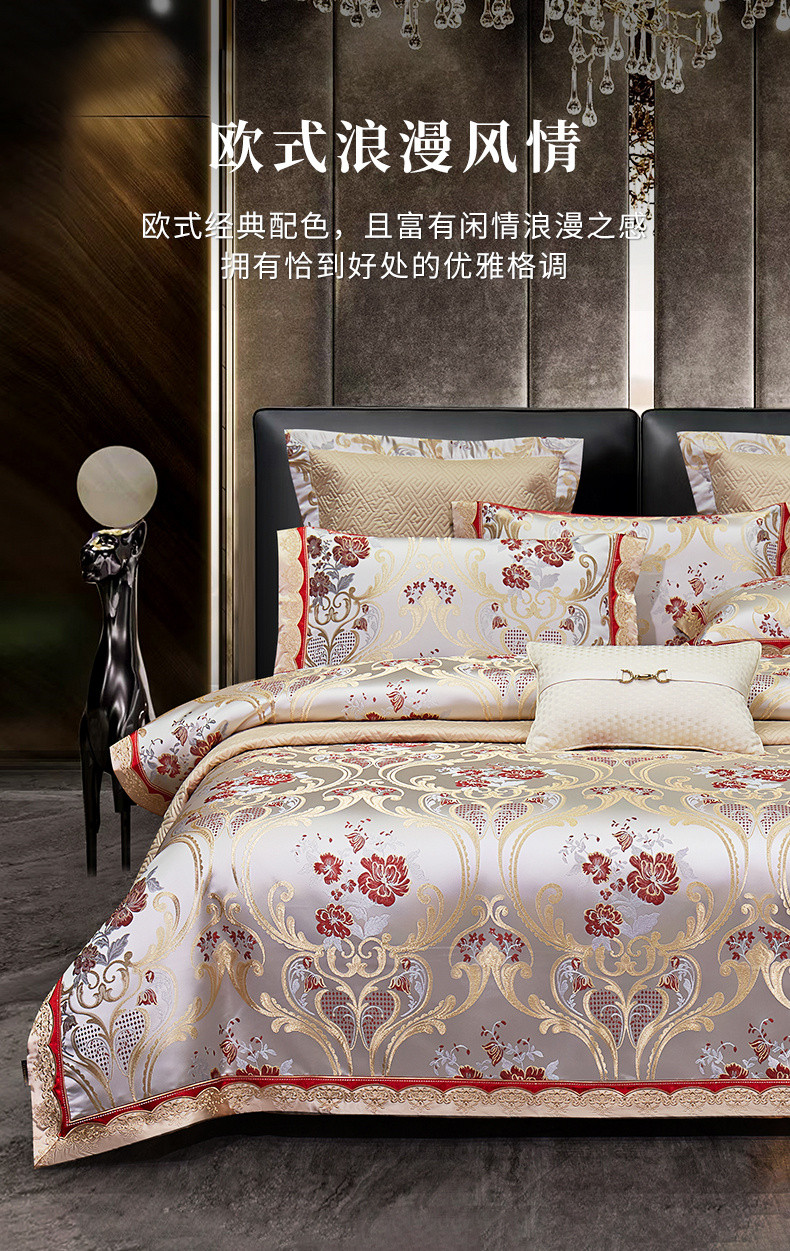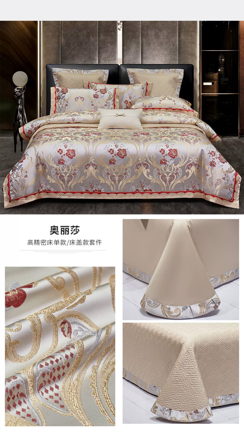 当前位置: 91家纺网 > 商品网购 > 床品套件 > 四件套 > 提花四件套 > 嘉恋 2023新款欧式高精密绣边锦缎提花四六件套 奥丽莎