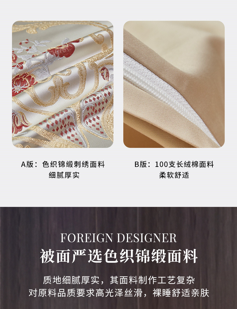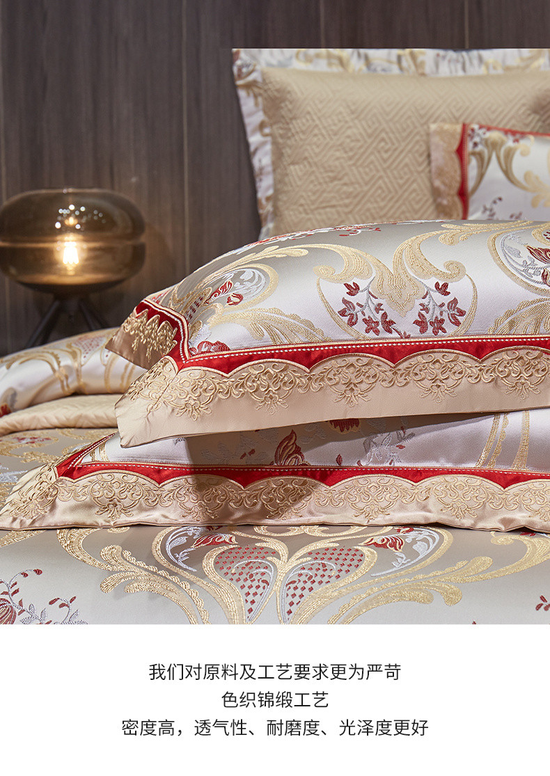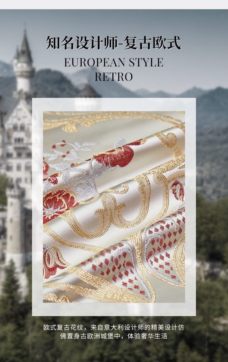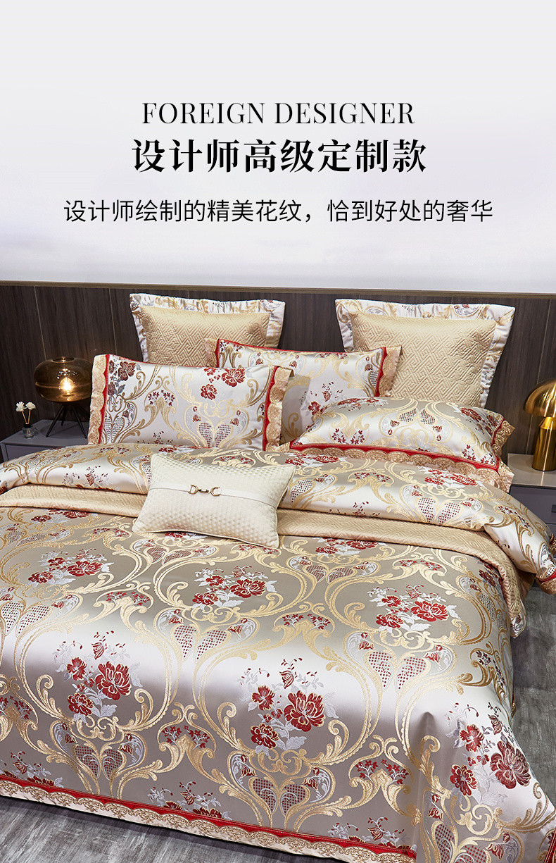 当前位置: 91家纺网 > 商品网购 > 床品套件 > 四件套 > 提花四件套 > 嘉恋 2023新款欧式高精密绣边锦缎提花四六件套 奥丽莎