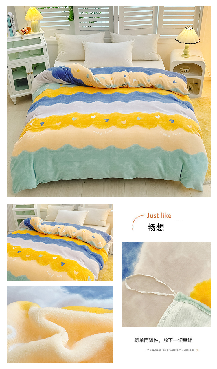 • 91家纺网 家纺一手货源 找家纺 新款230克高克重印花牛奶绒单被套定制定做尺寸 畅想