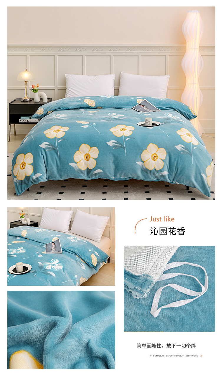 • 91家纺网 家纺一手货源 找家纺 新款230克高克重印花牛奶绒单被套定制定做尺寸 沁园花香
