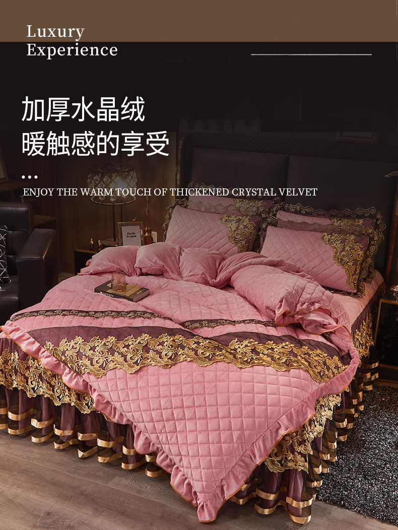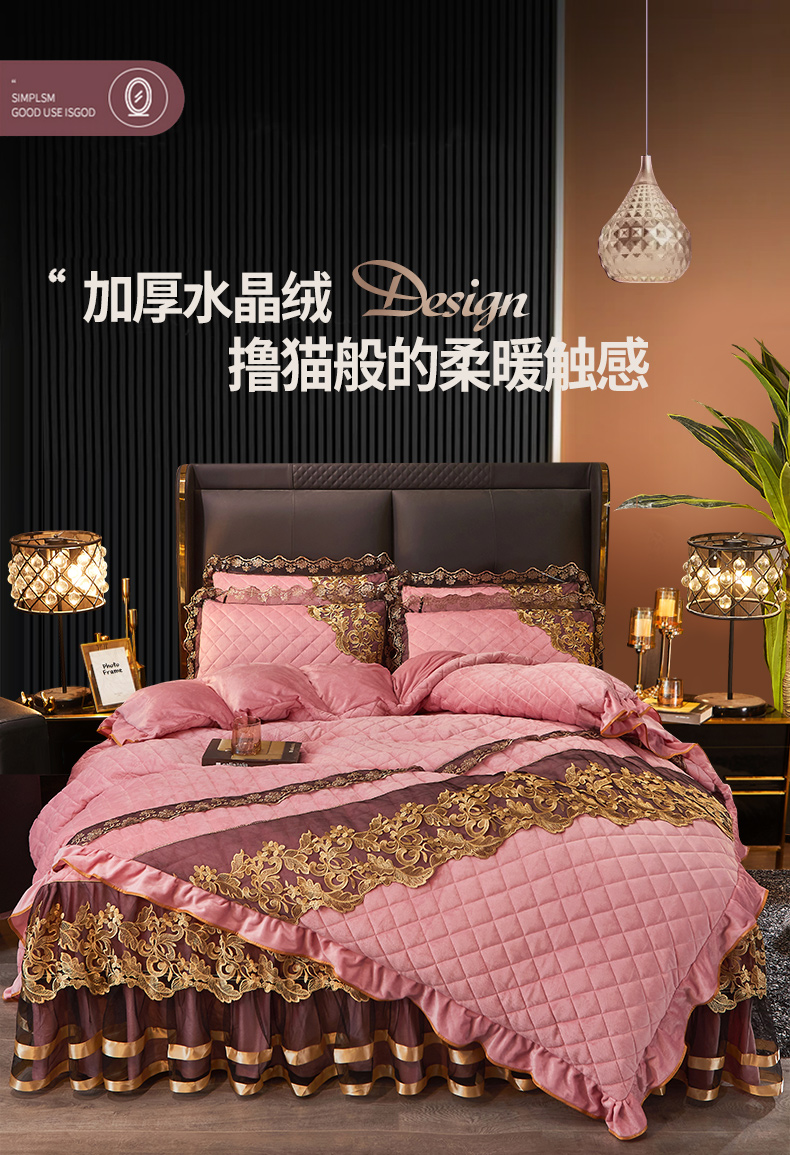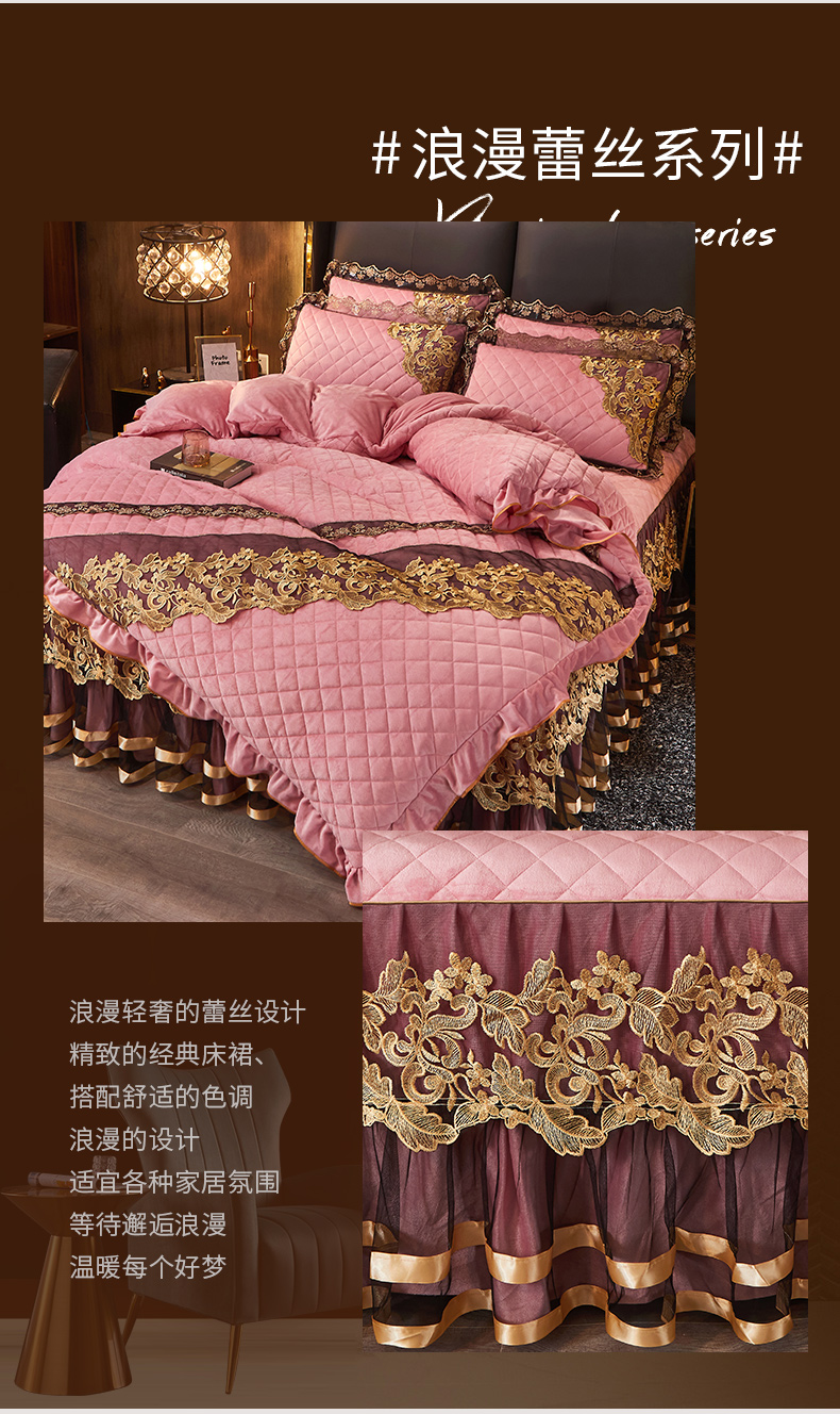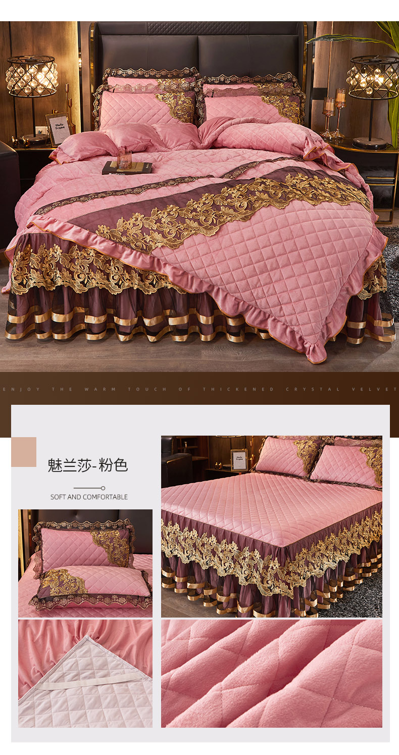 当前位置: 91家纺网 > 商品网购 > 床品套件 > 四件套 > 水晶绒四件套 > 恋尚2023新款魅兰莎水晶绒系列被套夹棉床裙四件套 粉色