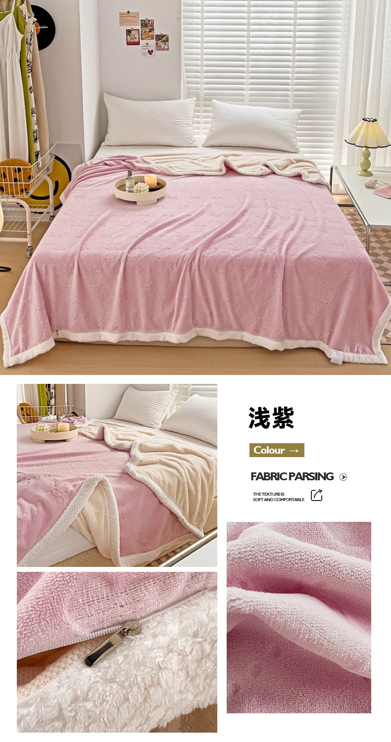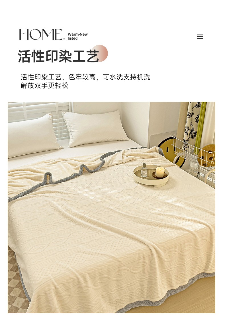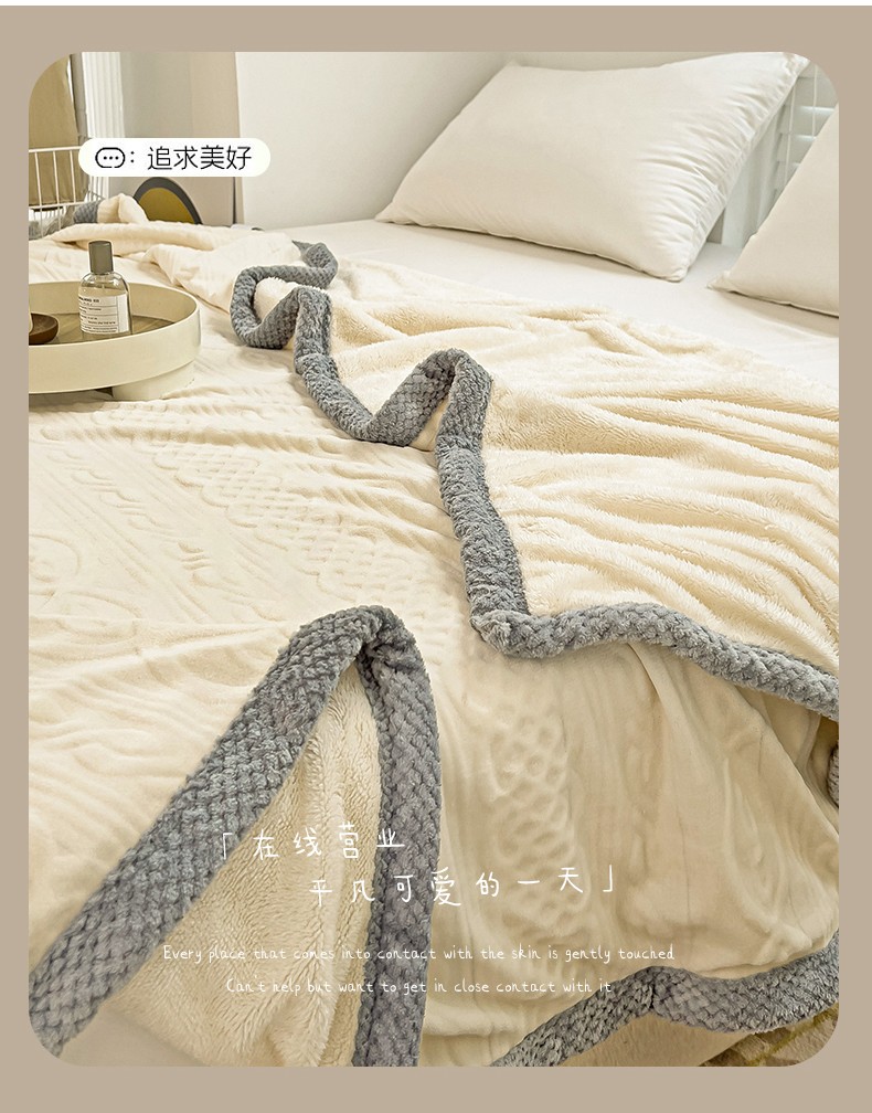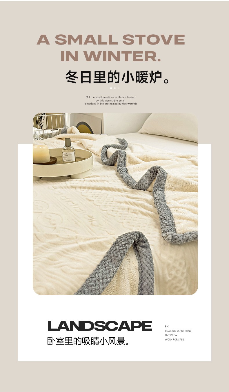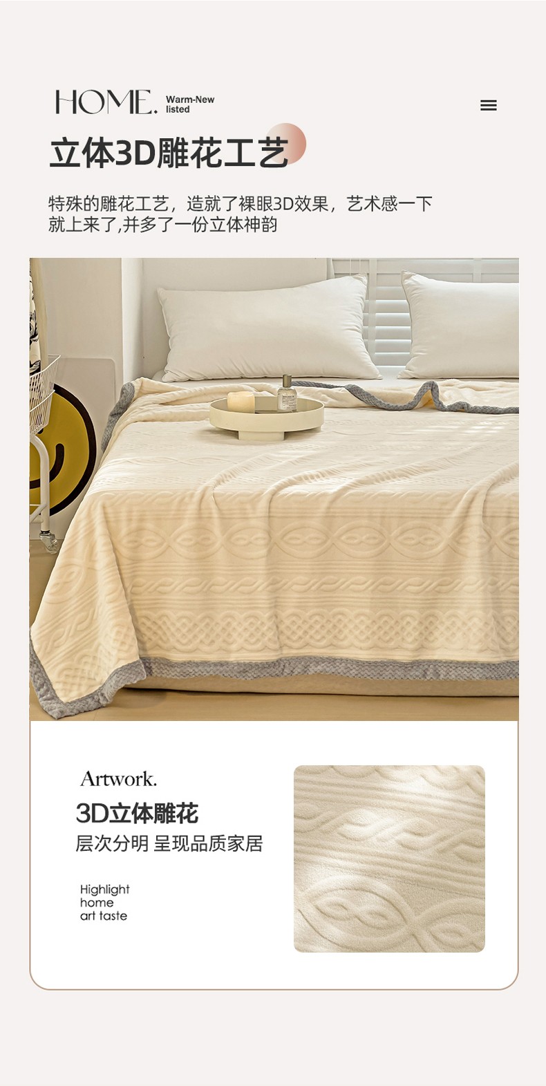 (总)法澳 2023新款双层加厚220克牛奶绒雕花烂花毛毯休闲毯