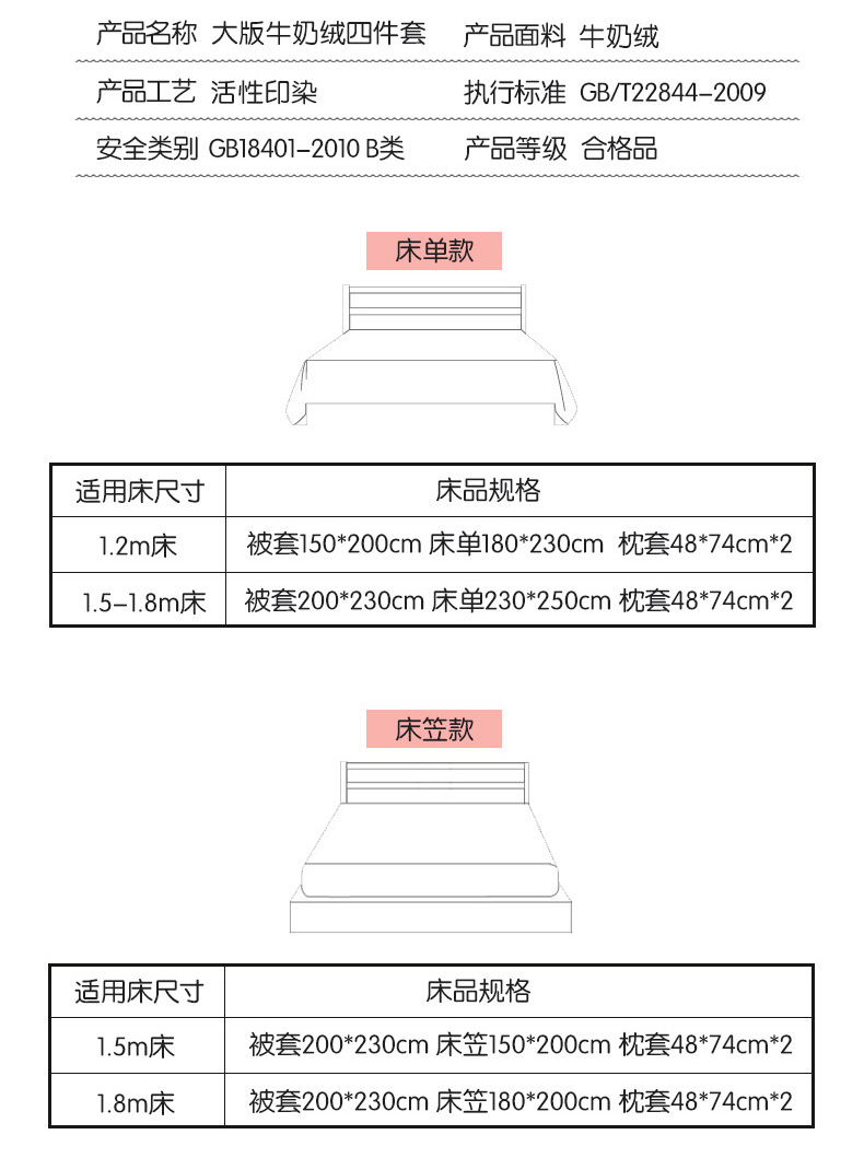 1.5*2.0m被套+1.5m床笠+2个枕套 | ¥90.00 |