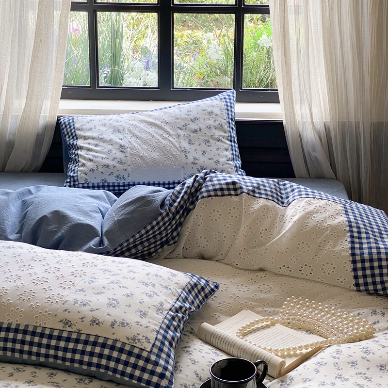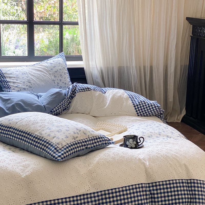 旷野 2023新款水洗棉-微甜小柏丽四件套 棚拍 莫奈蓝