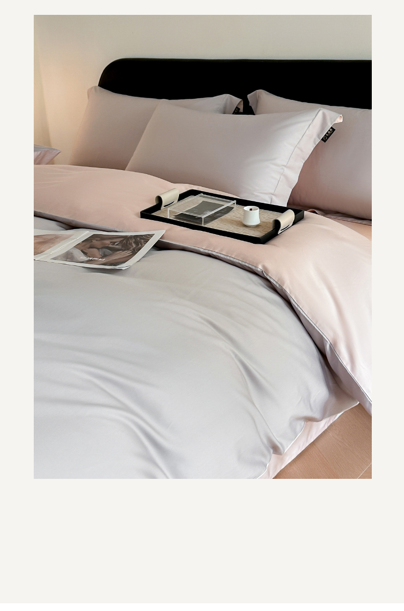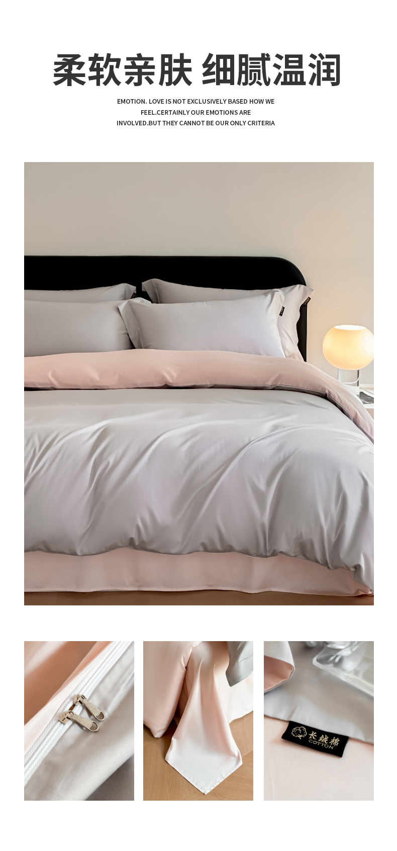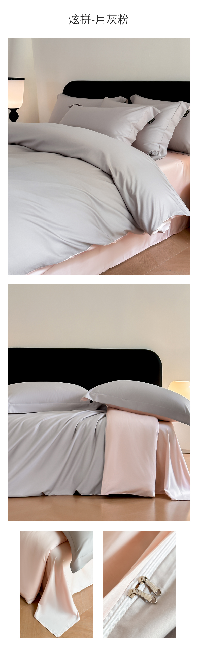商品名称:618家纺2023新款A类50S100支长绒棉全棉双拼炫拼系列四件套 炫拼-月灰粉