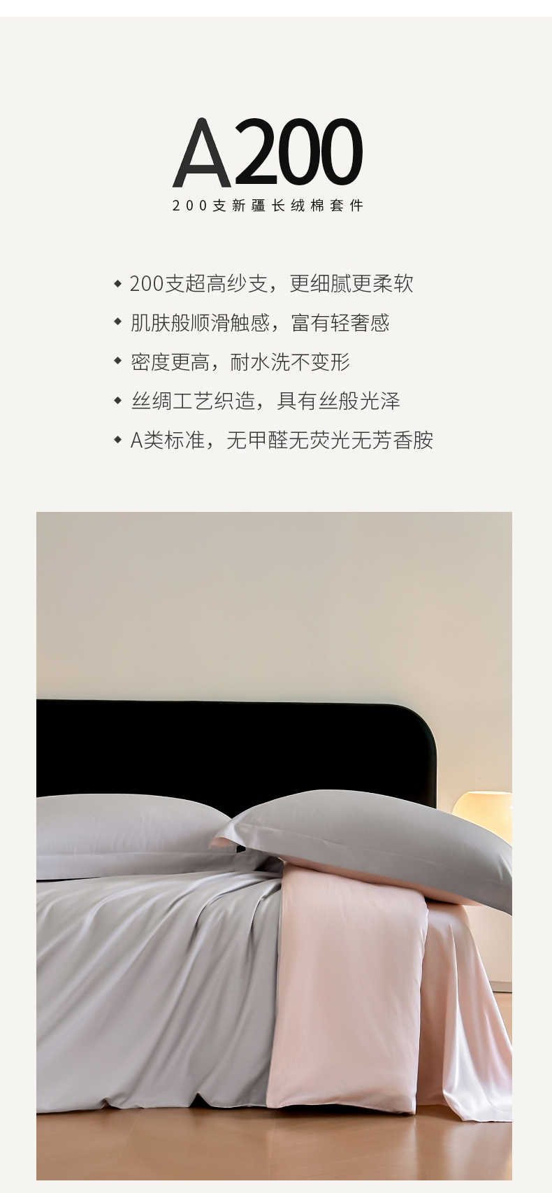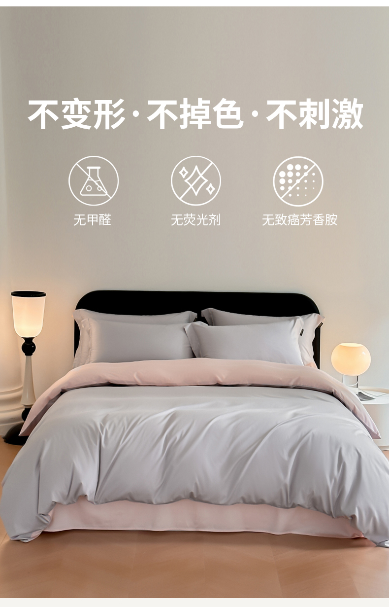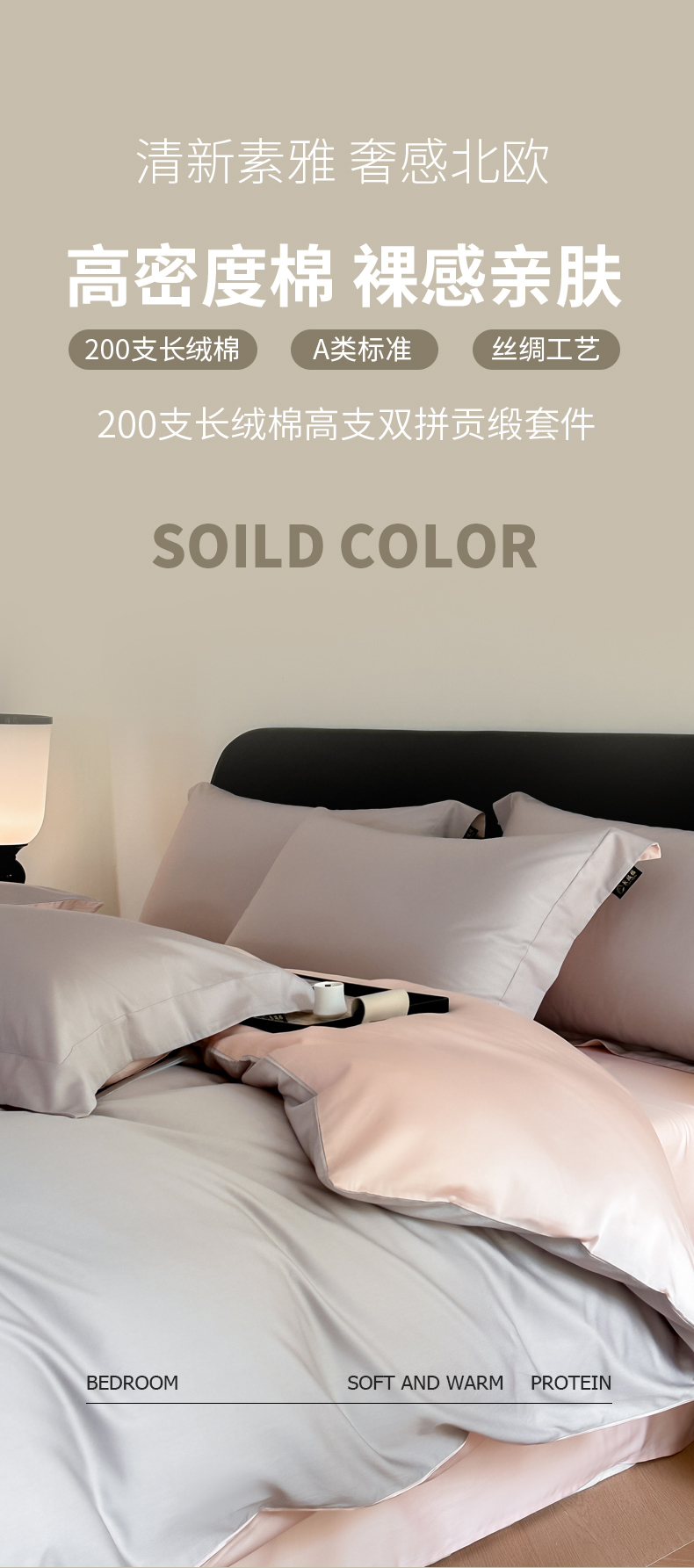 商品名称:618家纺2023新款A类50S100支长绒棉全棉双拼炫拼系列四件套 炫拼-月灰粉