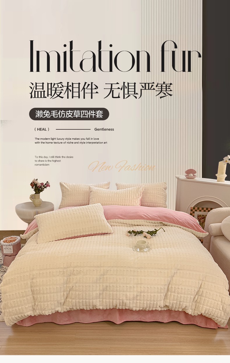 (总)铠畅家纺 2024新款兔毛绒牛奶绒四件套,琉璃粉,琉璃黄,琉璃灰,琉璃蓝,琉璃绿,琉璃紫