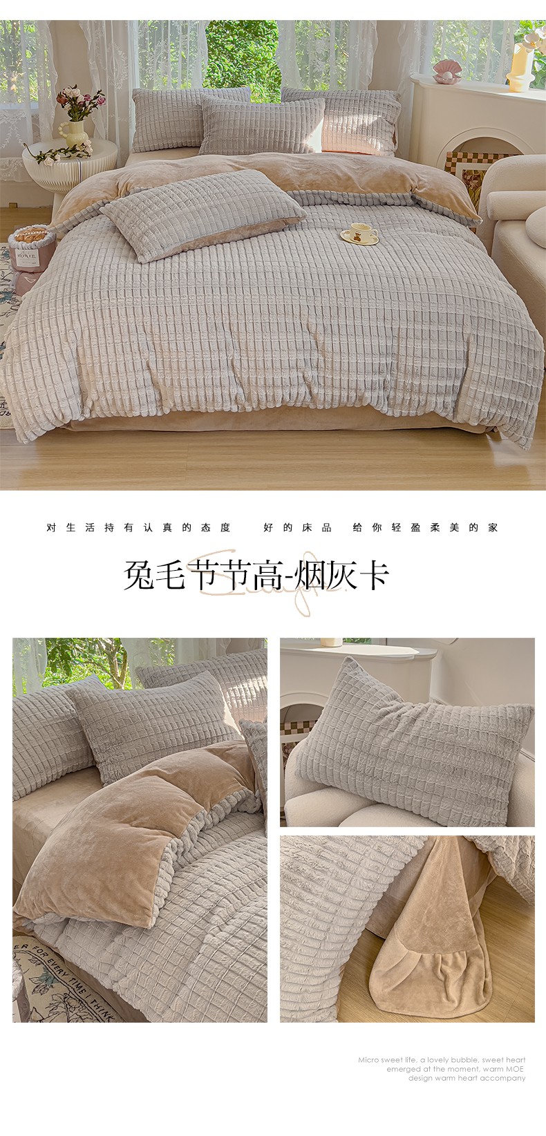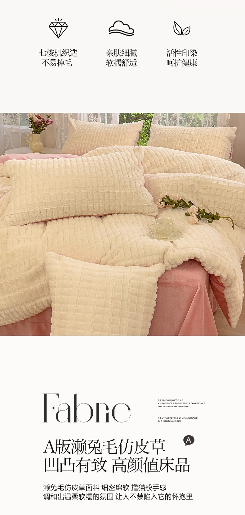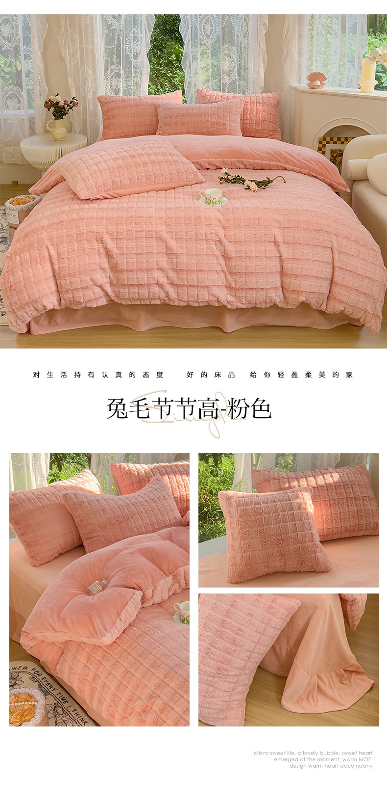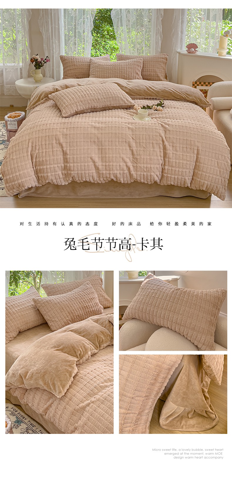 商品名称:总铠畅 2023爆款320克A类獭兔毛立体剪花纯色牛奶绒四件套-节节高