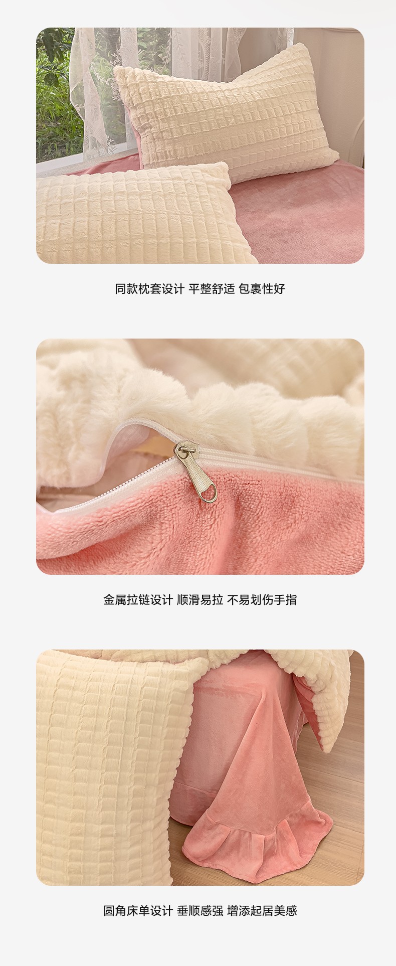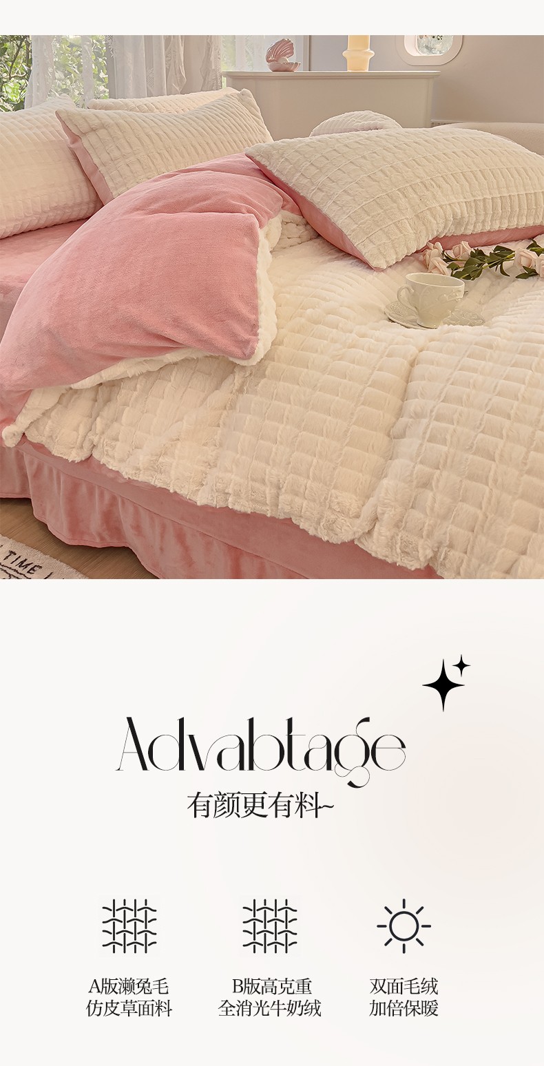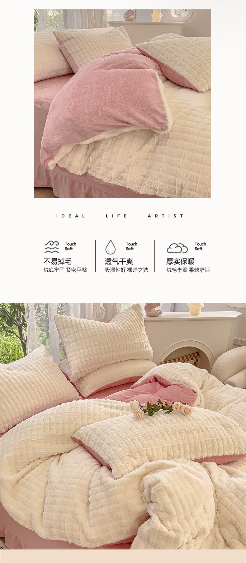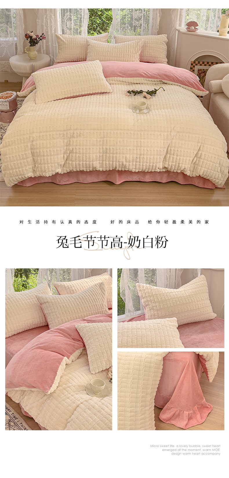 商品名称:总铠畅 2023爆款320克A类獭兔毛立体剪花纯色牛奶绒四件套-节节高