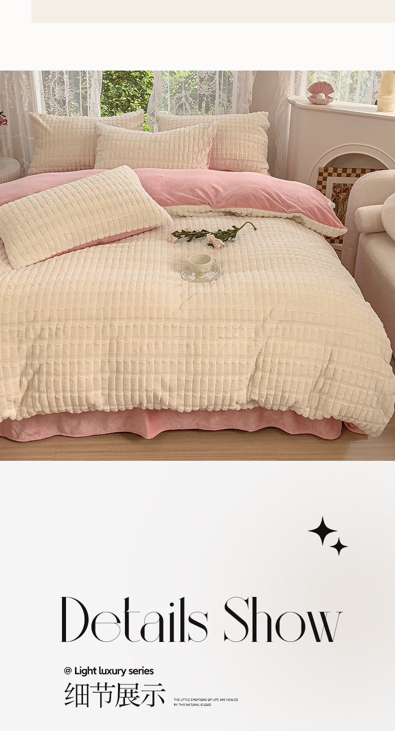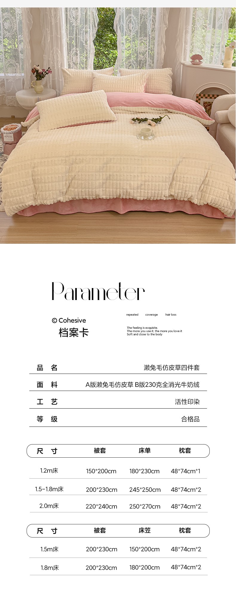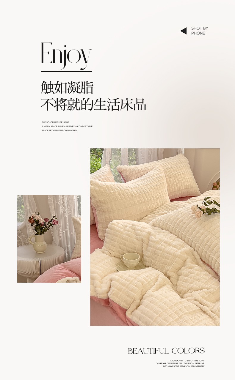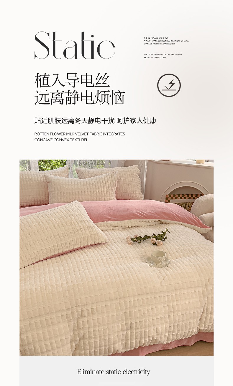 商品名称:总铠畅 2023爆款320克A类獭兔毛立体剪花纯色牛奶绒四件套-节节高