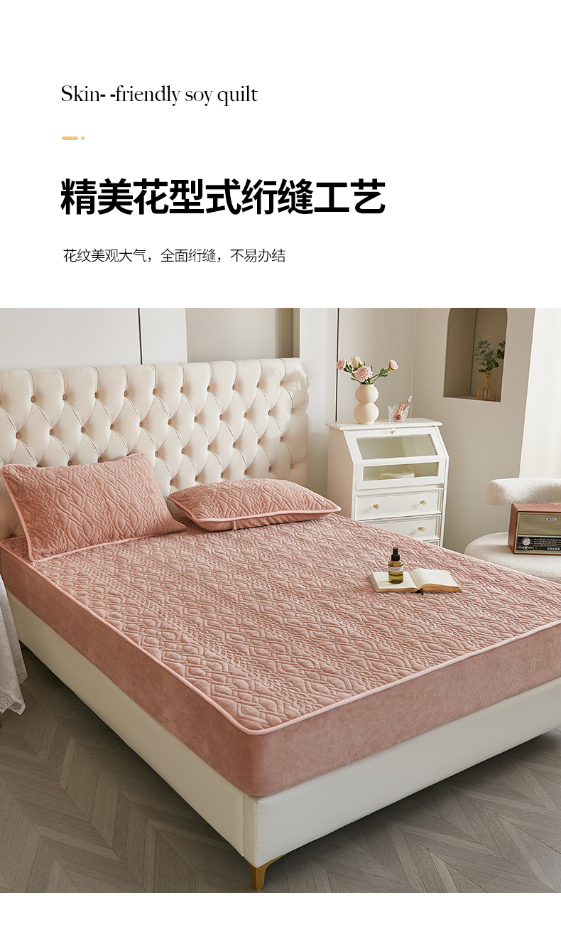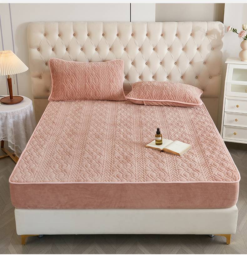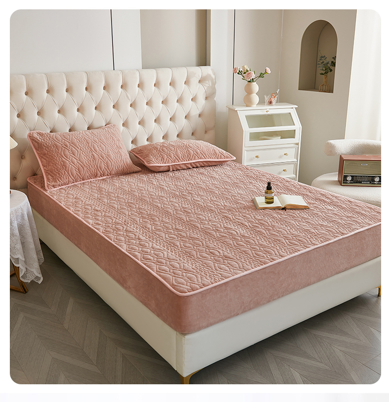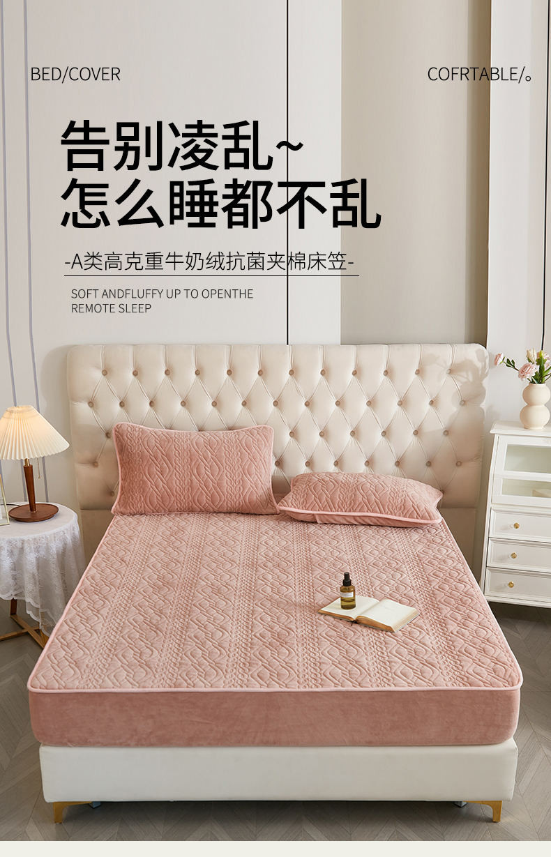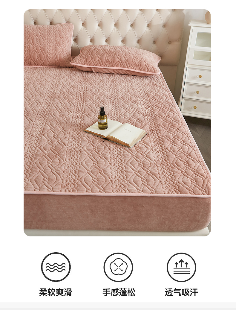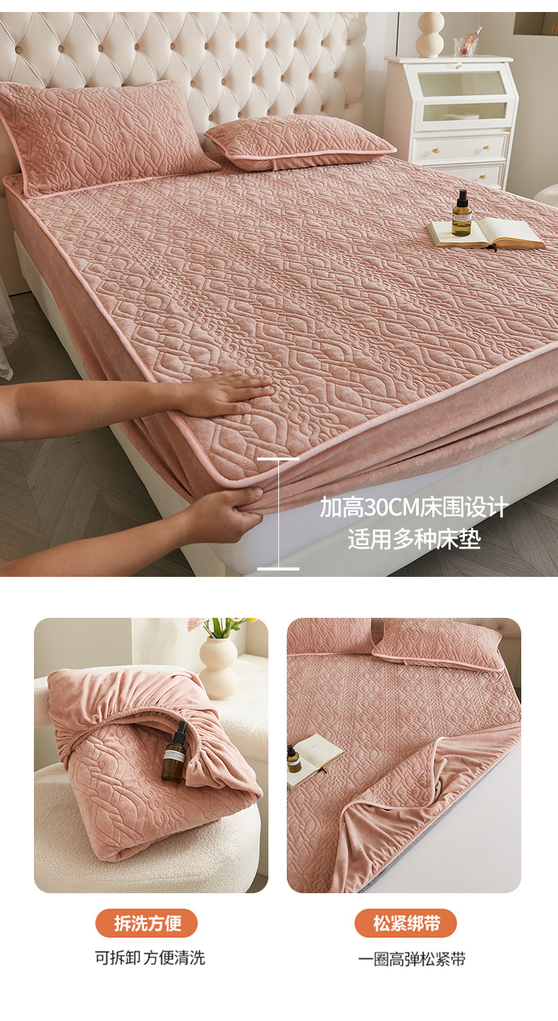 商品名称:网客家纺 2024新款牛奶绒夹棉床笠三件套 牛奶绒夹棉床笠-粉