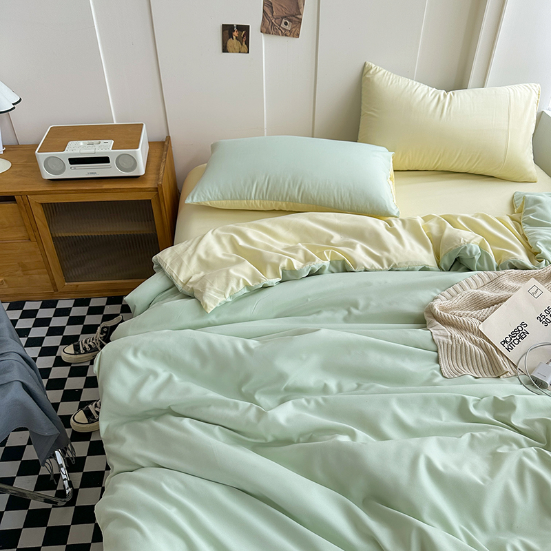 当前位置: 91家纺网 > 商品网购 > 床品套件 > 四件套 > 全棉普通四件套 > 优迈 新款纯色双拼水洗棉亲肤磨毛四件套-单被套枕套床笠双拼-薄荷芝士