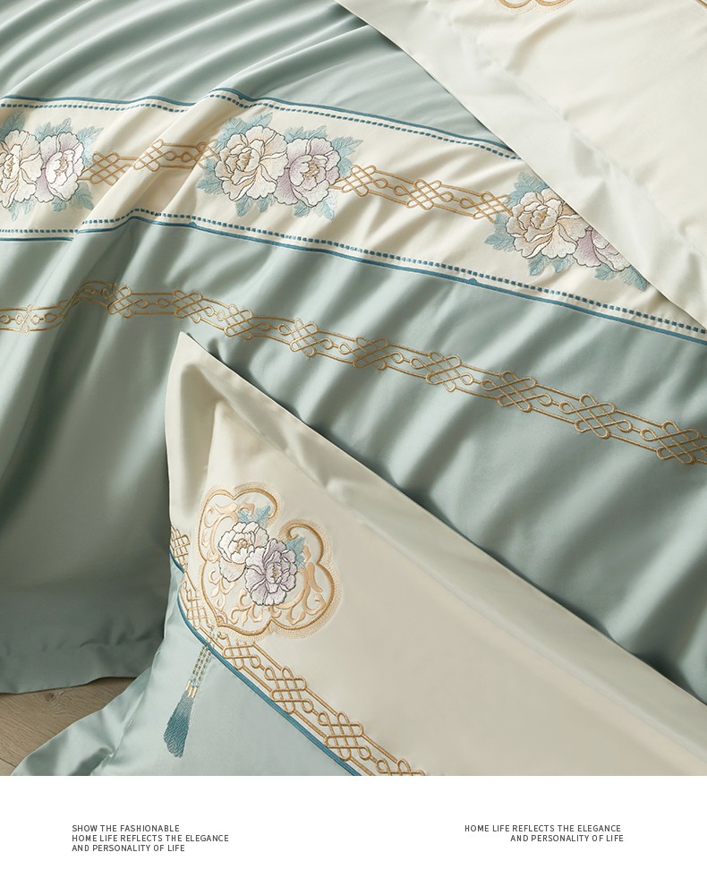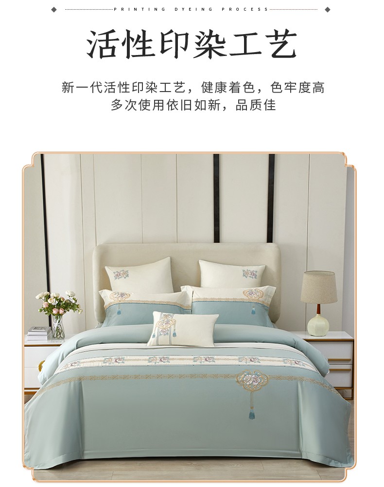 50S50支澳棉刺绣长绒棉四件套全棉新中式花卉直播爆款线下批发 花韵