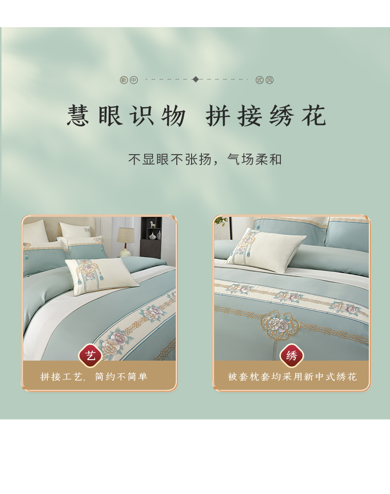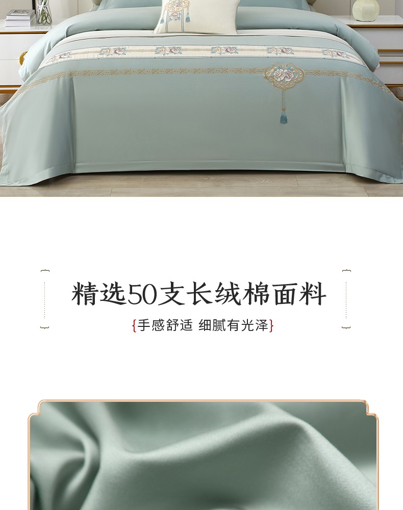 (总)50支50S长绒棉刺绣四件套新中式工艺款,荷塘月色粉 控价478-498元,荷塘月色玉 控价478-498元,翩翩起舞 控价478-498元,温馨满园粉玉 控价478-498元,温馨满园芋紫 控价478-498元,玉露清华 控价478-498元