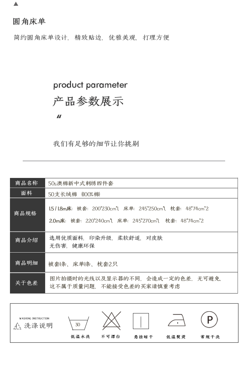 商品名称:50S50支澳棉刺绣长绒棉四件套全棉新中式花卉直播爆款线下批发 清澈