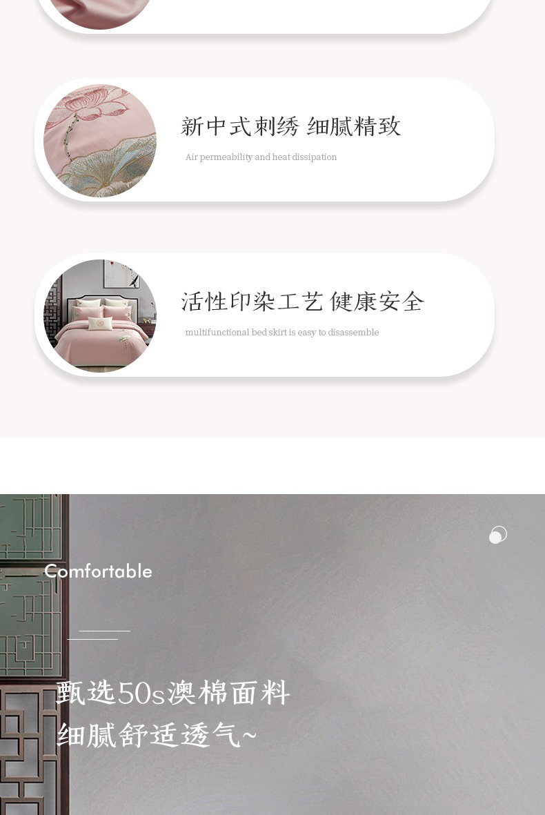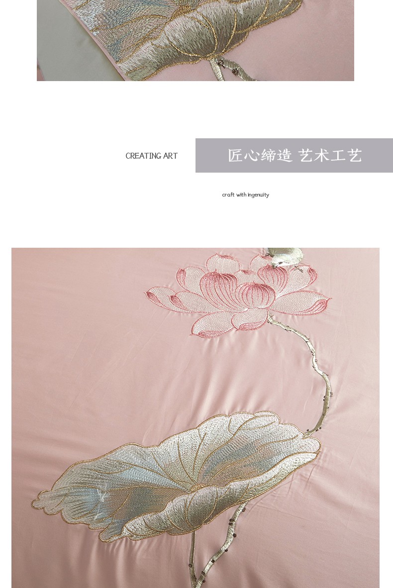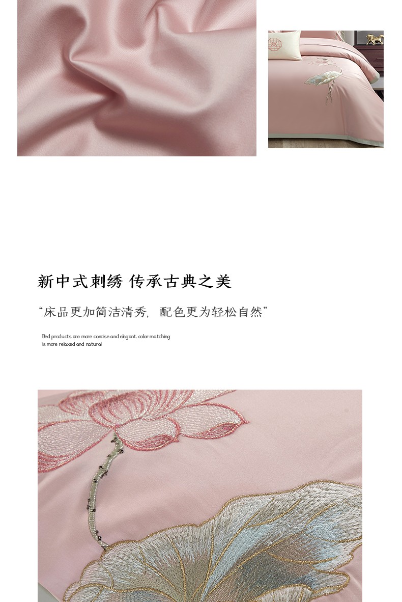 (总)50支50S长绒棉刺绣四件套新中式工艺款,荷塘月色粉 控价478-498元,荷塘月色玉 控价478-498元,翩翩起舞 控价478-498元,温馨满园粉玉 控价478-498元,温馨满园芋紫 控价478-498元,玉露清华 控价478-498元