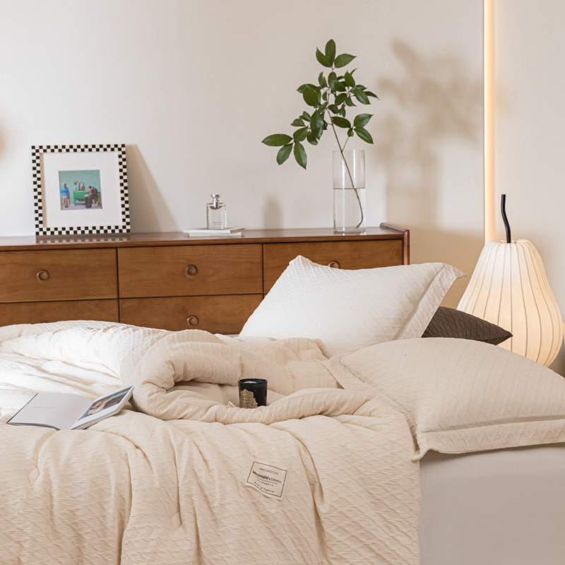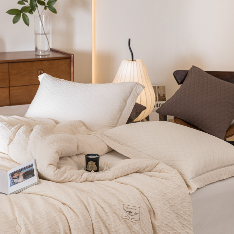 (总)上喜 2025新款韩国砂洗床盖+多功能夏被,白色,粉色,黄色,灰色,紫色