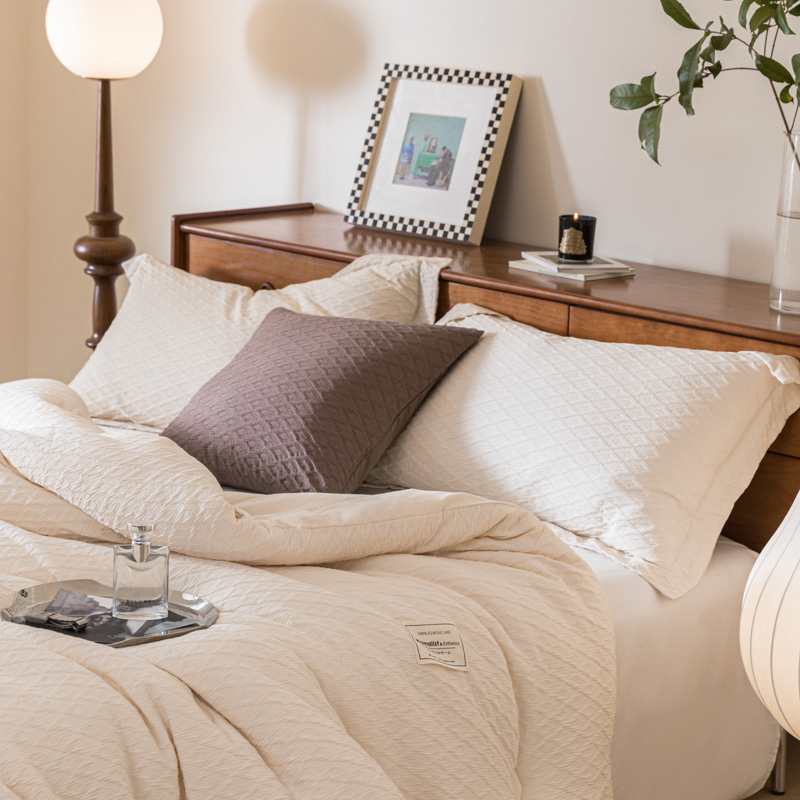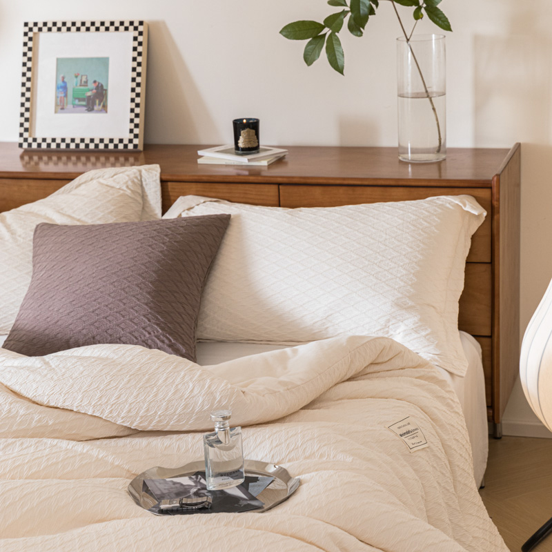 (总)上喜 2025新款六代砂洗床盖三件套+多功能夏被,高级灰,奶油白,奶油米,樱花粉,芋泥紫