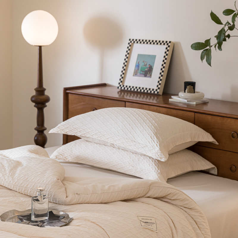 (总)上喜 2025新款全棉砂洗床盖新升级第五代,白色,湖蓝,奶油米,深灰,深咖