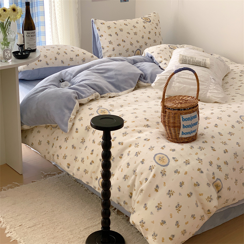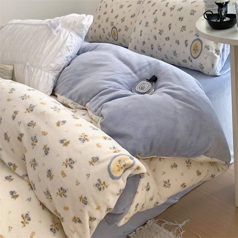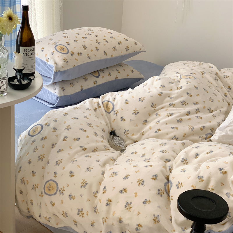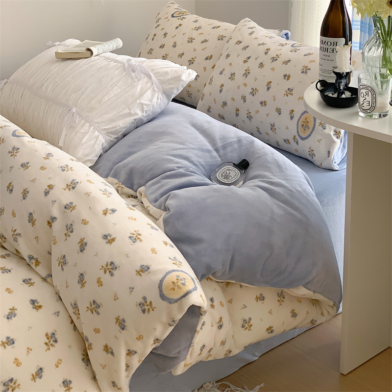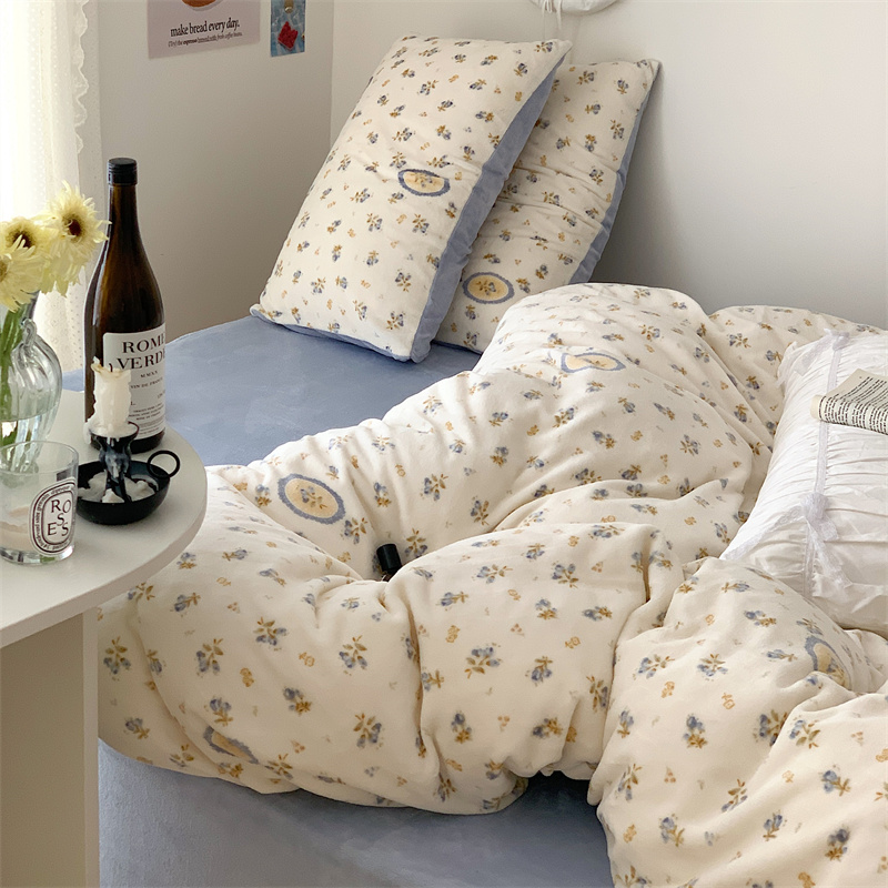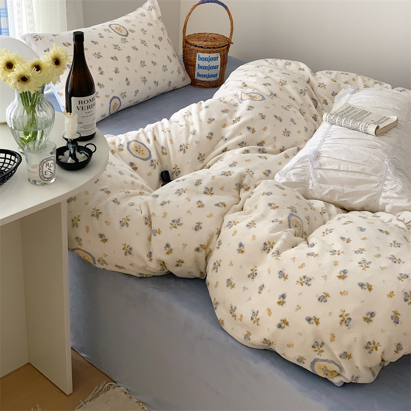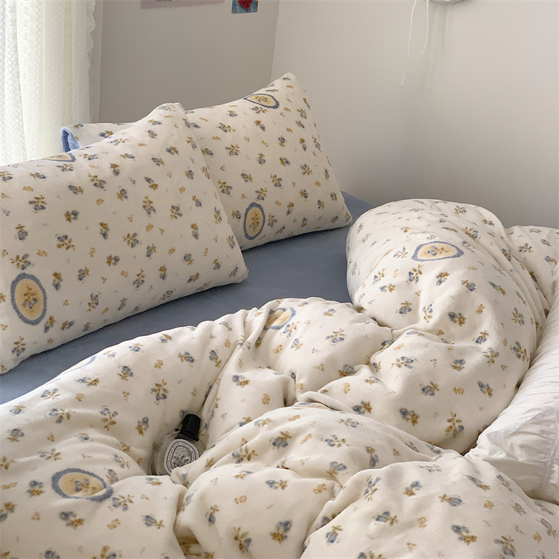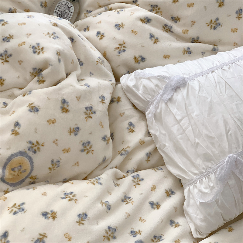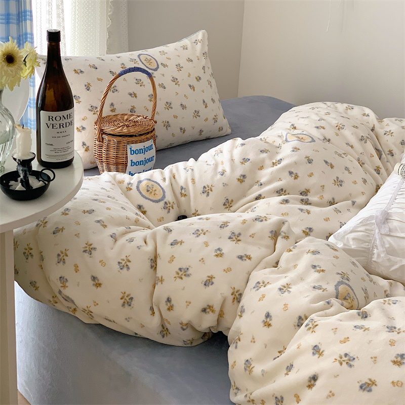 美乐迪家纺 2023秋冬新款保暖牛奶绒四件套 迷你小花