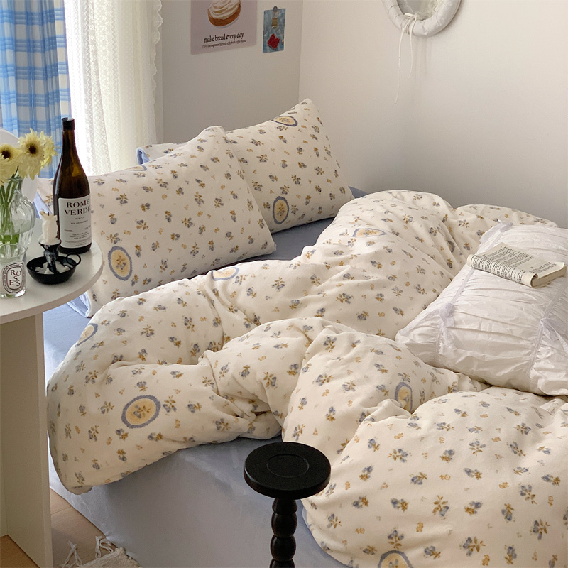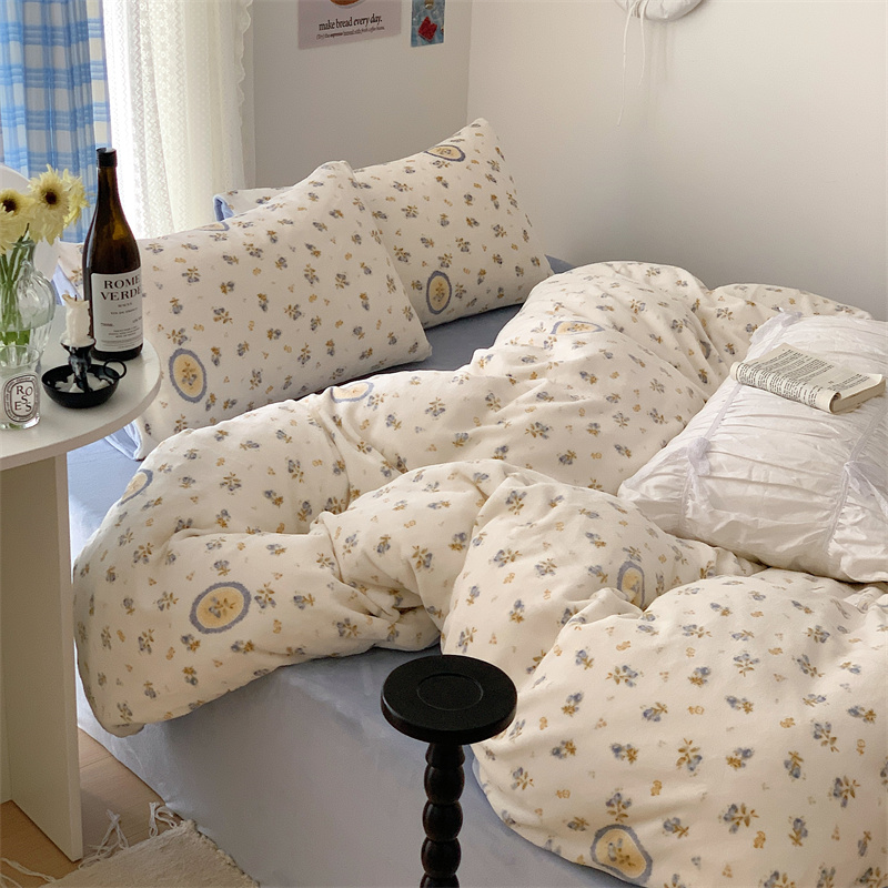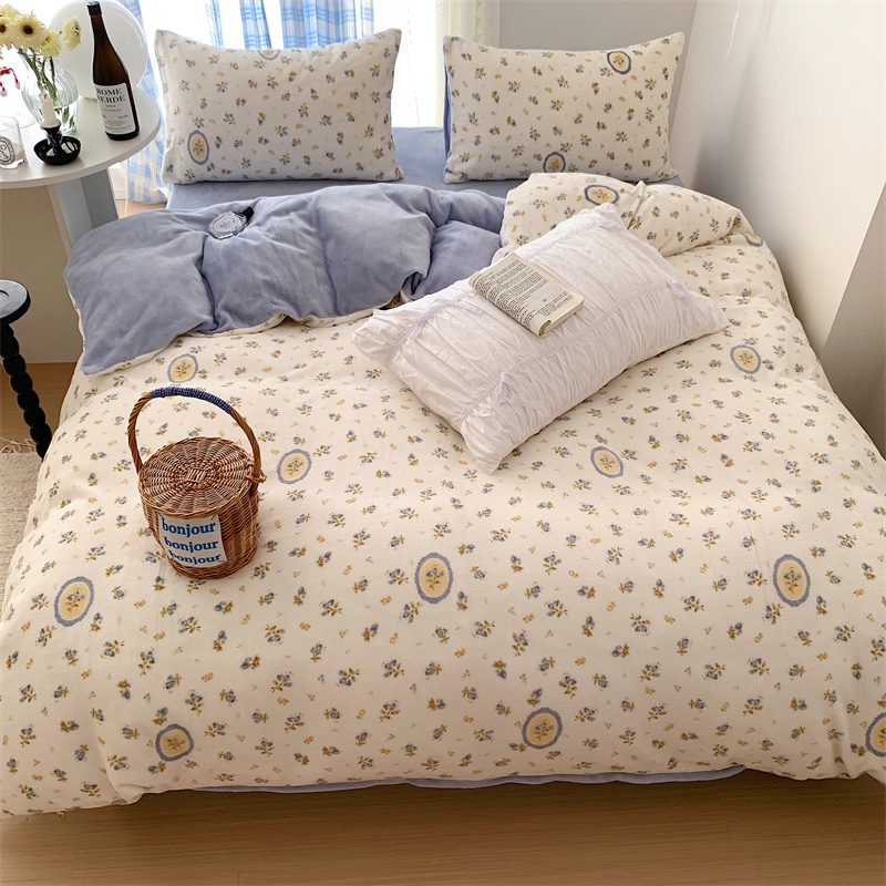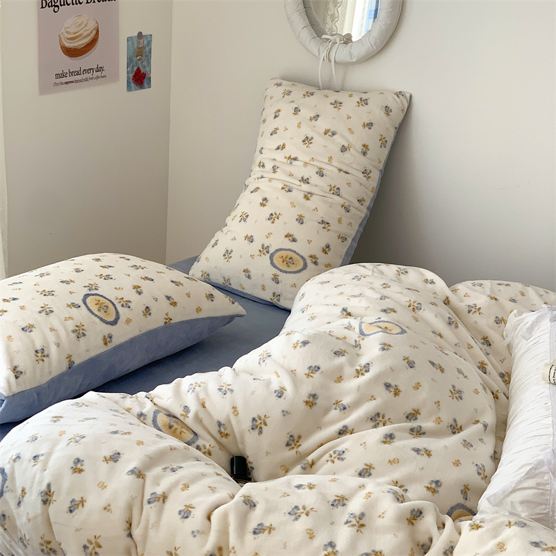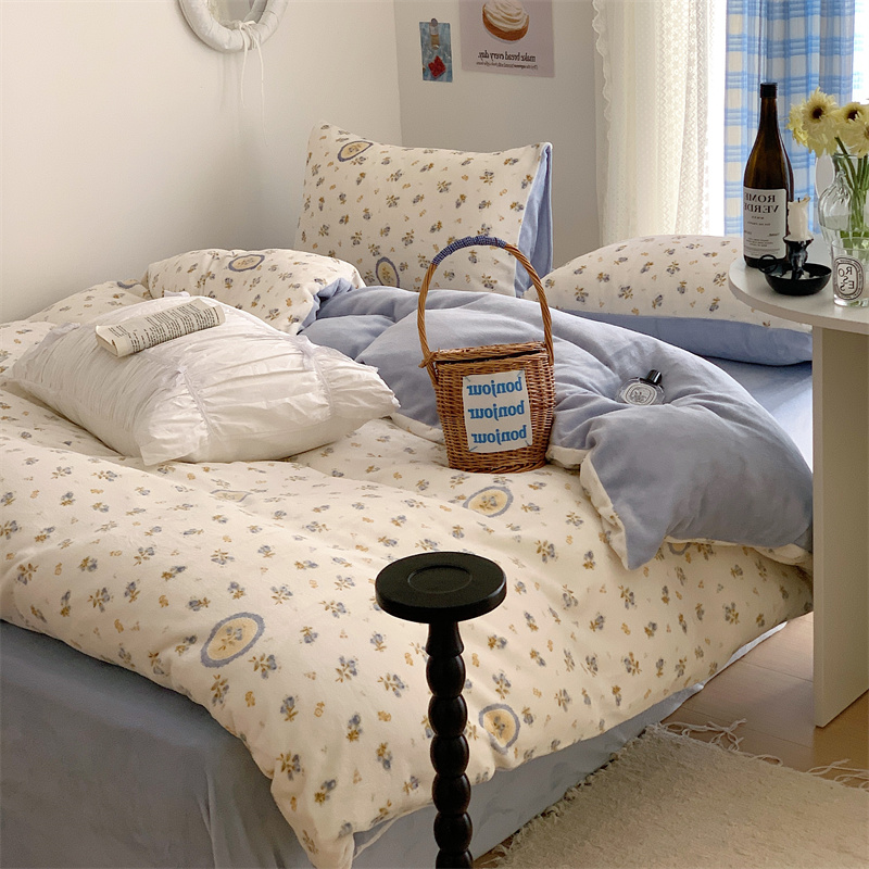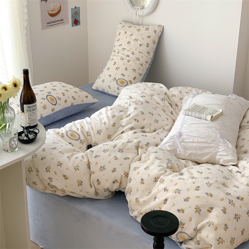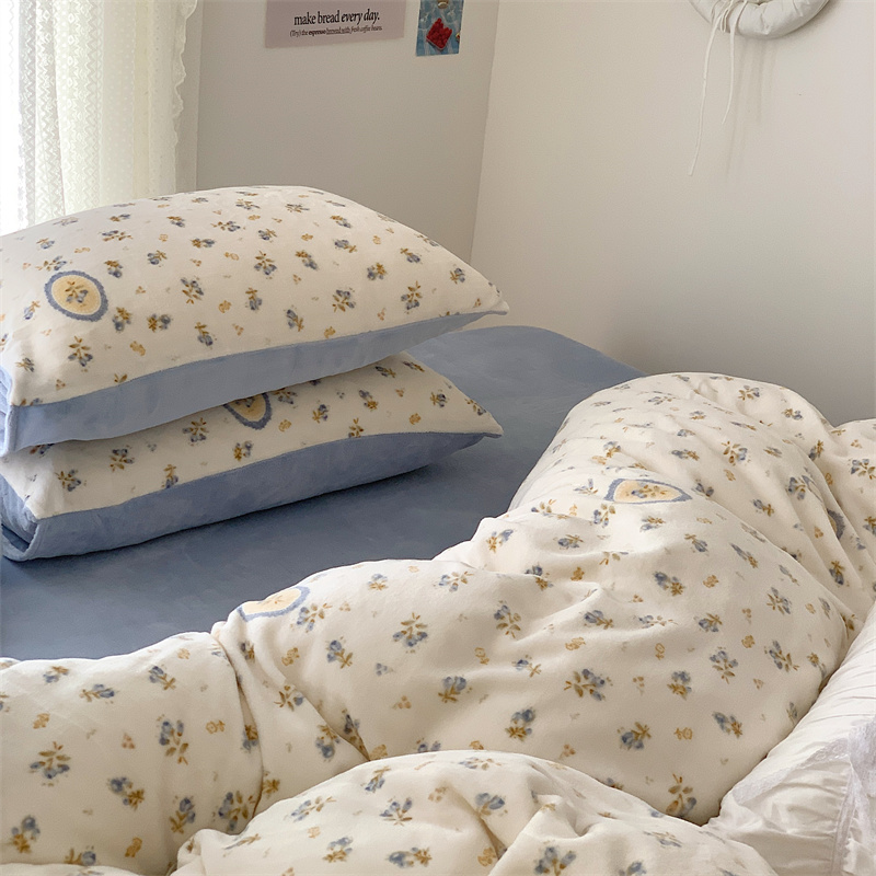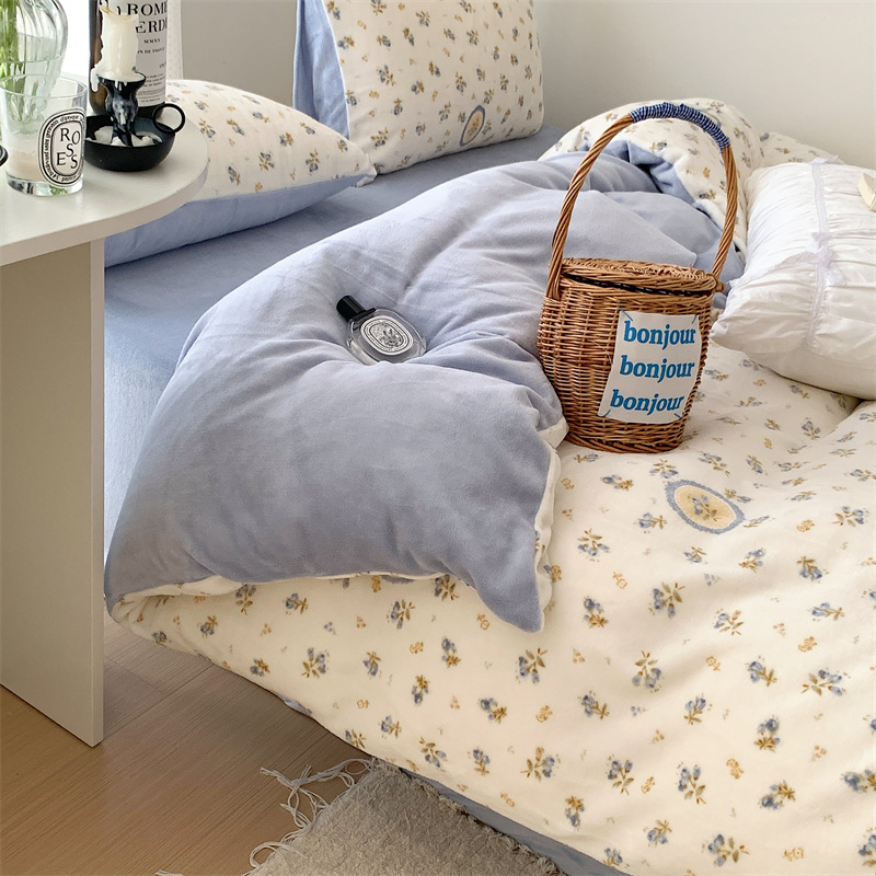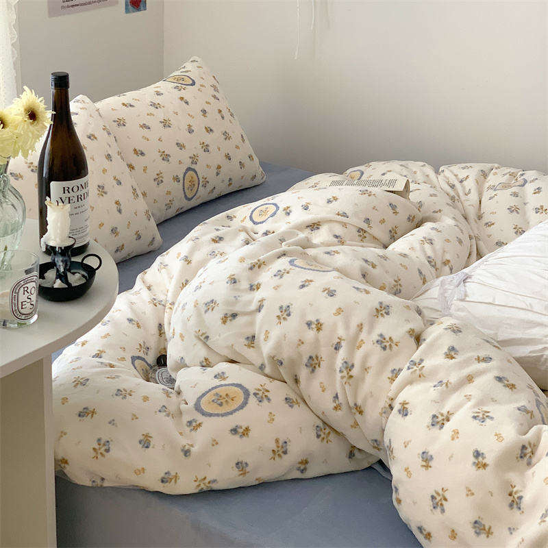 美乐迪家纺 2023秋冬新款保暖牛奶绒四件套 迷你小花