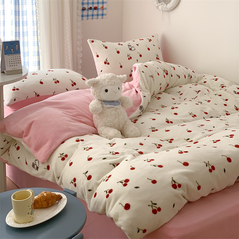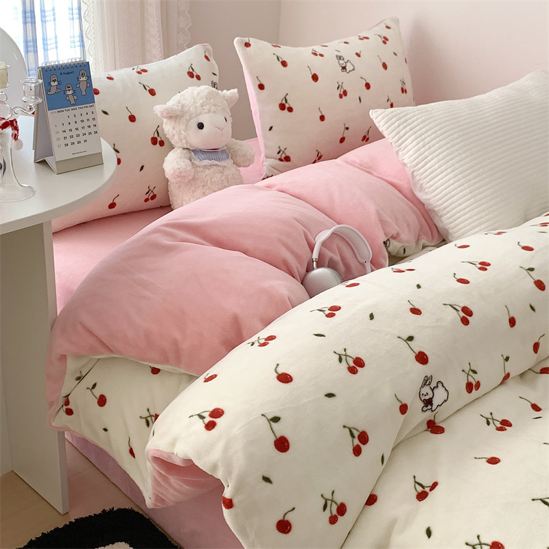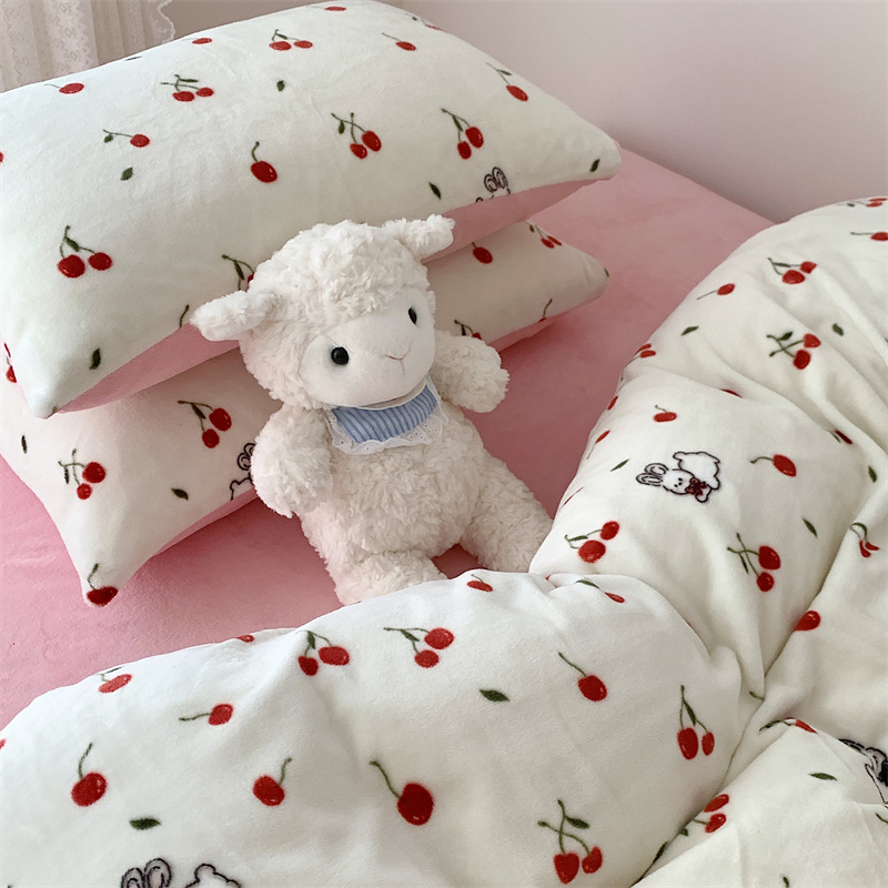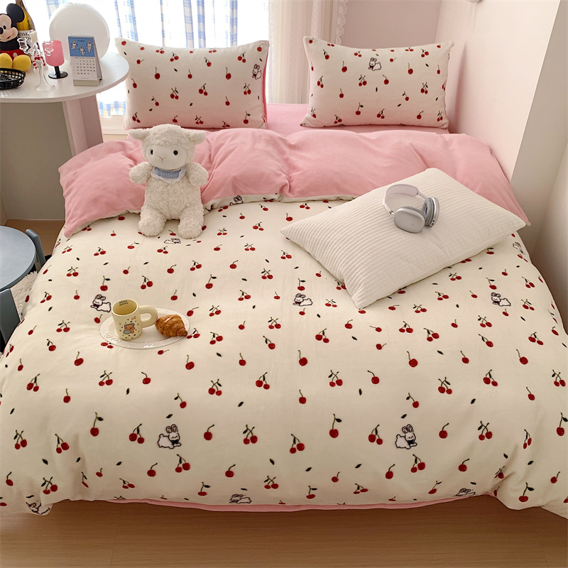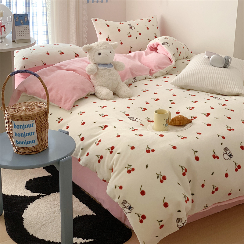 美乐迪家纺 2023秋冬新款保暖牛奶绒四件套 樱桃爱米