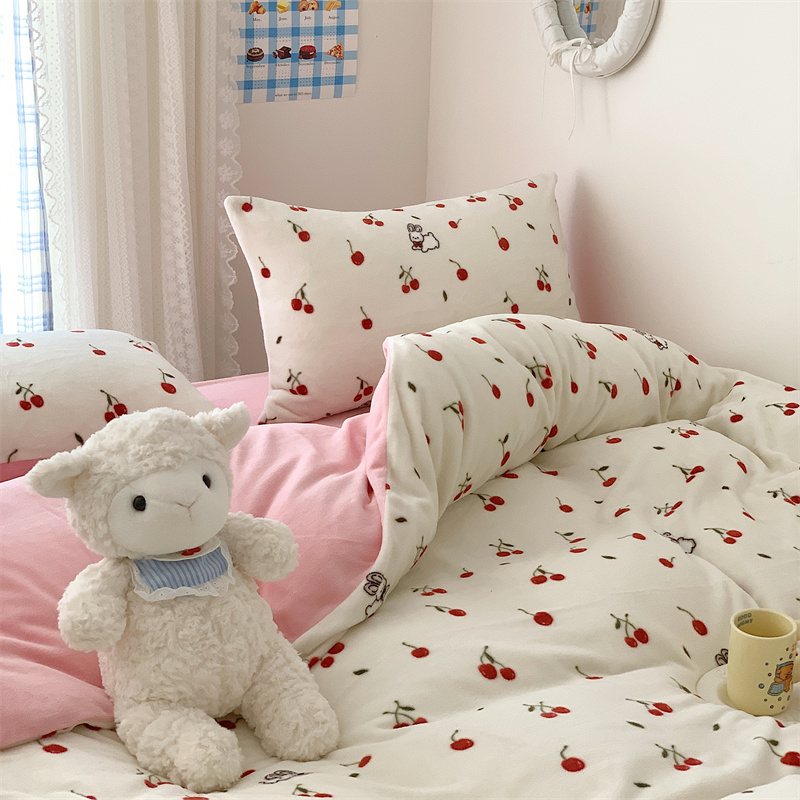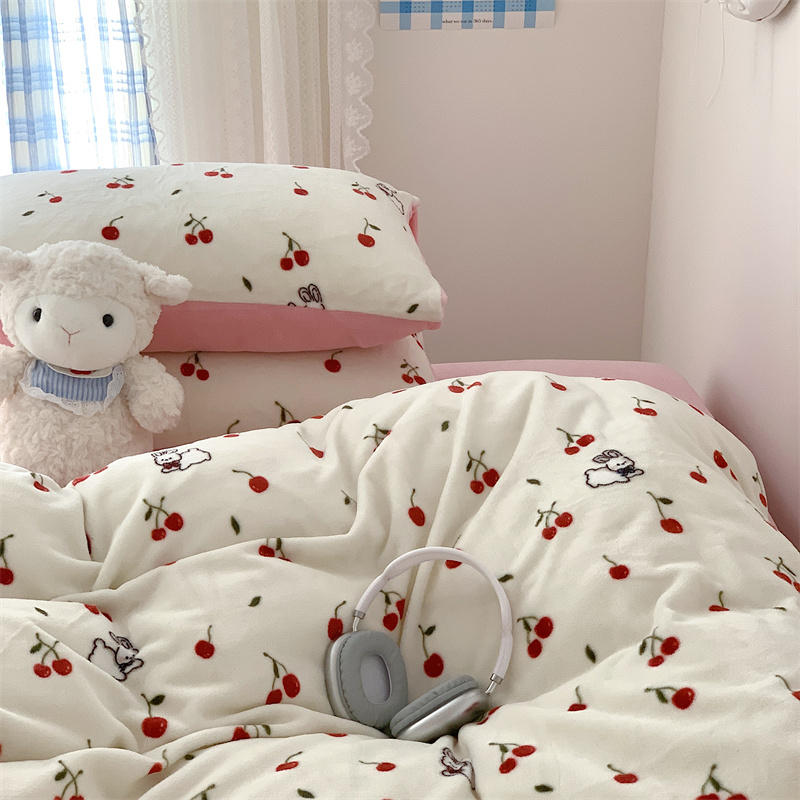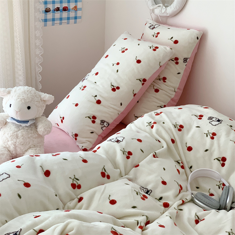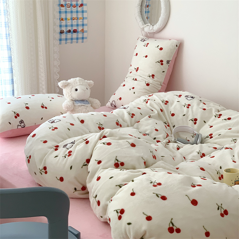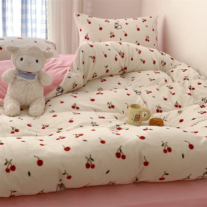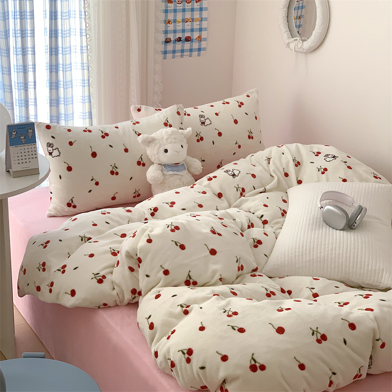 美乐迪家纺 2023秋冬新款保暖牛奶绒四件套 樱桃爱米