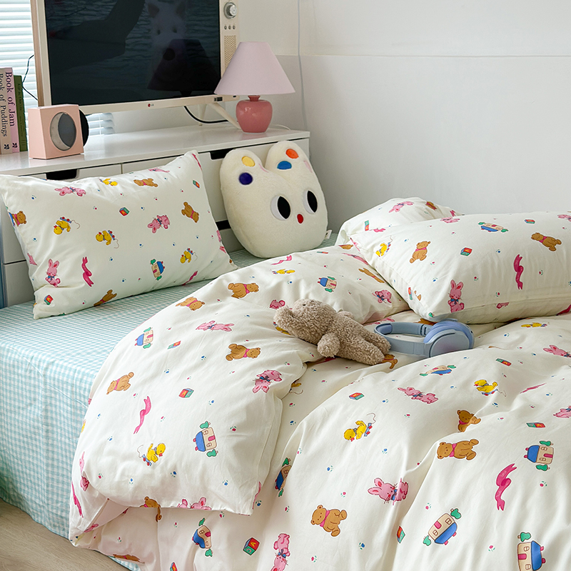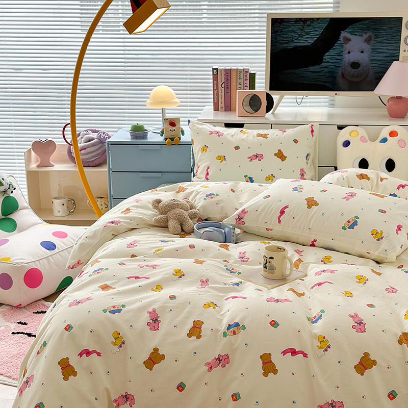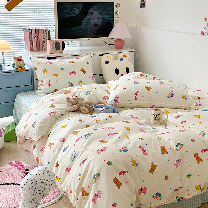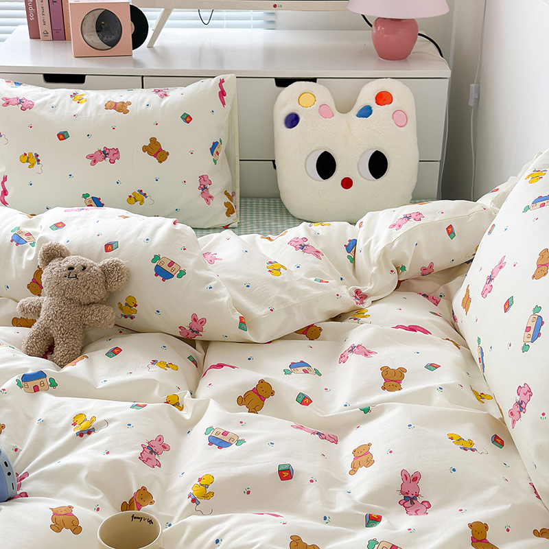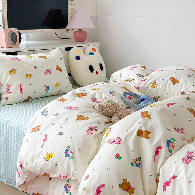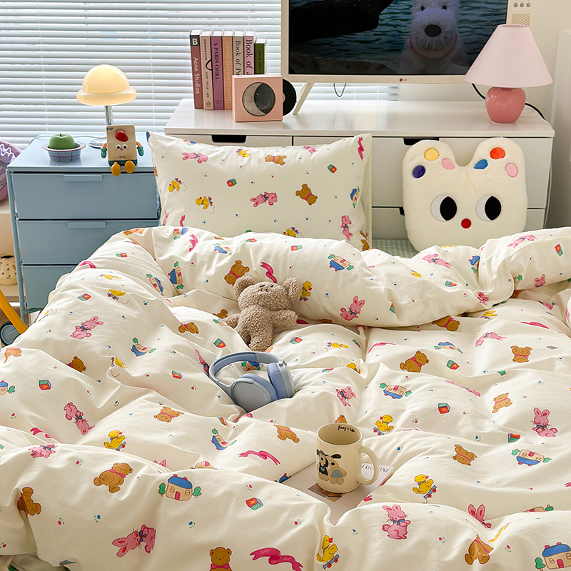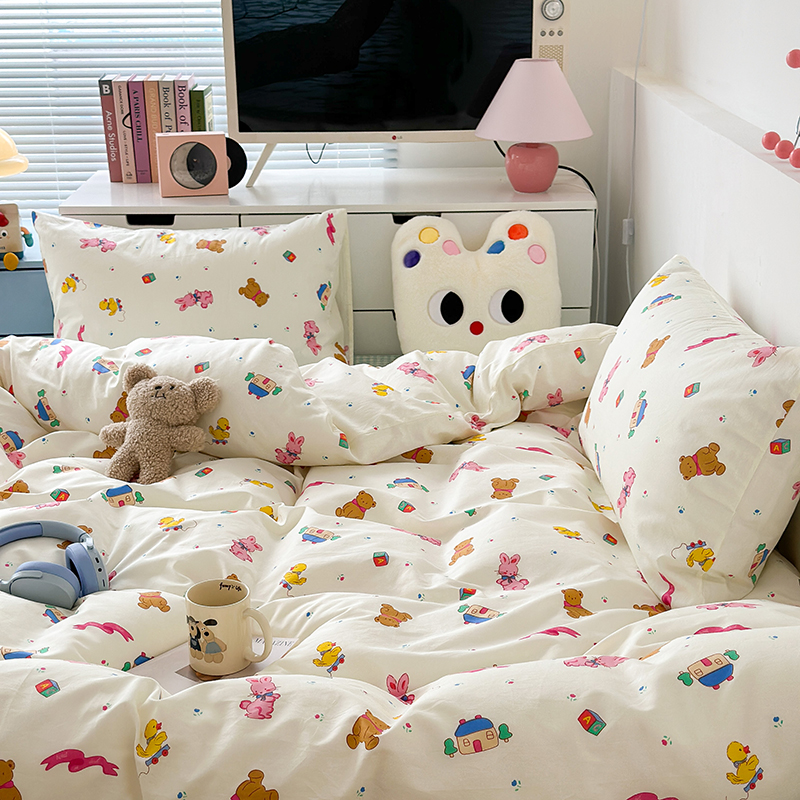 (总)昔可 2023新款学生季卡通普通款四件套,彩色气球熊,彩条恐龙,憨憨熊,花蜜小兔,蘑菇兔,圈圈草莓,蔬菜小兔,郁金香小萌狗