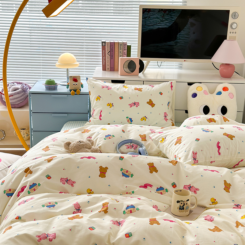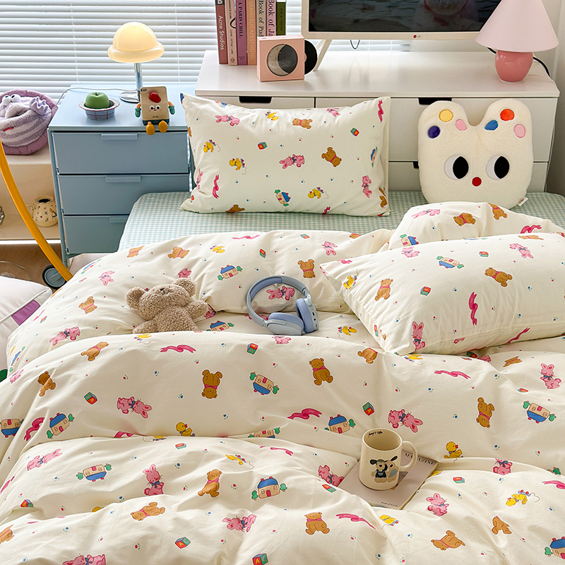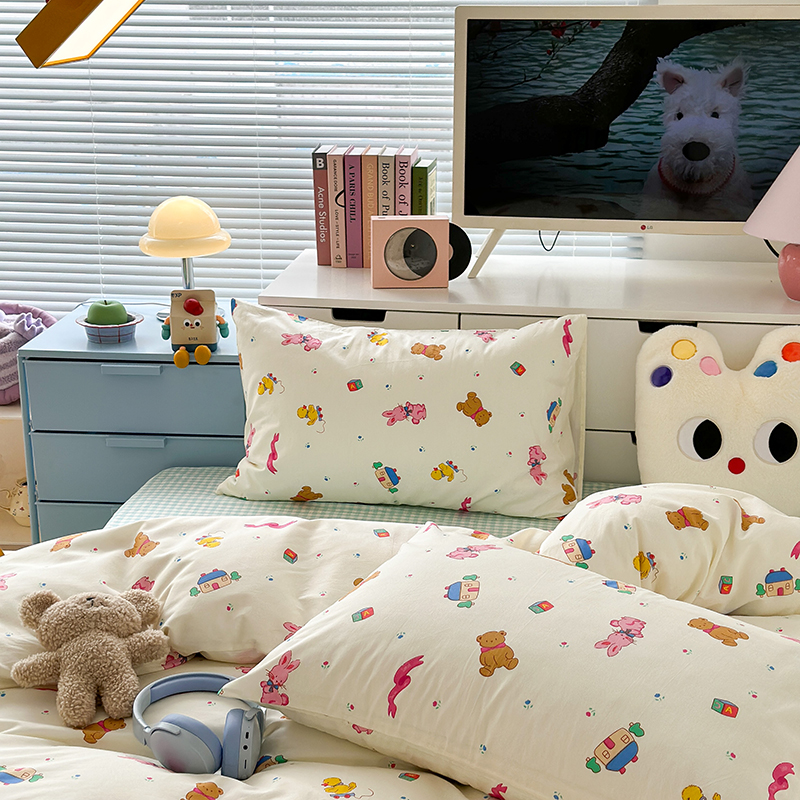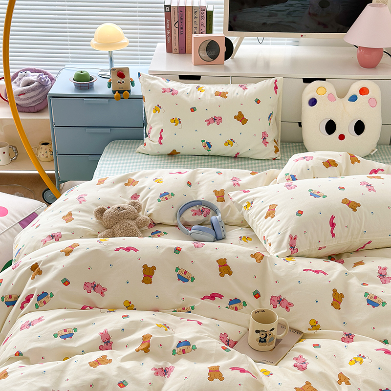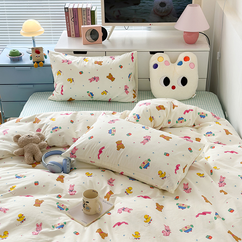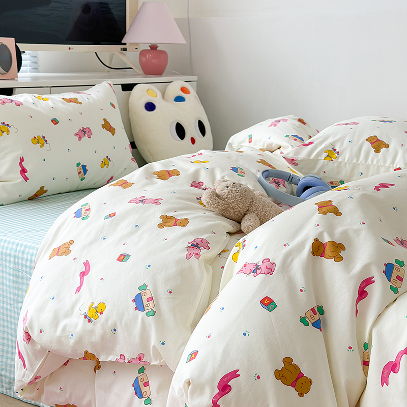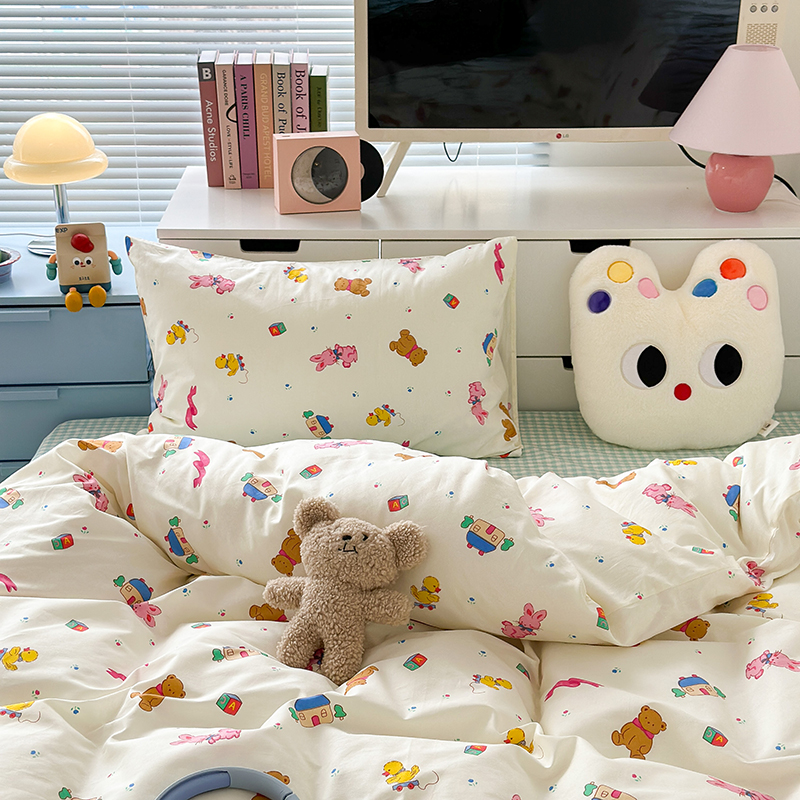 (总)昔可 2023新款学生季卡通普通款四件套,彩色气球熊,彩条恐龙,憨憨熊,花蜜小兔,蘑菇兔,圈圈草莓,蔬菜小兔,郁金香小萌狗
