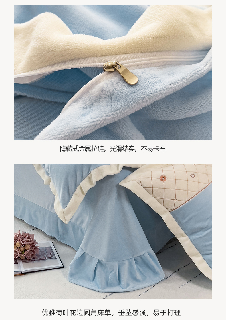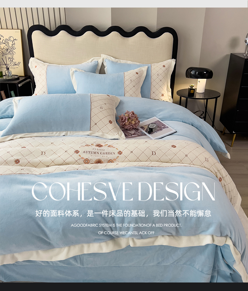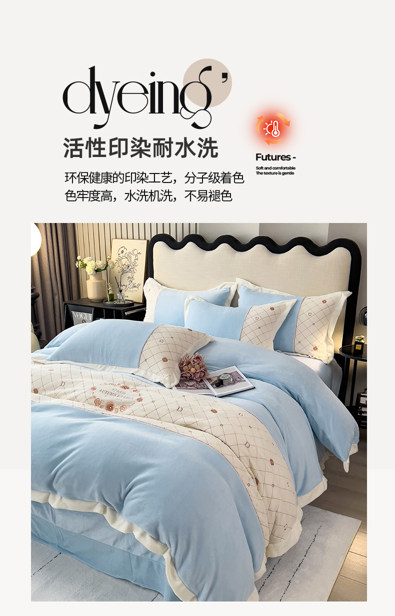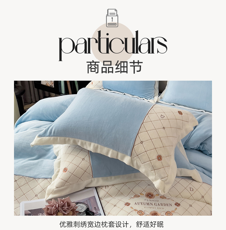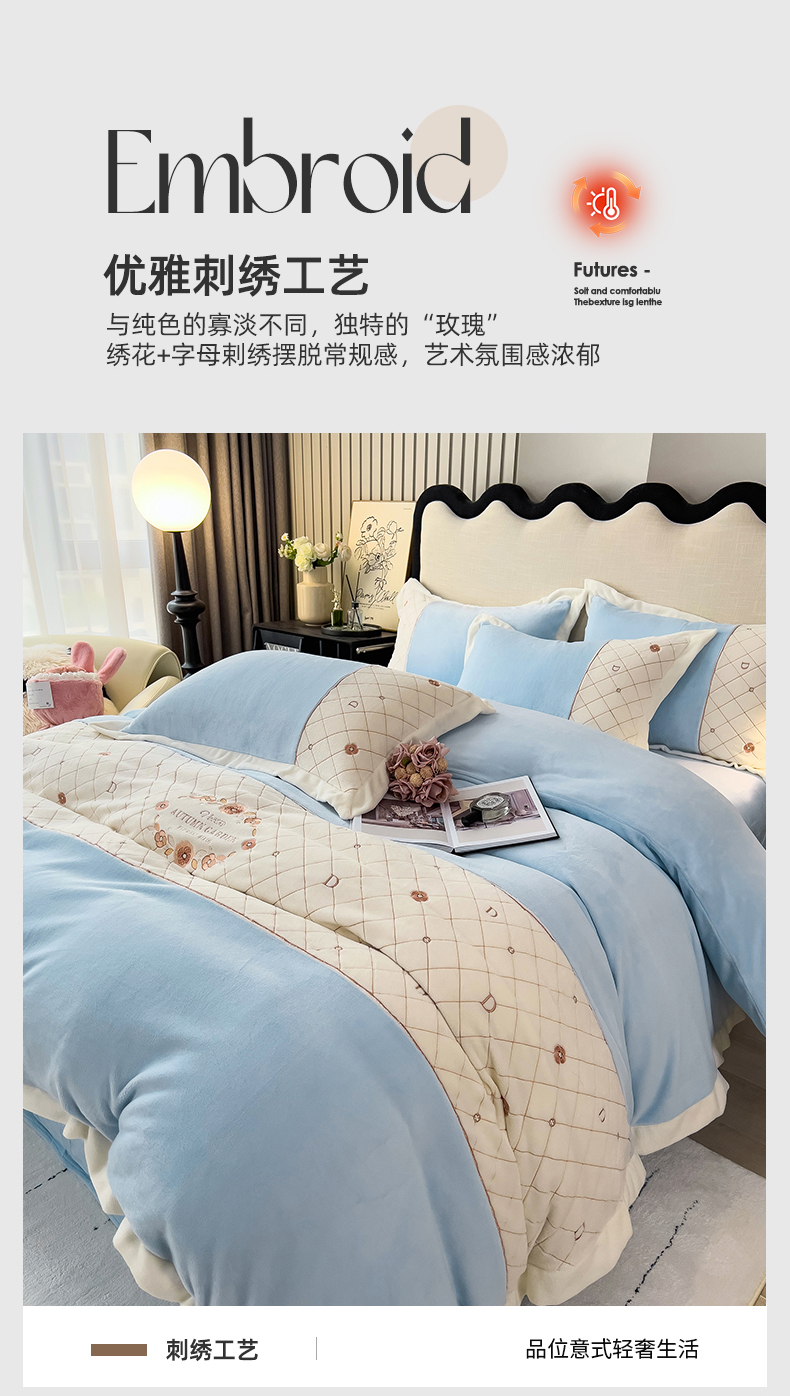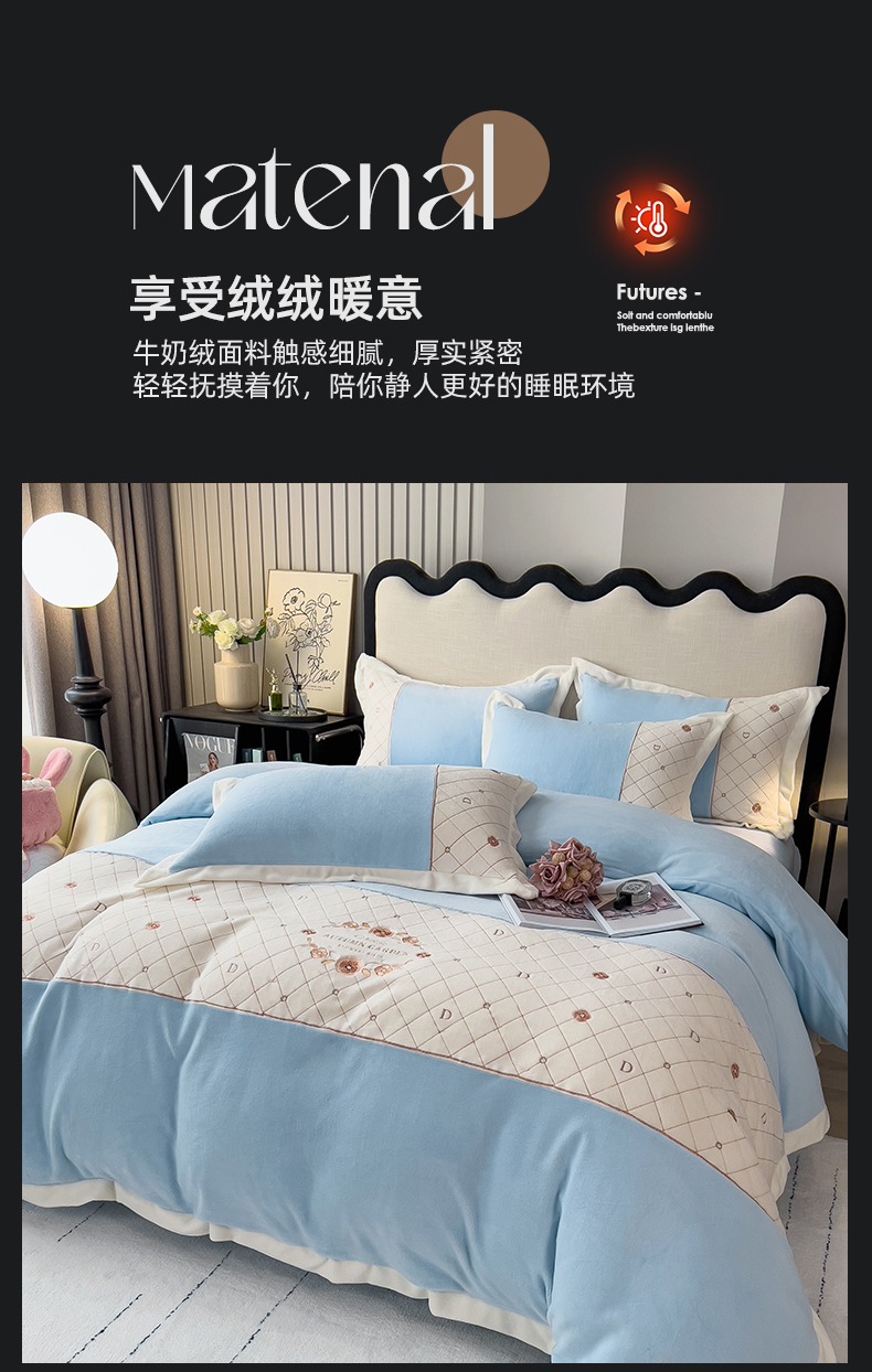 商品名称:丝印良品 2023秋冬高端刺绣菲曼牛奶绒四件套 菲曼-天空蓝