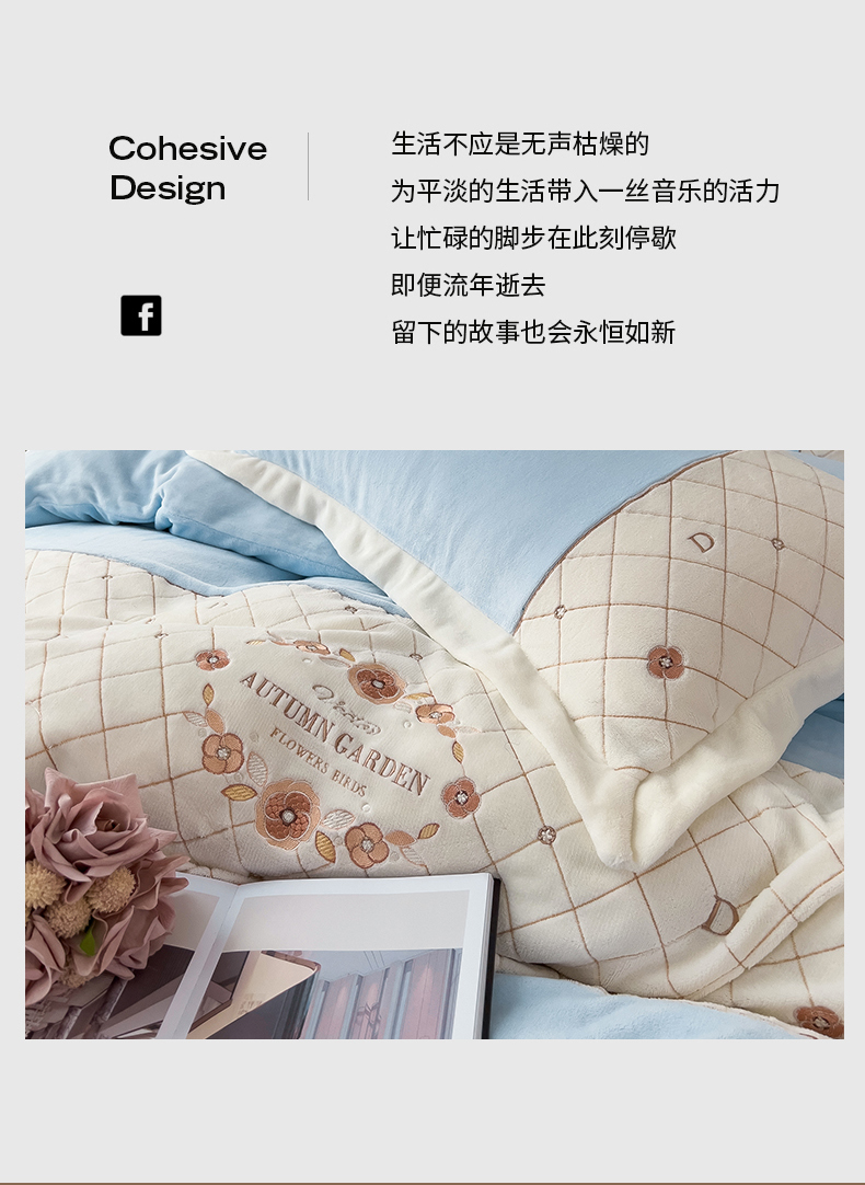 丝印良品 2023秋冬高端刺绣菲曼牛奶绒四件套 菲曼-天空蓝