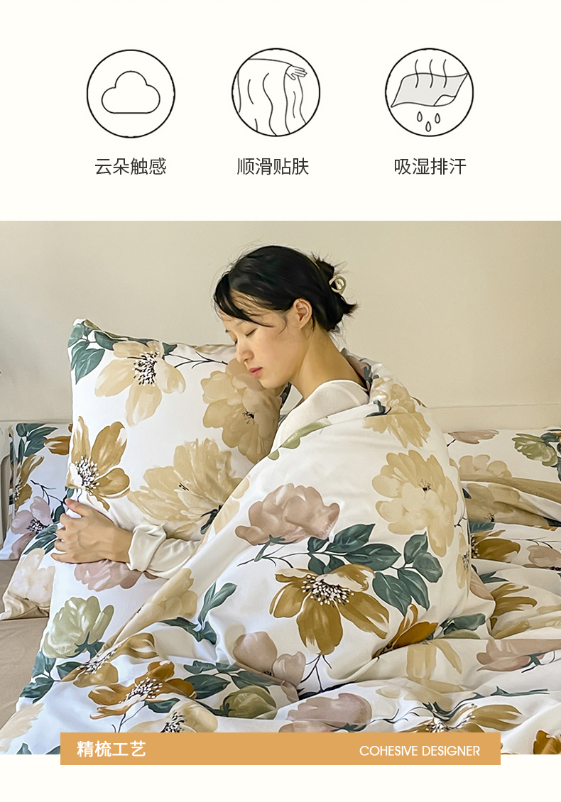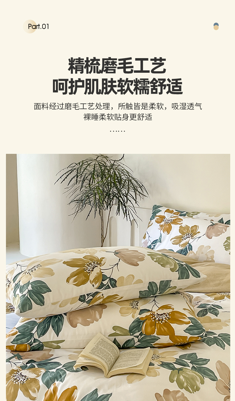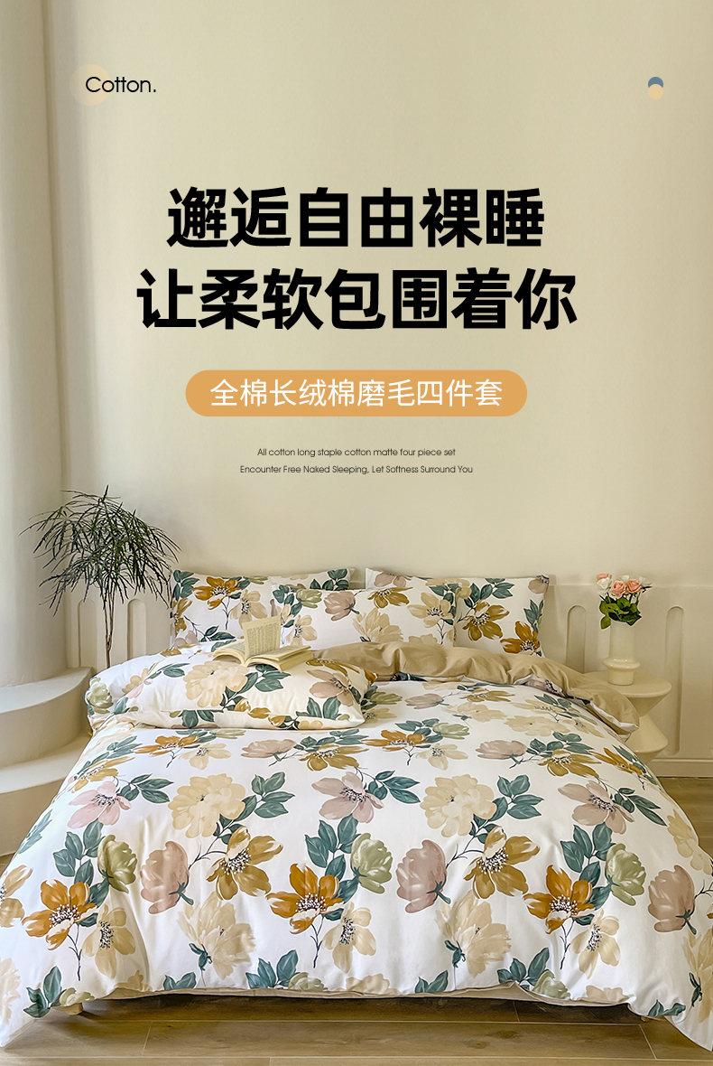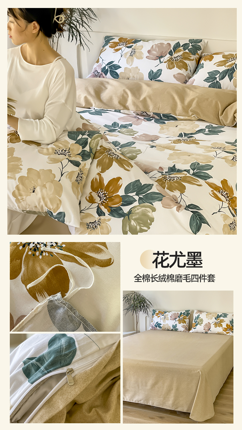 • 91家纺网 家纺一手货源 找家纺 首爱家纺 2025新款全棉长绒棉磨毛四件套 花尤墨