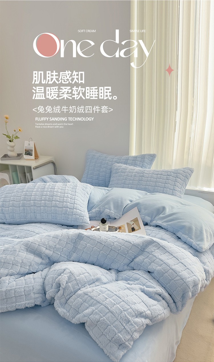 商品名称:欧冠 2023秋冬320克兔兔绒四件套 天空蓝
