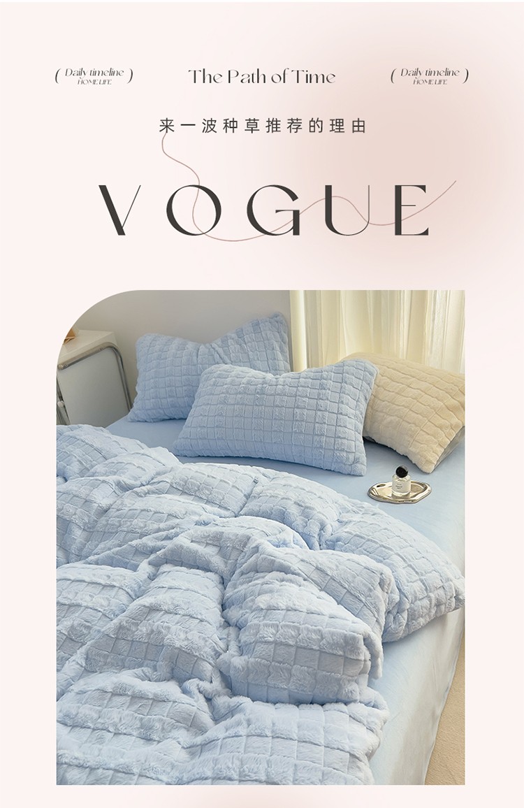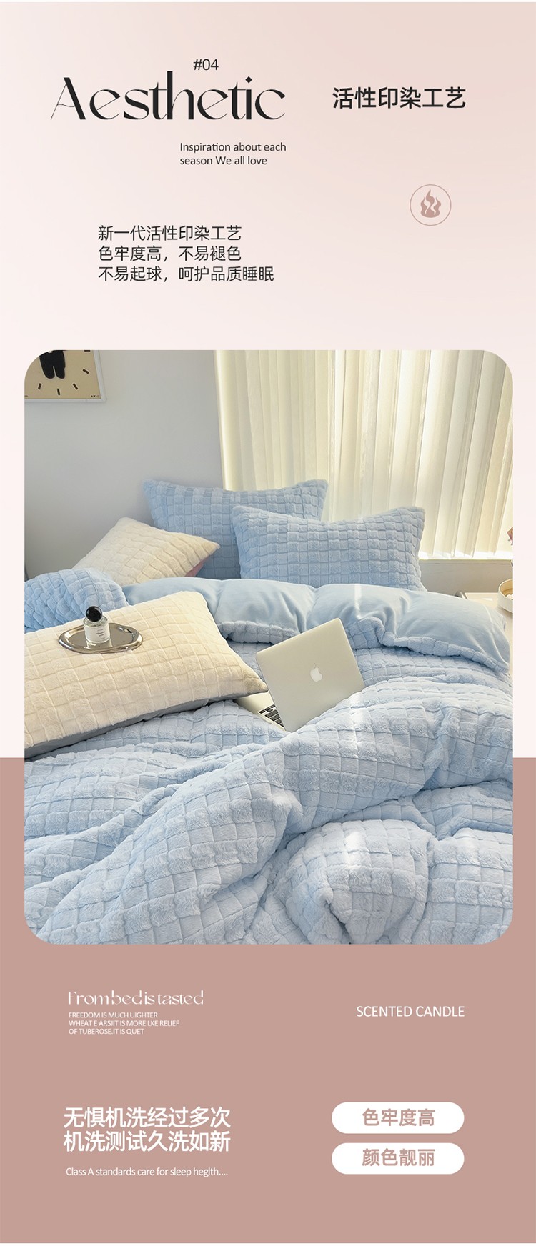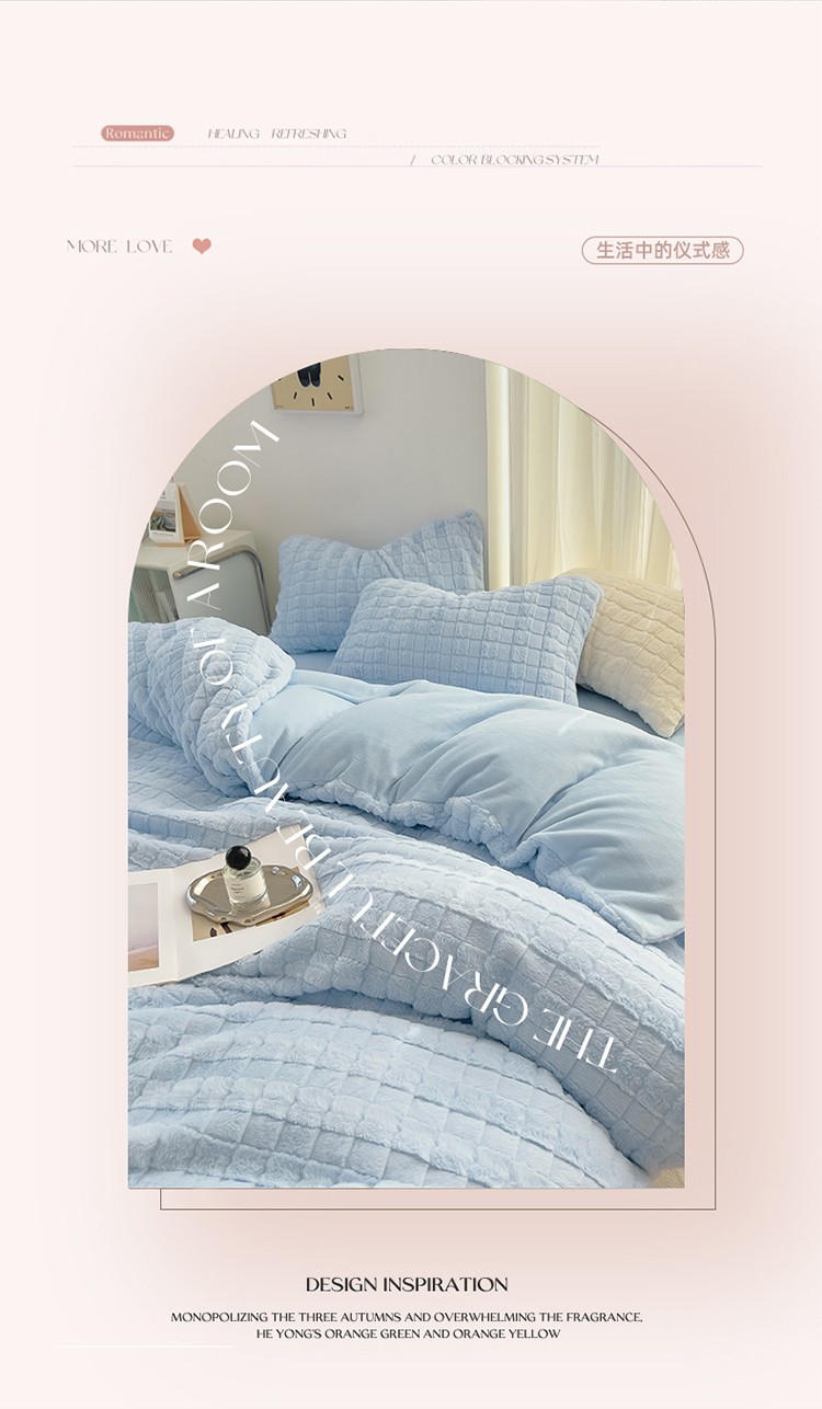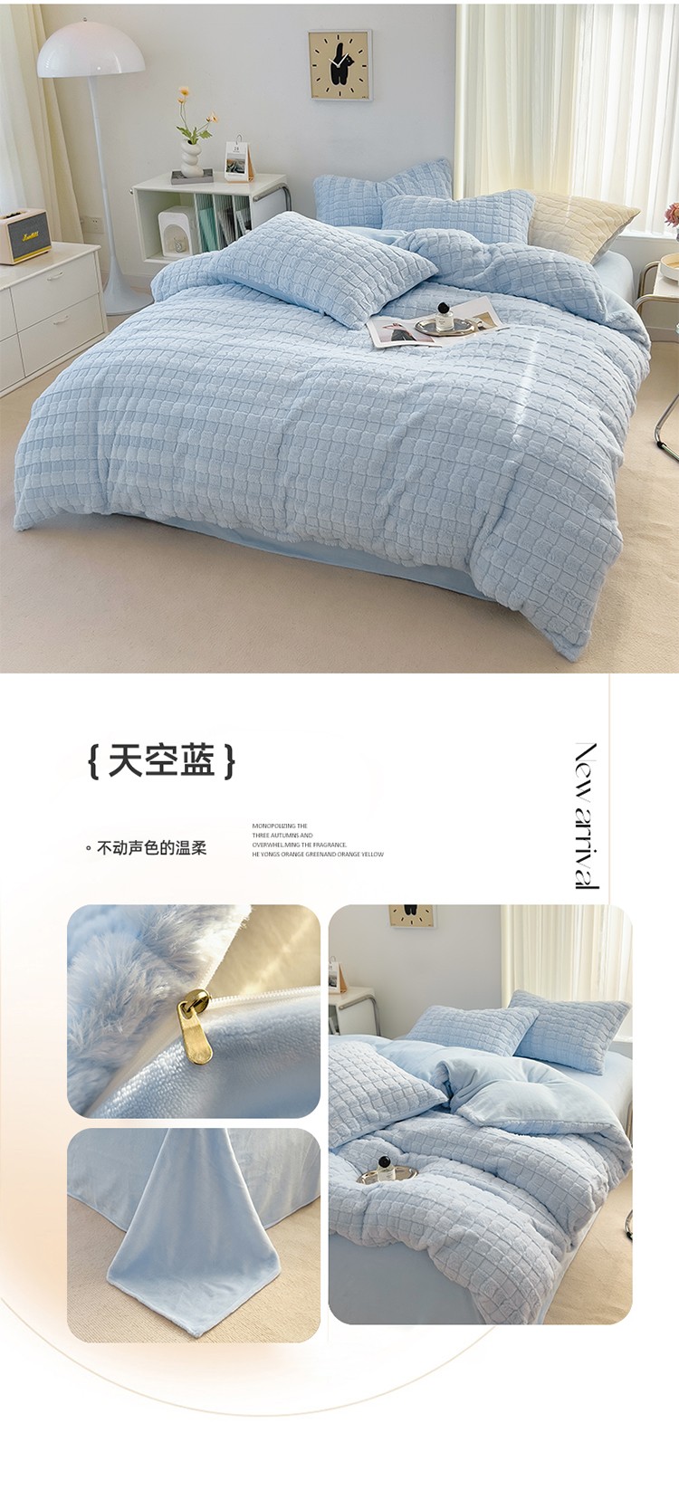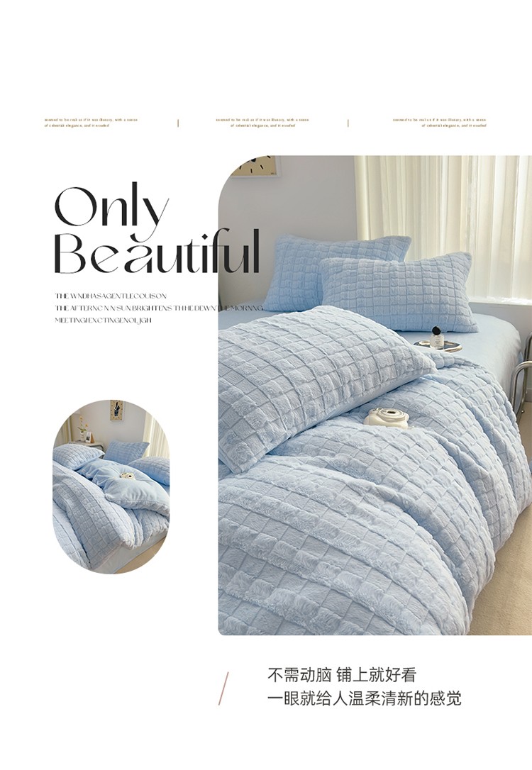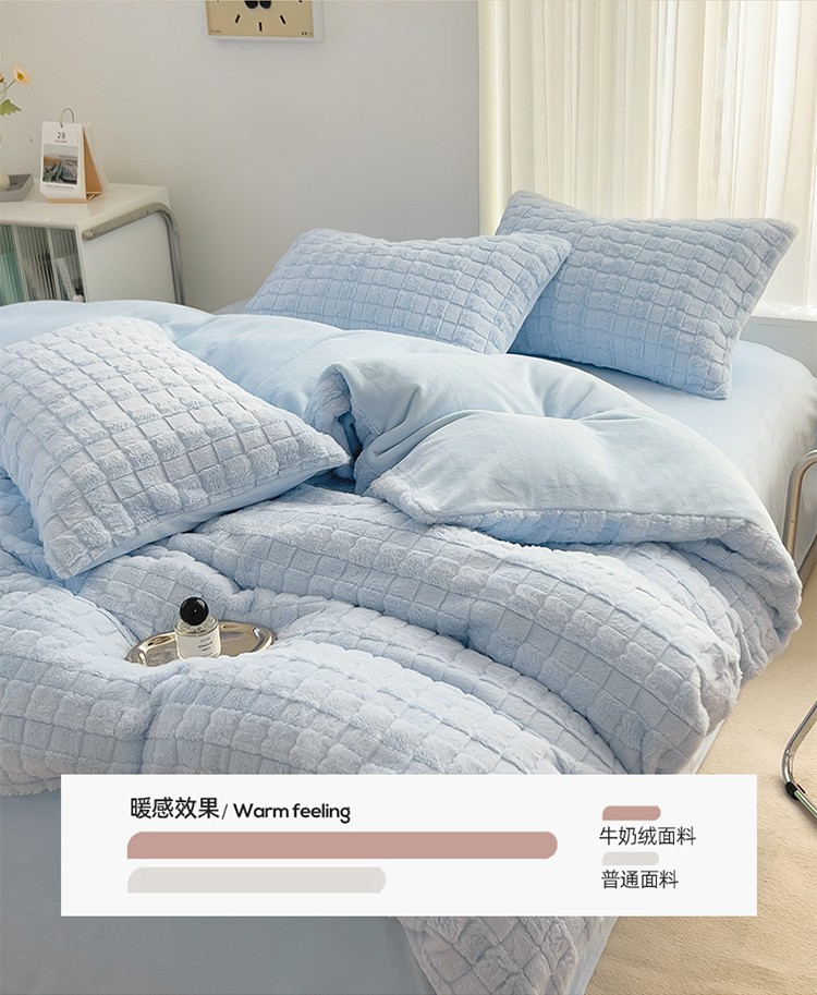 欧冠 2023秋冬320克兔兔绒四件套 天空蓝