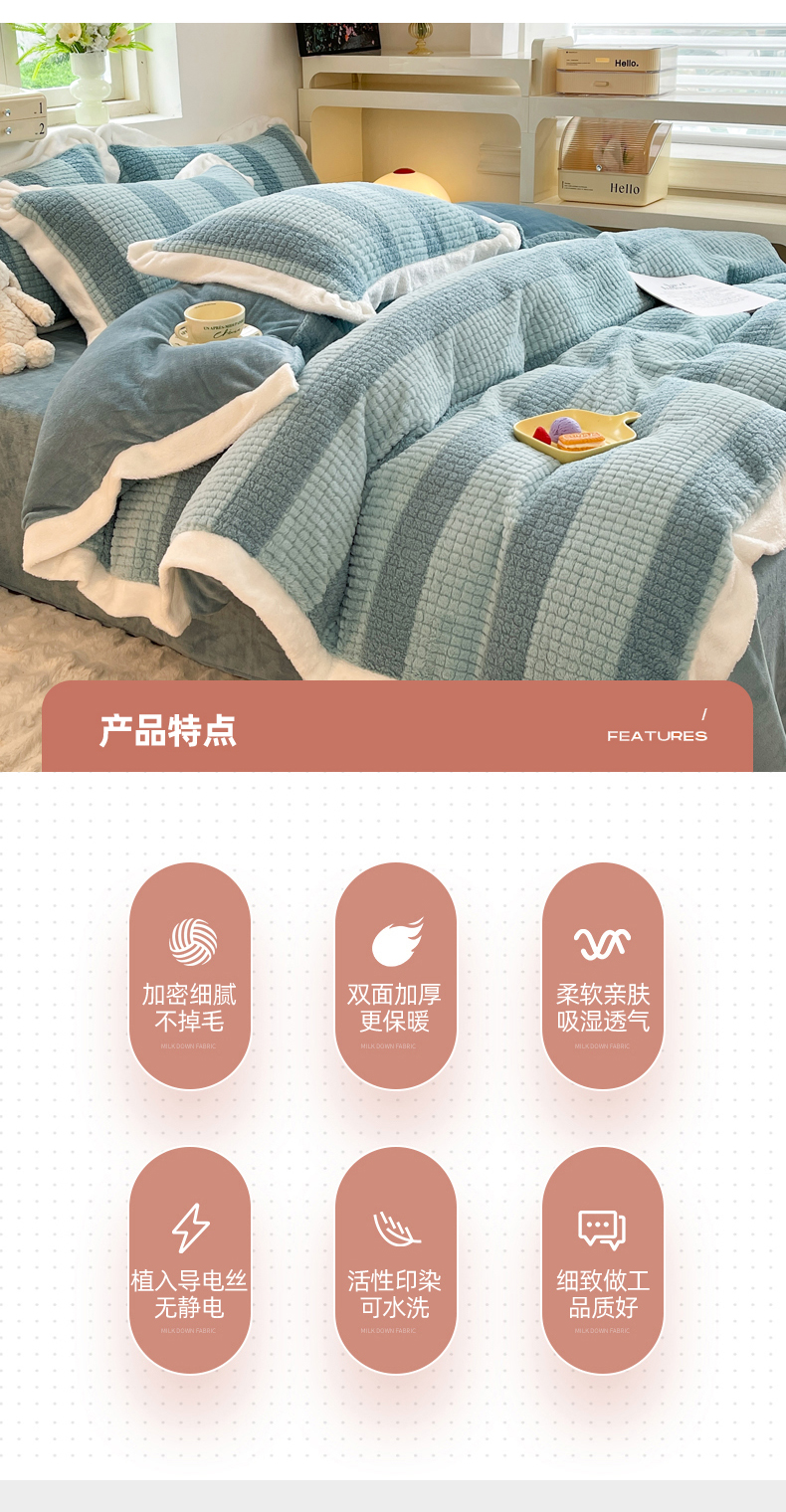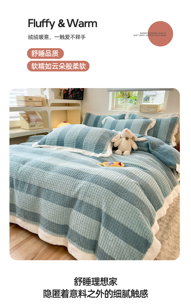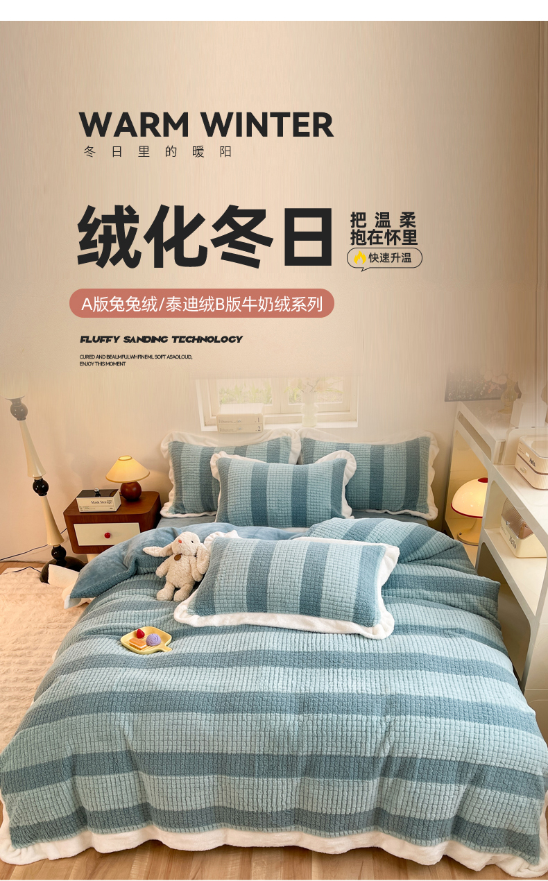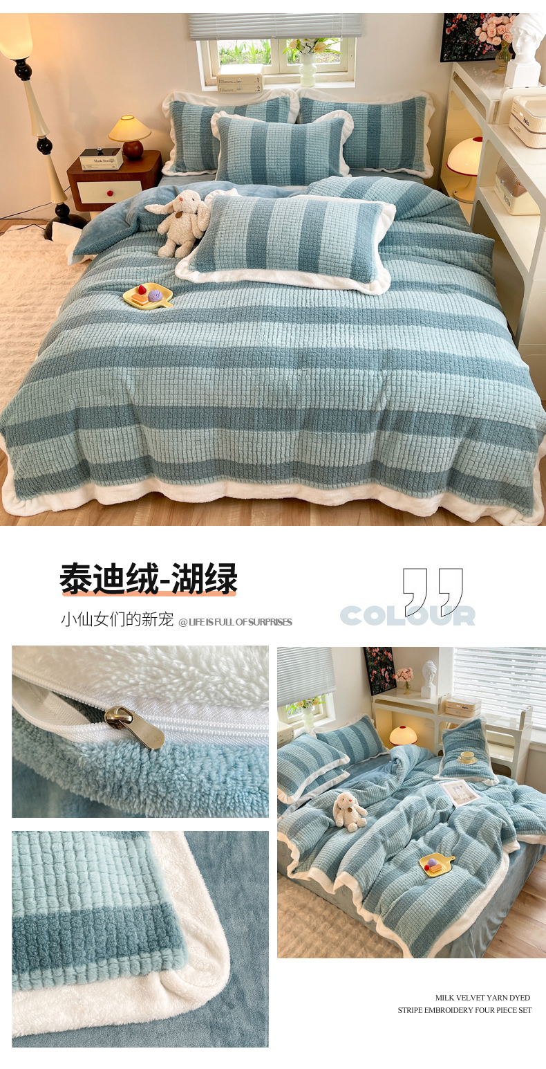 商品名称:丝印良品 2023新款泰迪绒兔绒牛奶绒四件套 泰迪绒-湖绿
