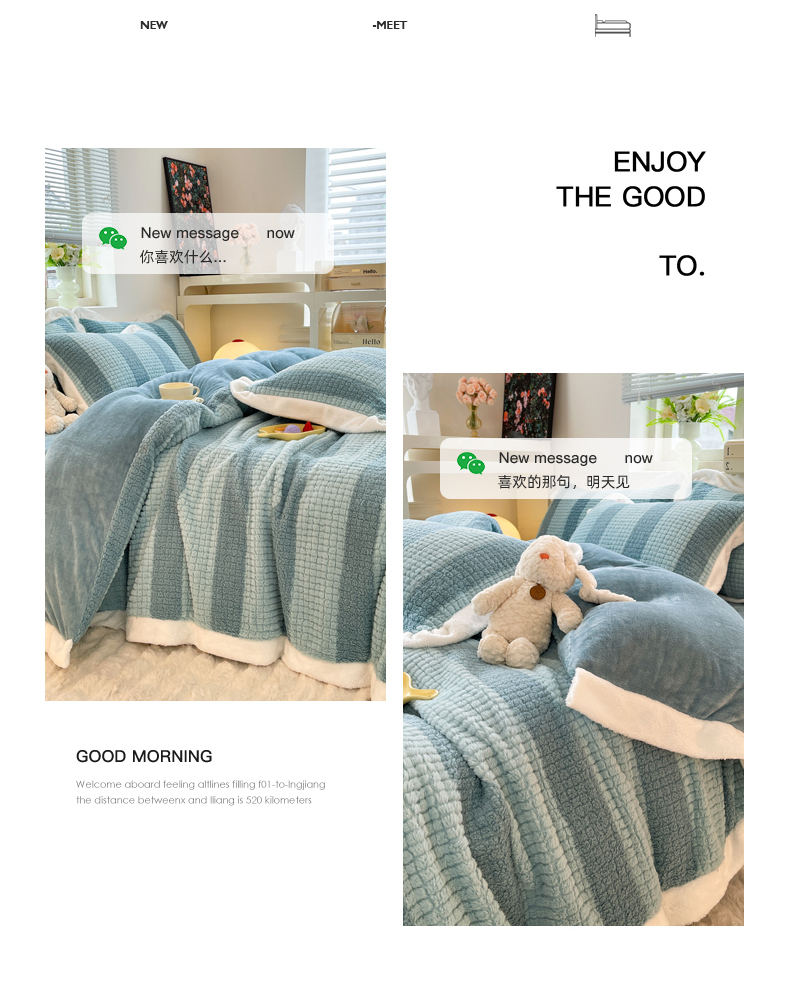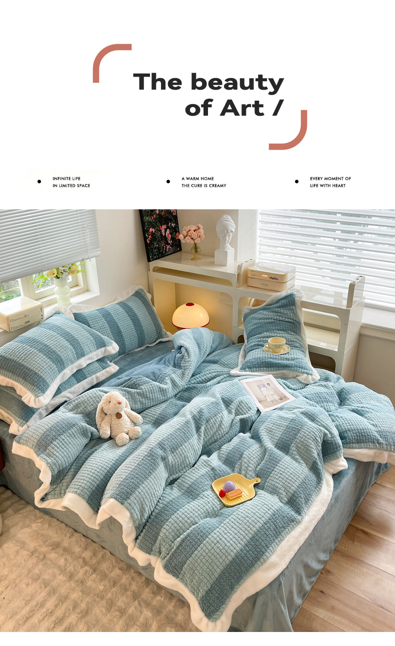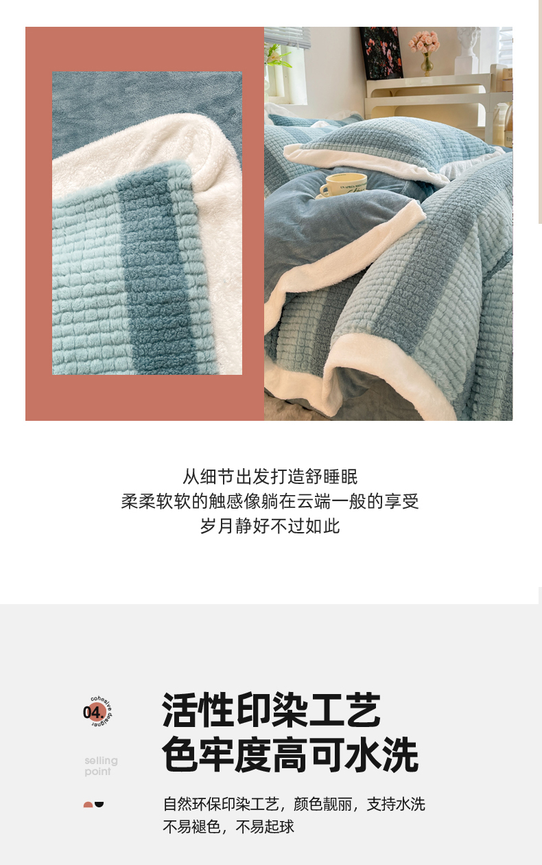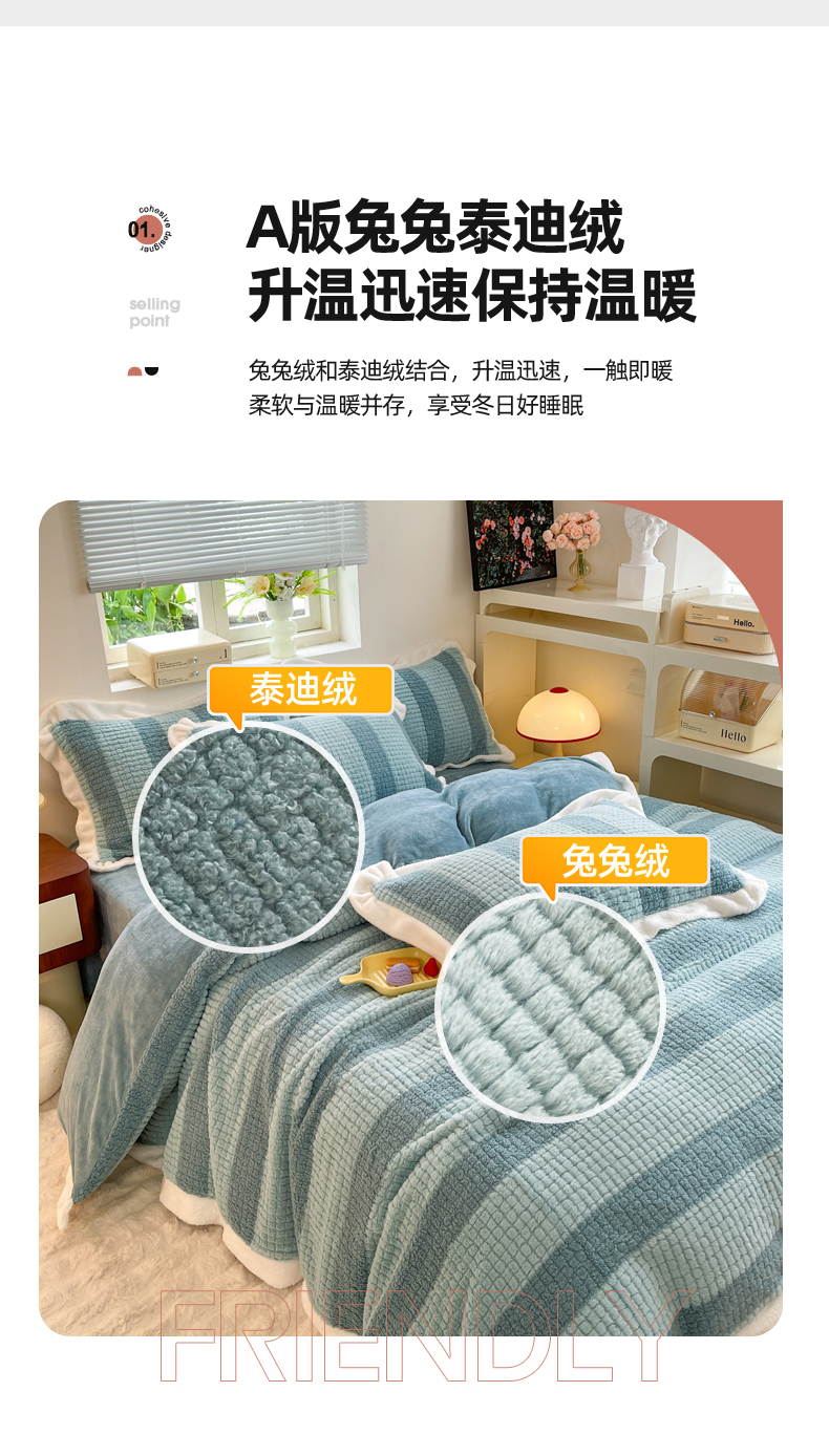 商品名称:丝印良品 2023新款泰迪绒兔绒牛奶绒四件套 泰迪绒-湖绿