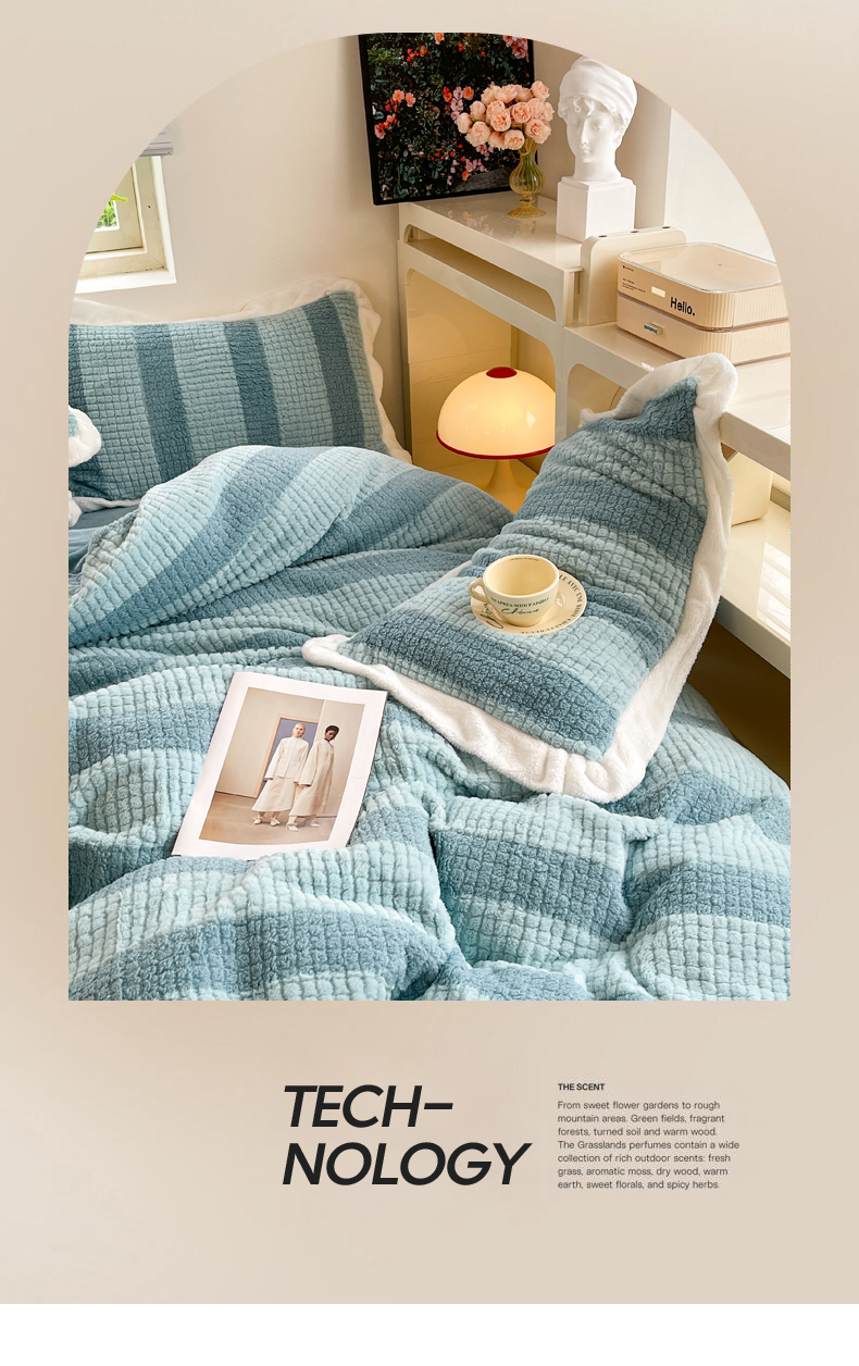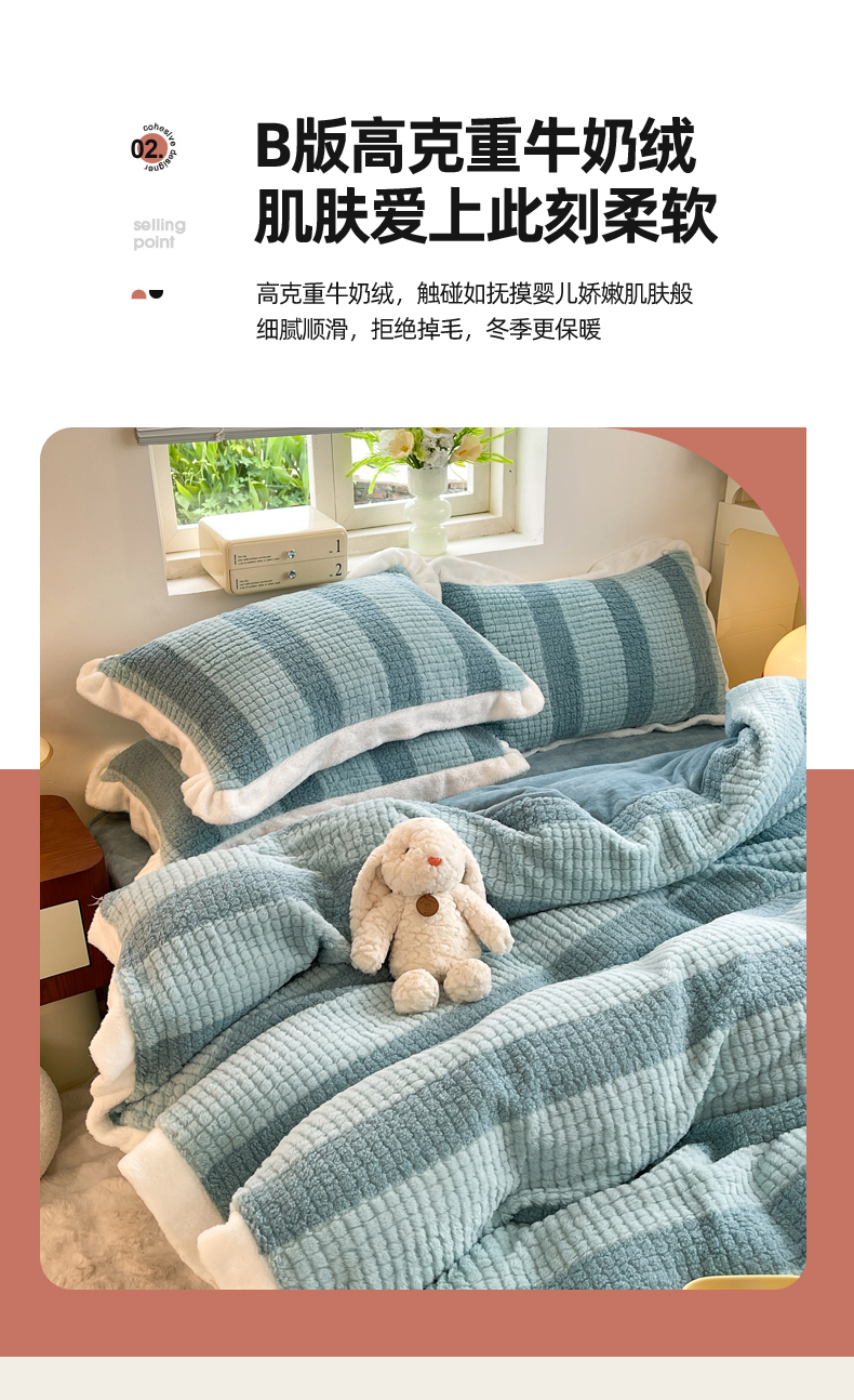 (总)丝印良品 2025新款条纹兔毛绒牛奶绒四件套,魔幻黑,卡其,墨绿,森林绿,雪灰,棕灰