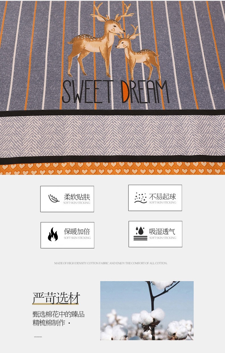 商品名称:晶缦家纺 2023新款典雅系全棉活性磨毛多规格单品四件套--床单 一鹿相伴