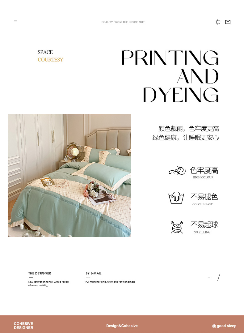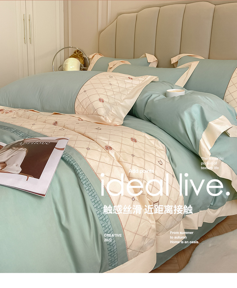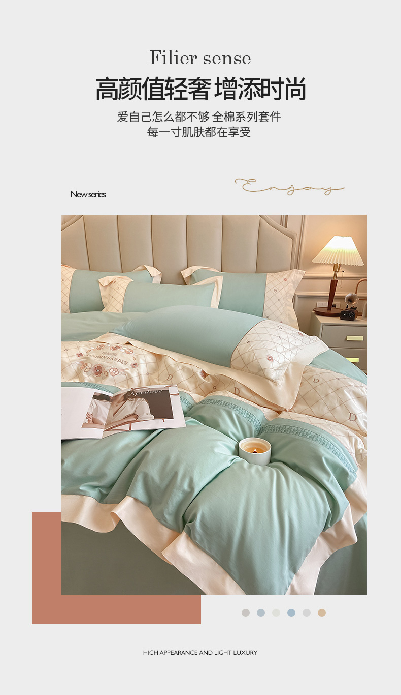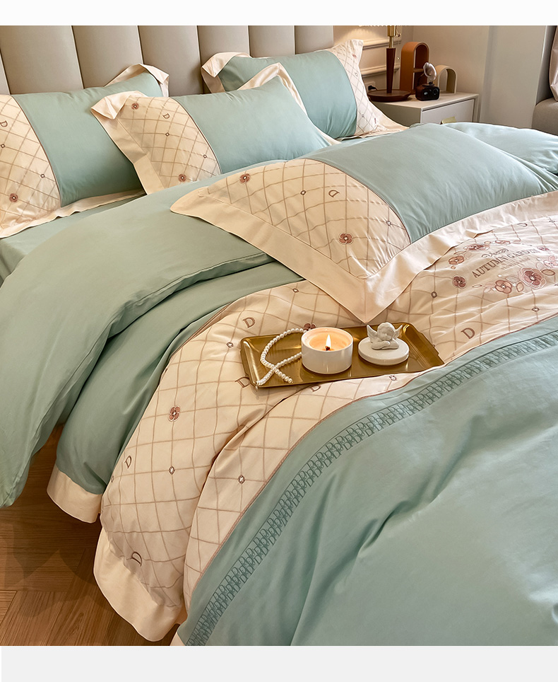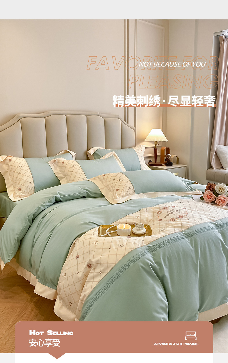 丝印良品 2023秋冬保暖60S全棉刺绣拼接菲曼系列四件套 菲曼-薄荷绿