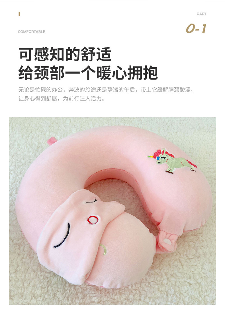 商品名称:(总)卡奥家纺 2025新款带眼罩卡通U型枕旅行颈椎枕